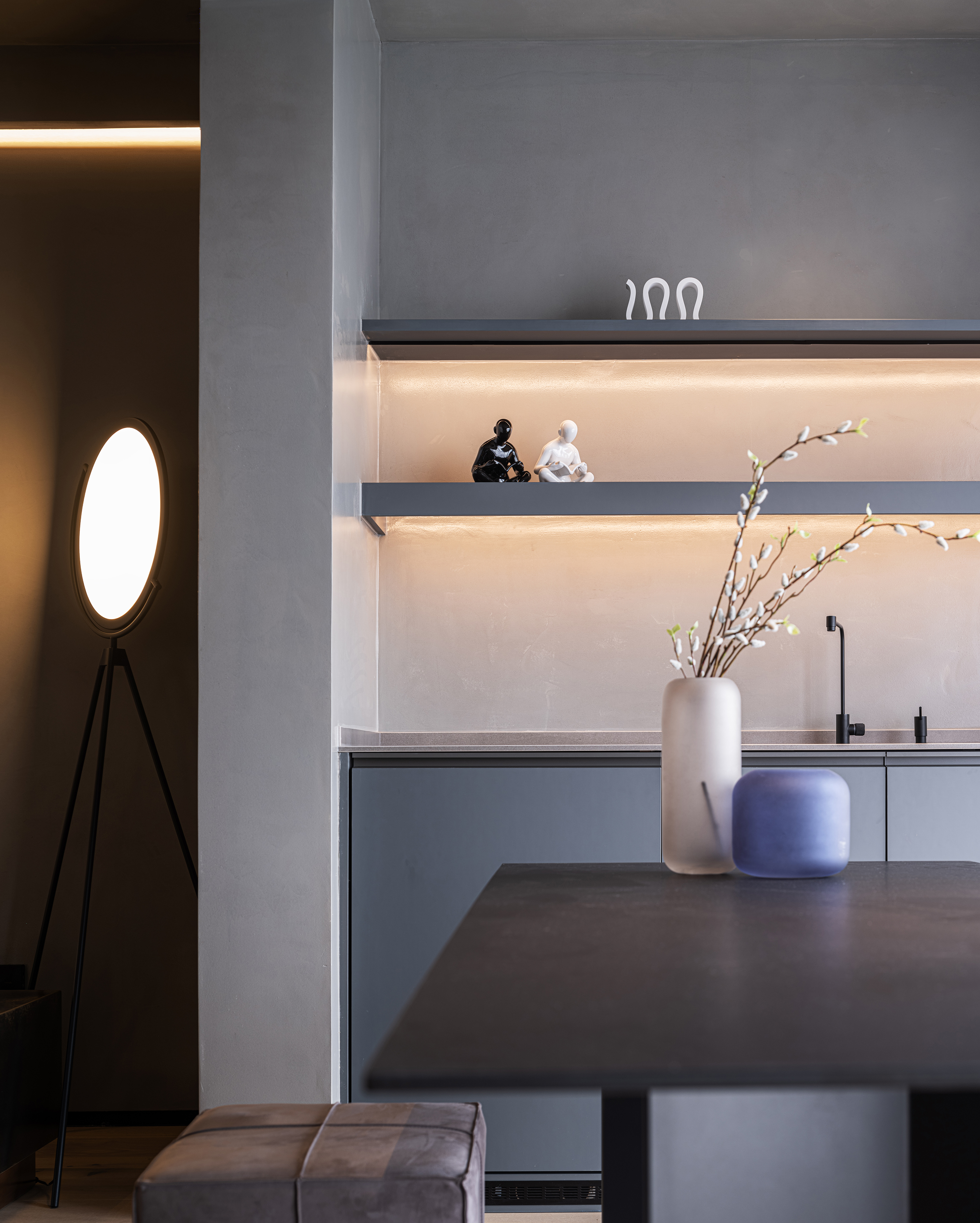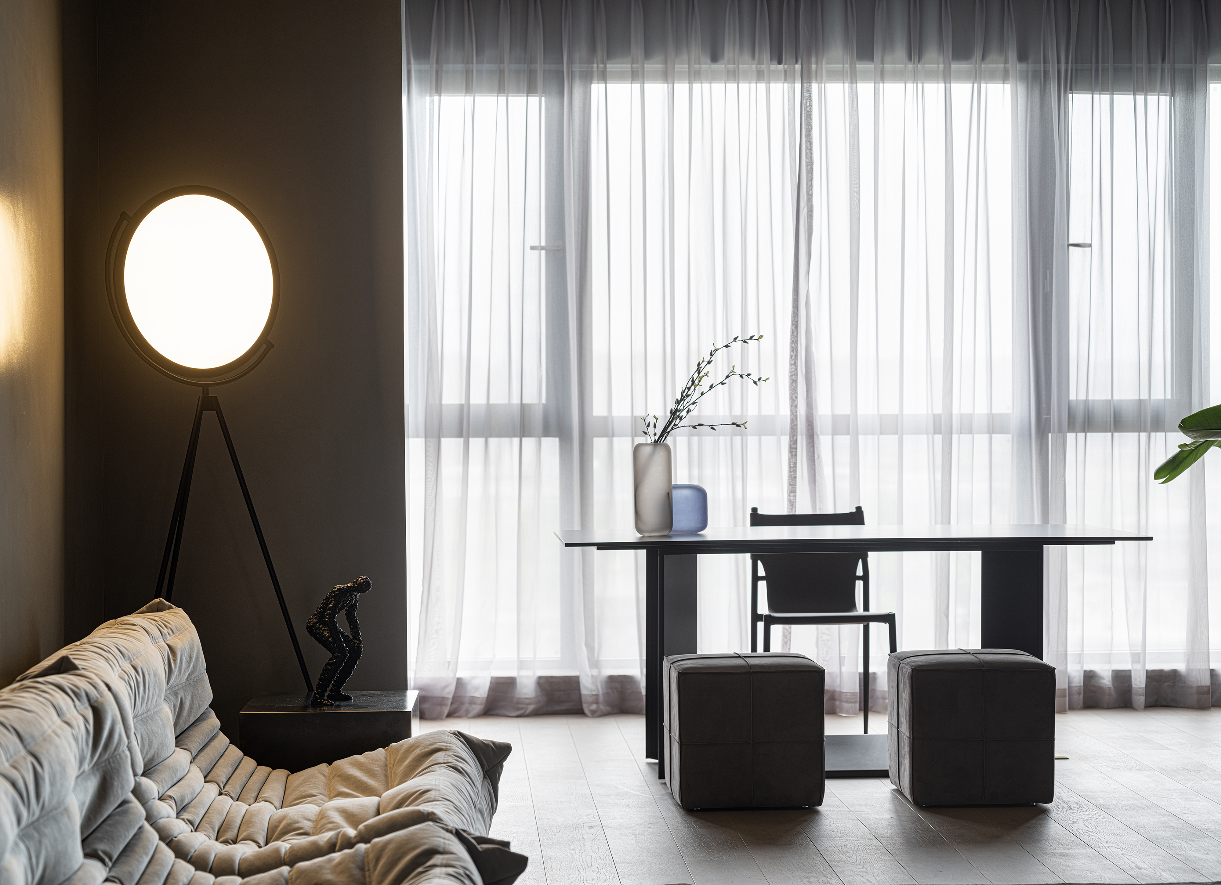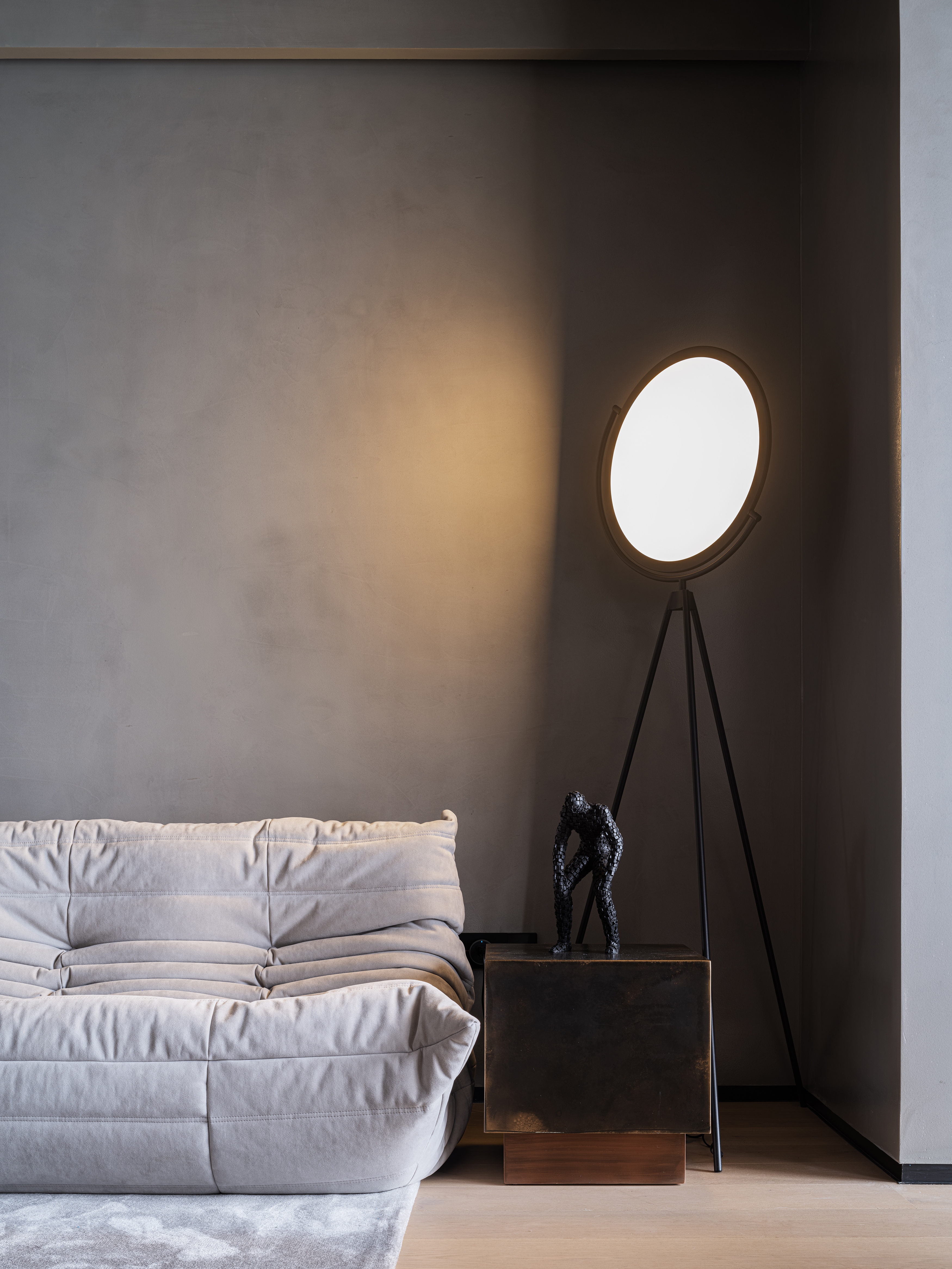 空间意境:水泥色显示的是一种最本质的美感,体现的是“素面朝天”的品位,它具有朴实无华、自然沉稳的外观韵味,与生俱来的厚重与清雅。斑驳水泥墙呈现出侘寂般原始生活美学,搭配简约家居犹如回到生命最本真的状态,简单而有力量朴素而有生机。