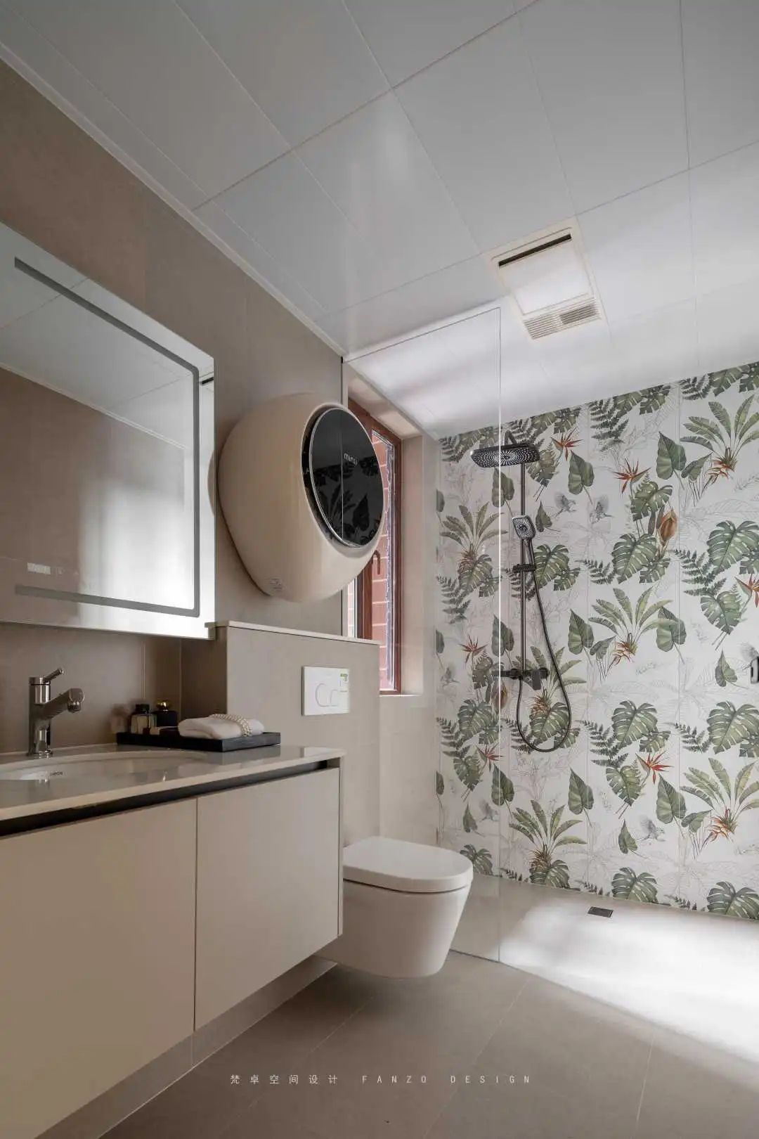 10、卫生间砸掉台阶后找平地面,拆除非承重墙成为“一”字型空间。墙排马桶和洗手台最大程度避免卫生死角,让业主结束忙碌的工作后,不会为卫生而感到头痛。一面花砖作点缀,薄荷般清新感迎面而来。 -