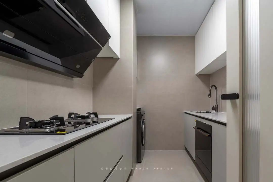 9、厨房后推墙体,扩充了1平方的大小放置洗衣机。按照洗切炒的操作动线规划空间。