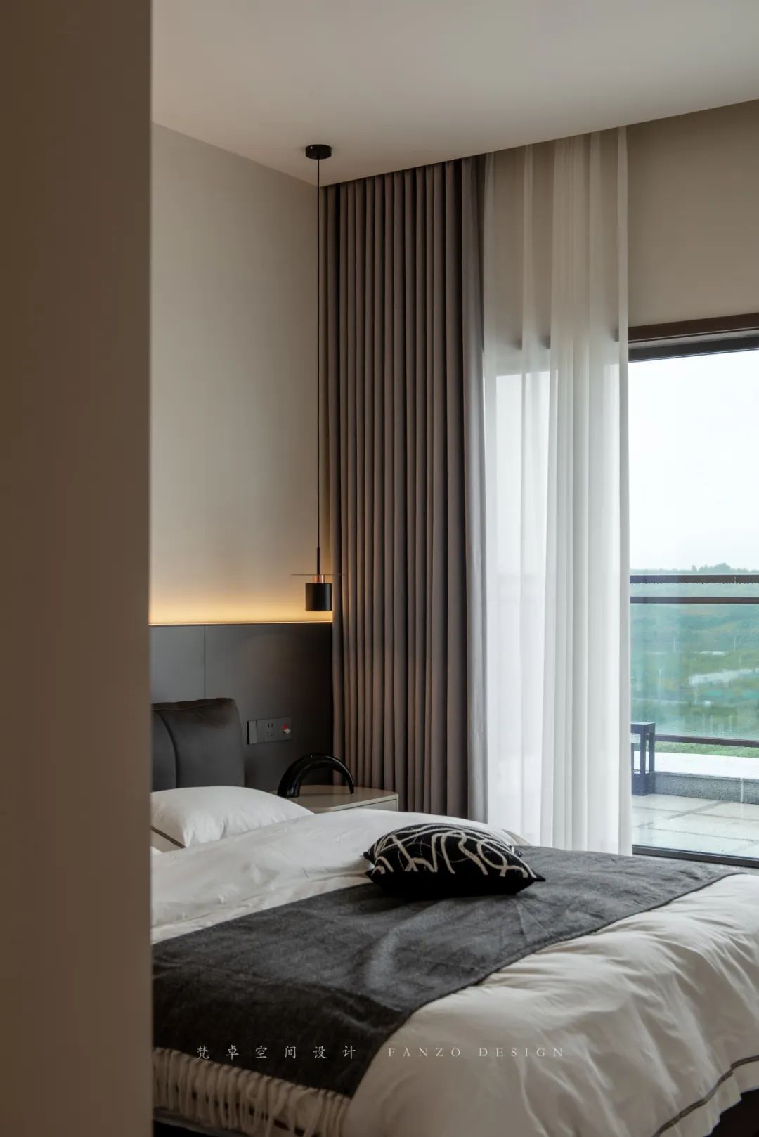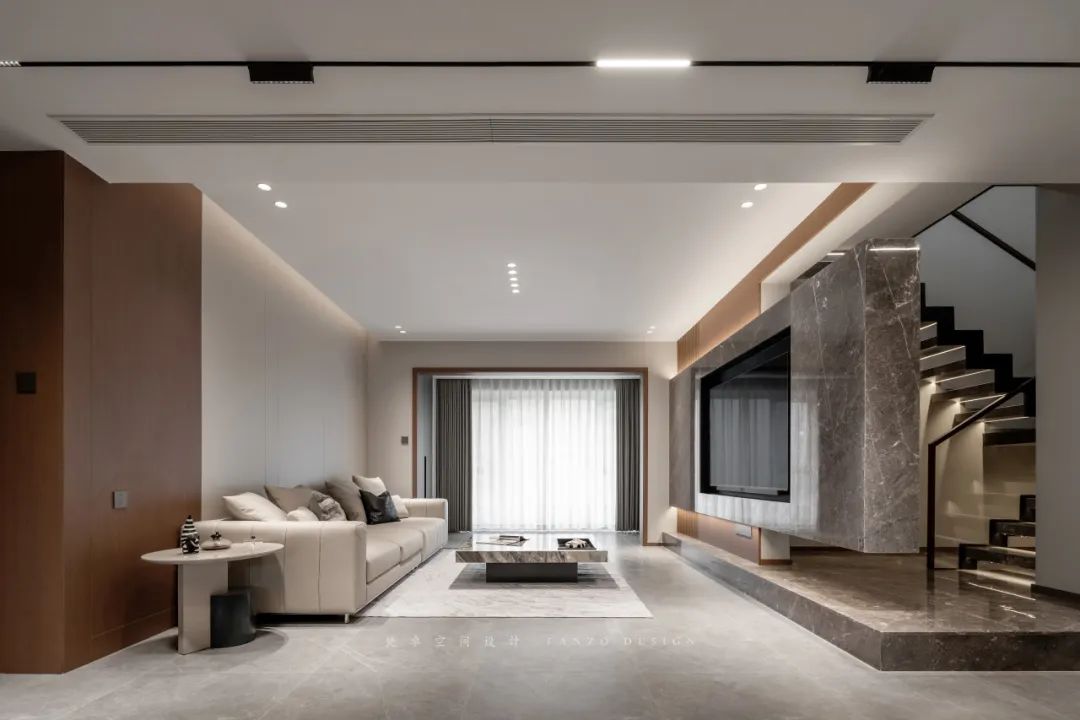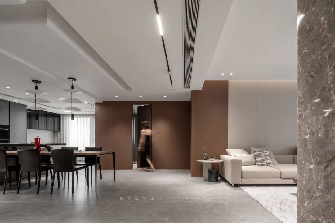 设计师前期通过与业主的沟通和设计师对业主生活习惯、风格偏好的调研,本案定位为暖咖色意式极简风,沉稳大气的同时也比较符合业主身份。