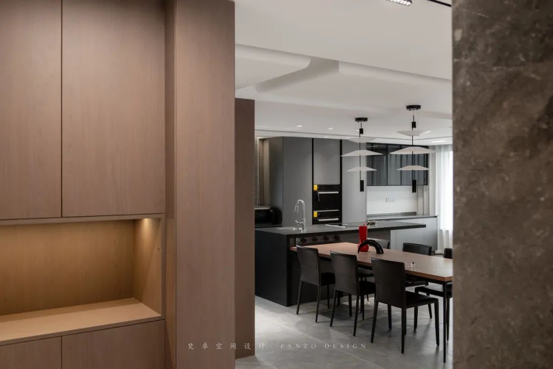 6、以岛台餐桌为中心,散发出不同的生活场景,空间成员跟随动线,体验自由与惬意的居住空间。