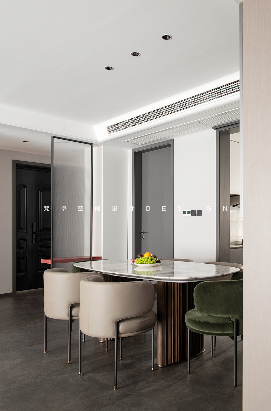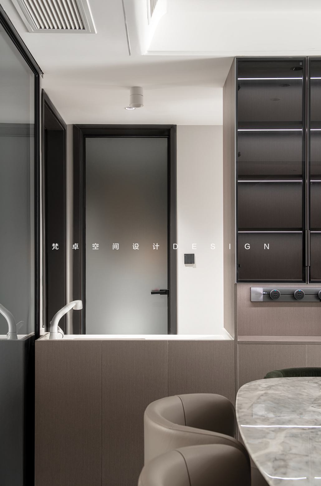 空间布局:1、步入空间的前序,时间也开始随之转动。时间无形,却能依附在一起的物质形态之上,动与静、虚与实、有与无、多与少互相交融呼应,深化空间背后的语境。顶面做无主灯设计,干净又利落。