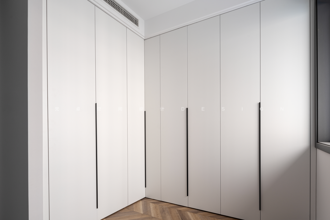 6、居住空间有着抽象的、精神性的表征意义,除了建立自然的亲密感之外,也是我们内在心灵的安放之所。考虑到后期生活的便利性,设计师将原本的儿童房改为衣帽间与次卧相隔,方便她平日里去更换衣物。 -