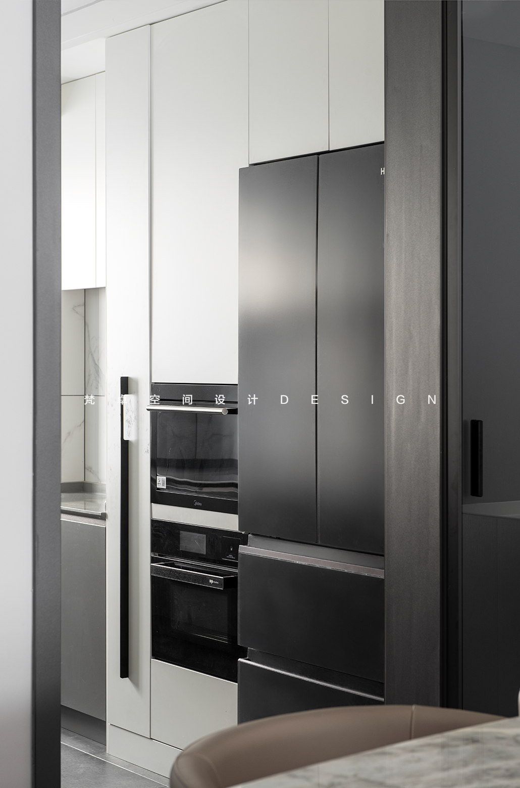 疏密有致的布局手法,使空间感得到延伸,在交错的意趣中,巧妙融合多重功能,加强了视觉的丰富性、社交与生活的仪式感与互动性。象牙白的肤感定制橱柜,让这里多了些清爽氛围少了些“油腻感”~