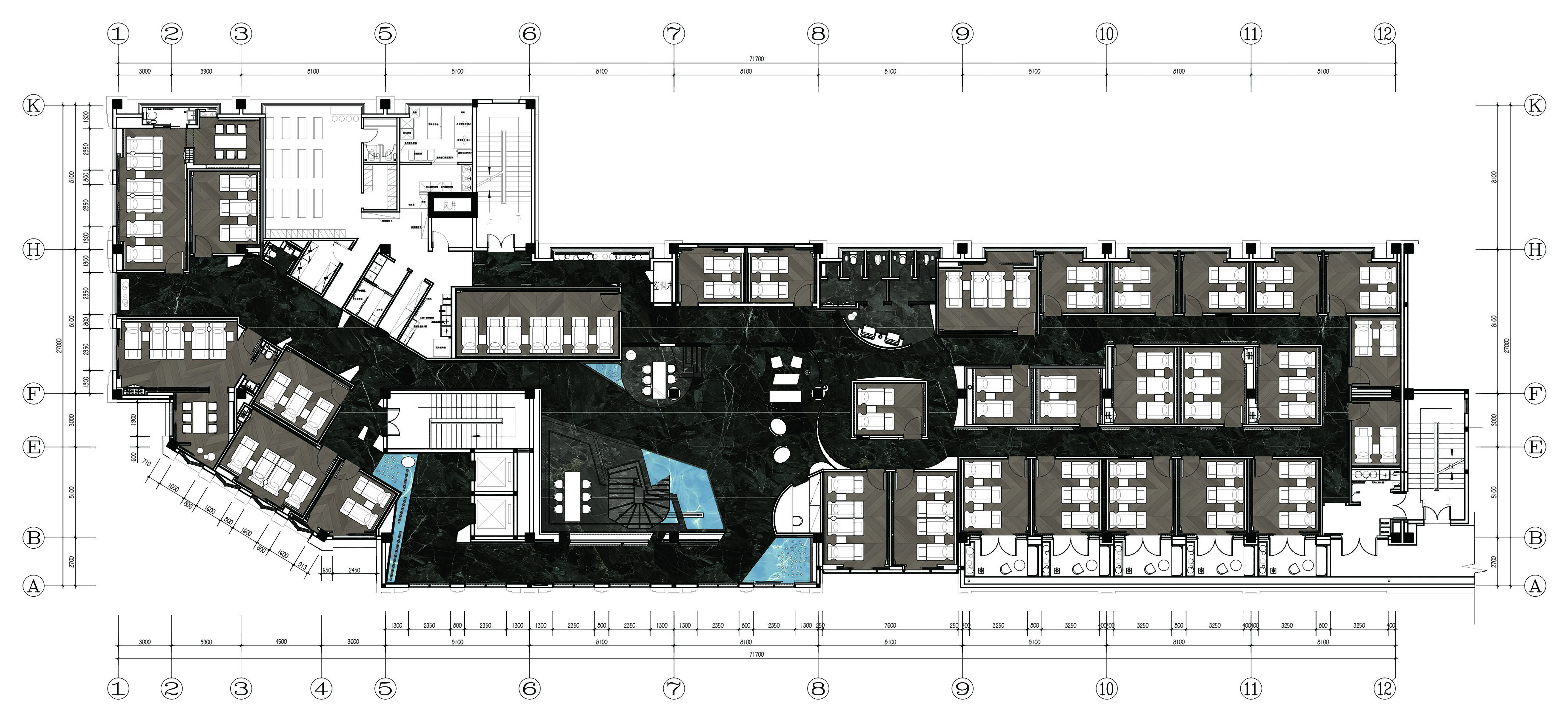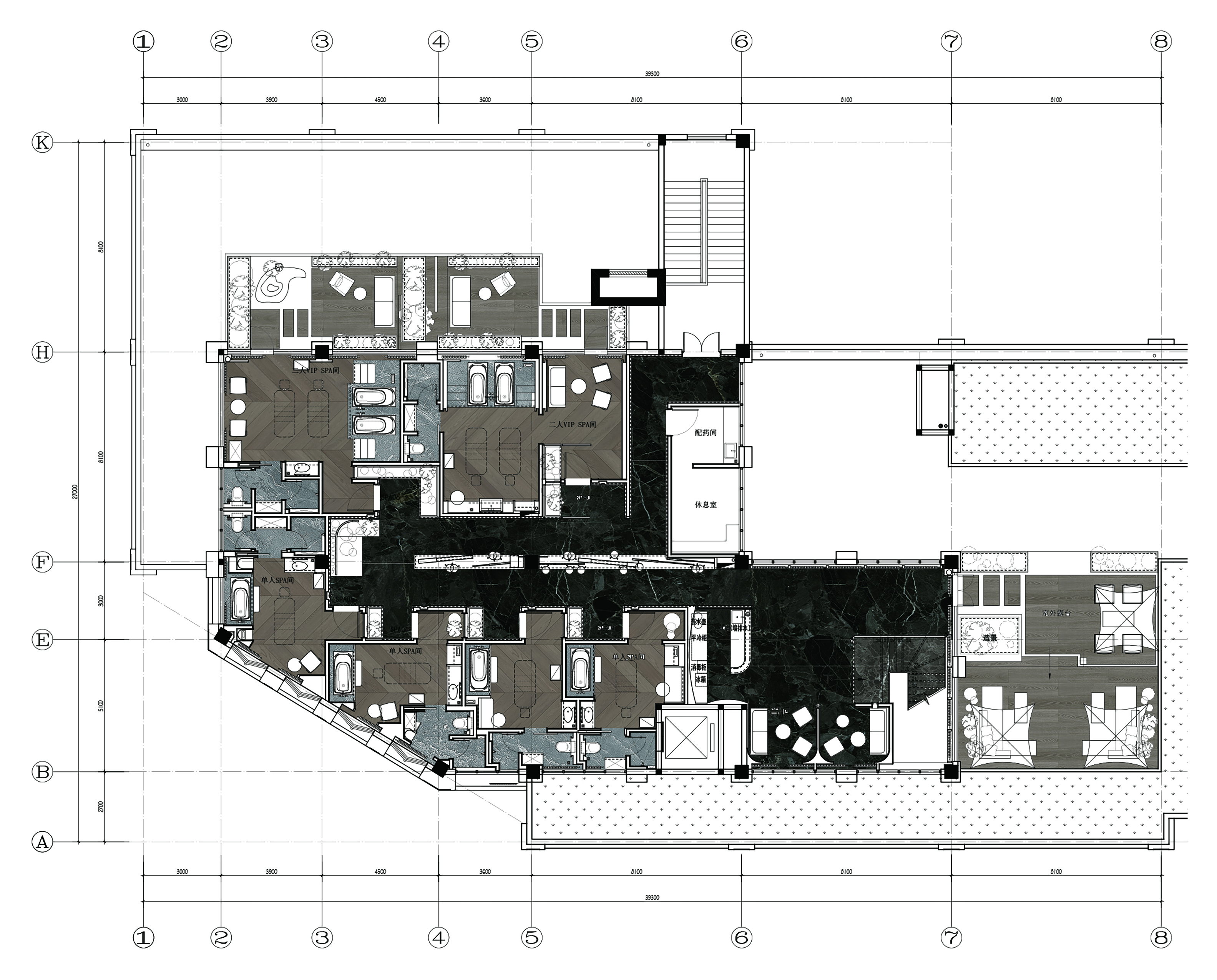 项目定位:金庸老先生写过:"侠以义为荣,如竹之质朴,如山之坚毅。"“侠”超脱于乱世的潇洒态度,是强者对无畏精神的憧憬,契合了水疗空间中,人在放松后,对自由情怀的向往。