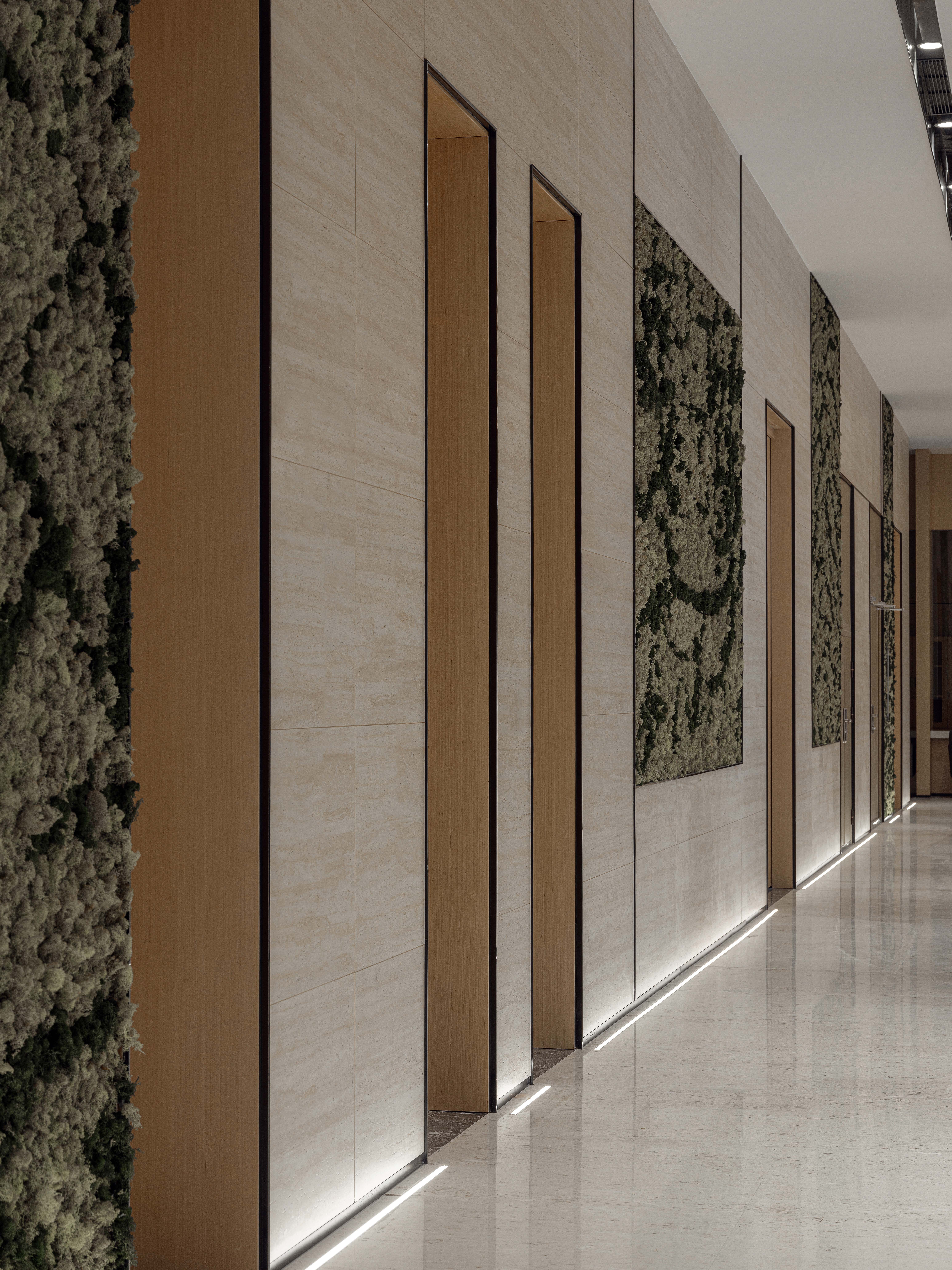 用视线的虚实将空间与自然的风景结合,空间又因浅木纹肌理的勾勒而围合成一个更为纯净的场所。