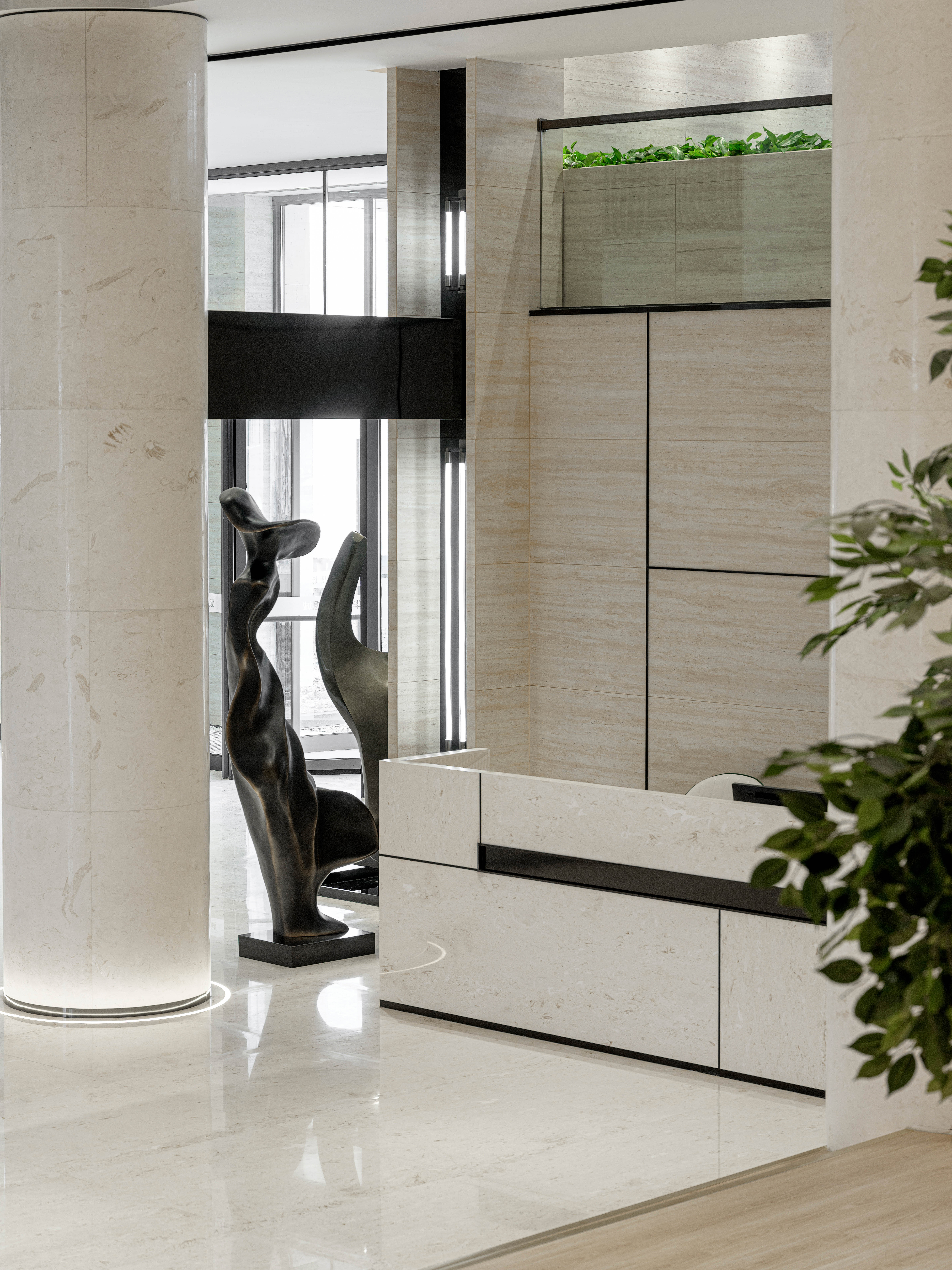 空间意境:“我们希望营造的,是一个以当代设计语素为基底,又褪去繁复束缚的理想境域,在售楼功能之外,也影响着未来入住者的家居导向以及生活方式。”通透与纯净交织,植被葱葱芃芃,而气氛则重在对生活的情调的感染熏陶,在这空间中灵活发挥,迂回曲折,曲艺盎然。