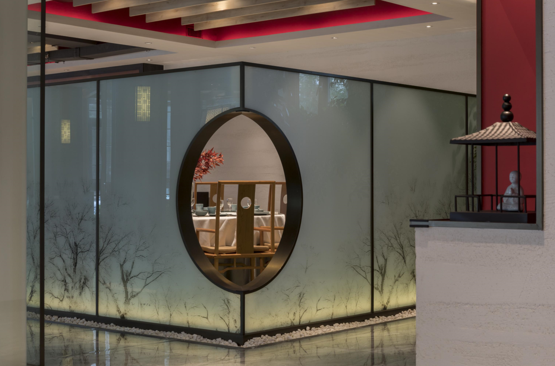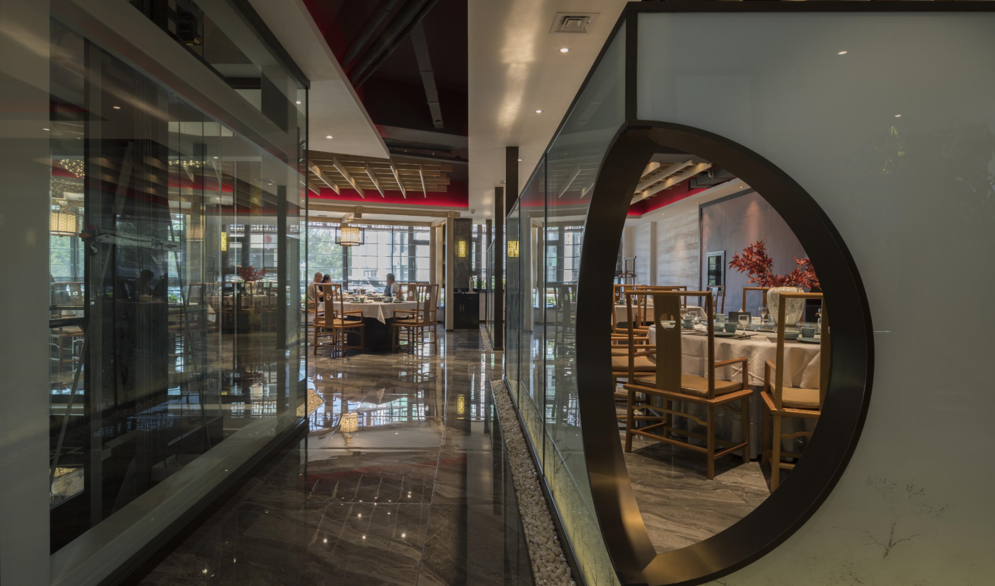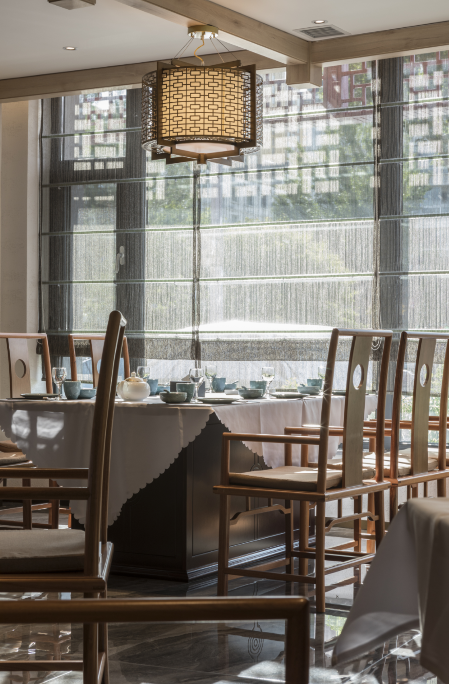空间意境:可行可游可居,曲径通幽趣,便可围合空间的间与隔 。作为一种间隔的介质,虽间隔但不阻隔光、气、 风、景相互流动渗透。灵动的关联,化物象为思绪,也引领着整个空间的礼序与意趣,令这敞阔的空间跌宕出古雅而温煦的情韵。