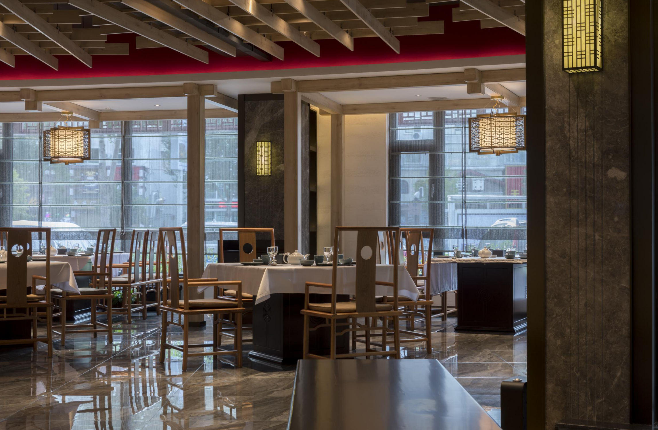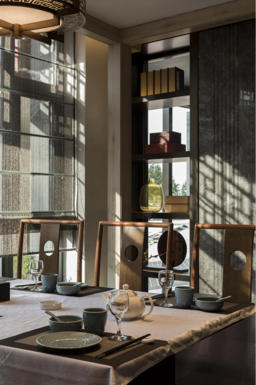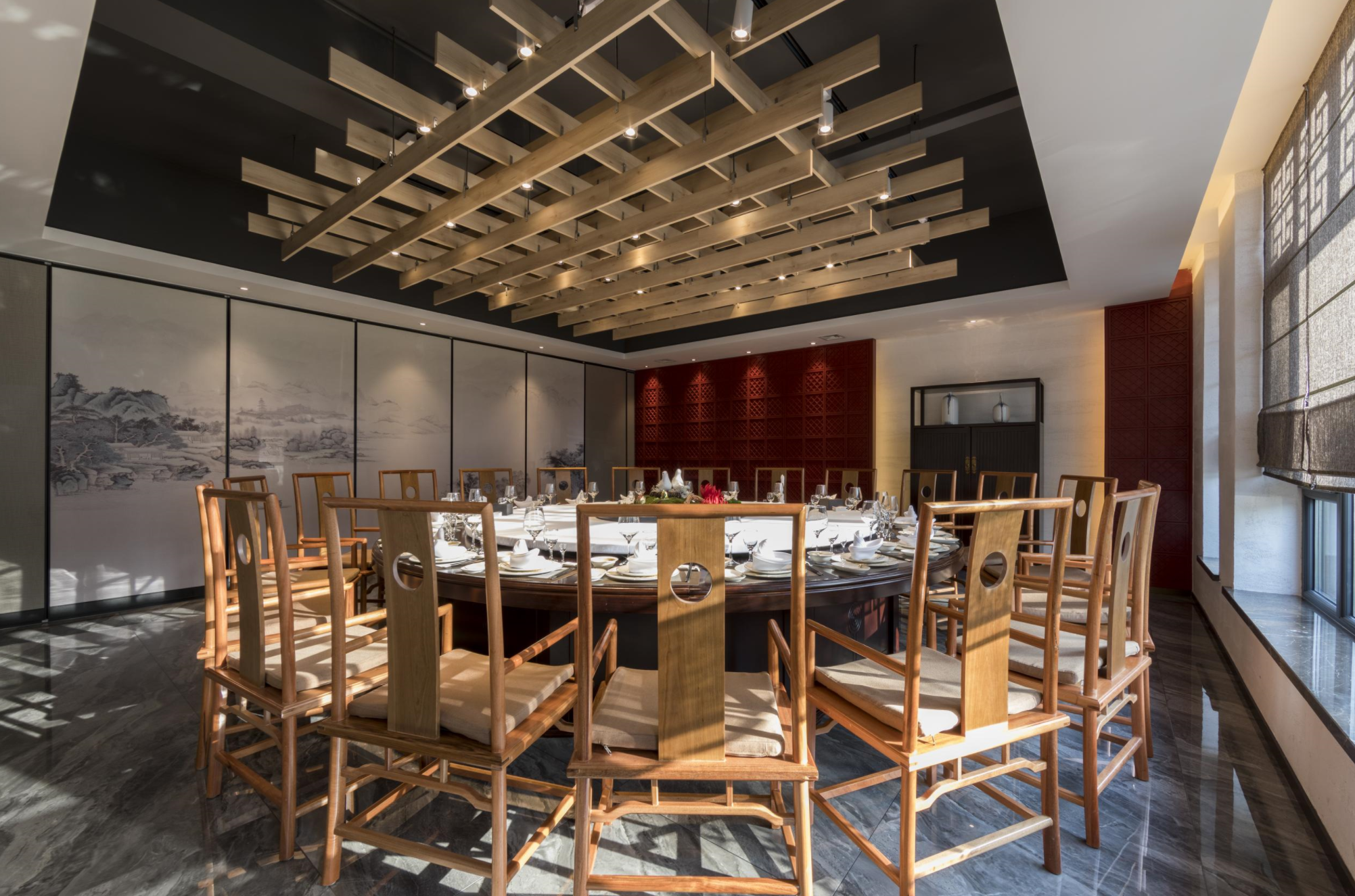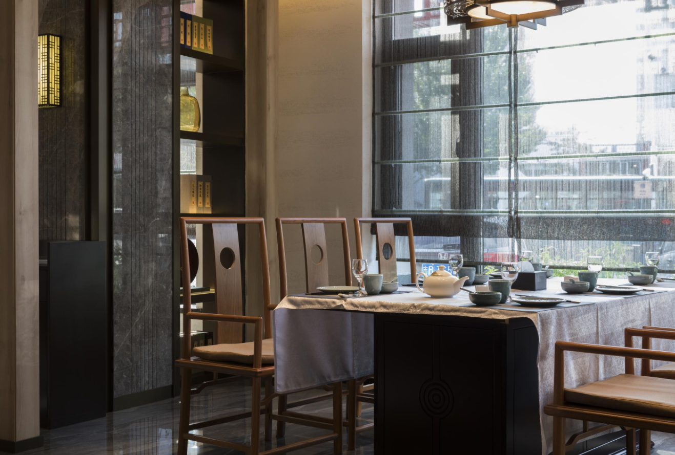 空间意境:可行可游可居,曲径通幽趣,便可围合空间的间与隔 。作为一种间隔的介质,虽间隔但不阻隔光、气、 风、景相互流动渗透。灵动的关联,化物象为思绪,也引领着整个空间的礼序与意趣,令这敞阔的空间跌宕出古雅而温煦的情韵。