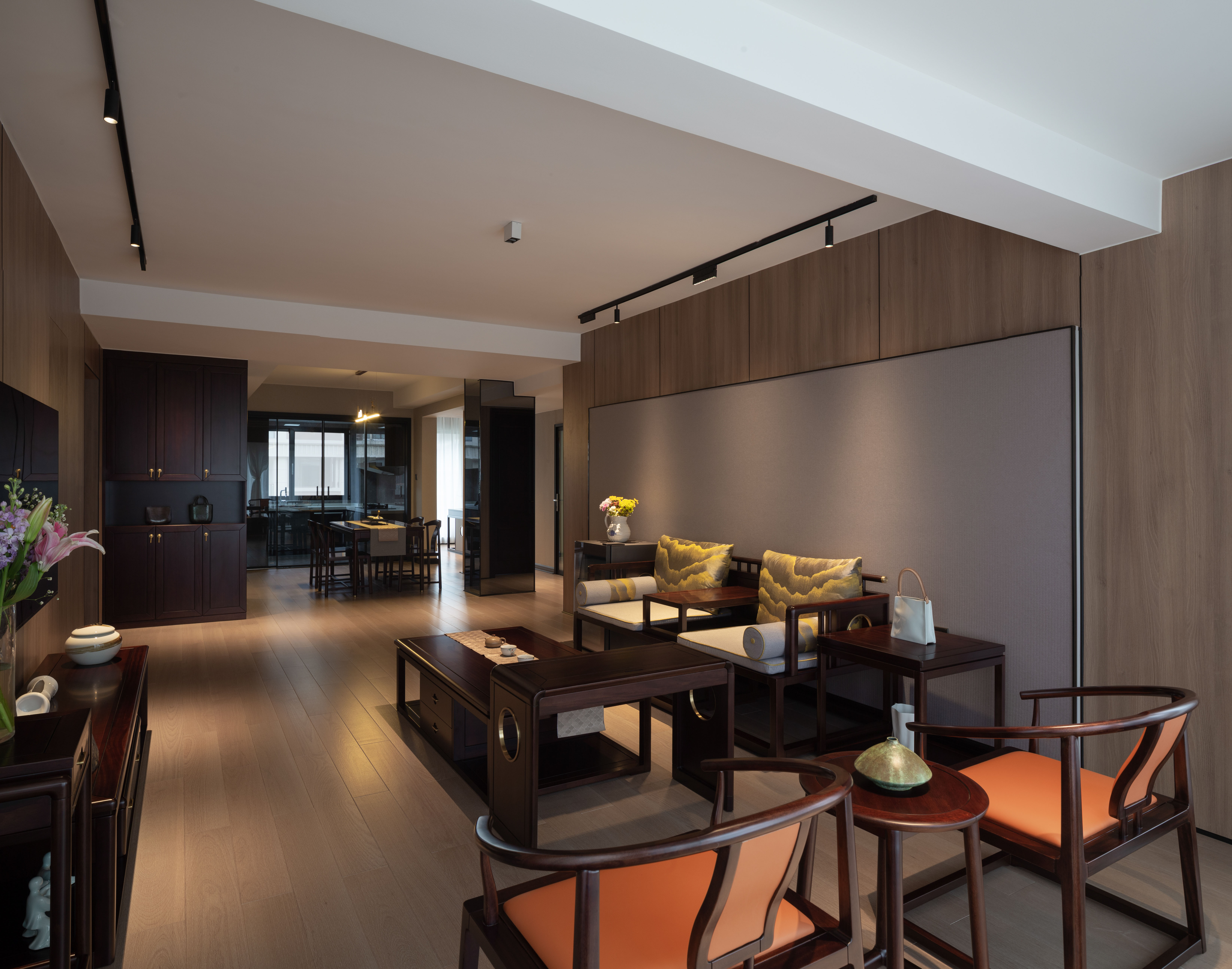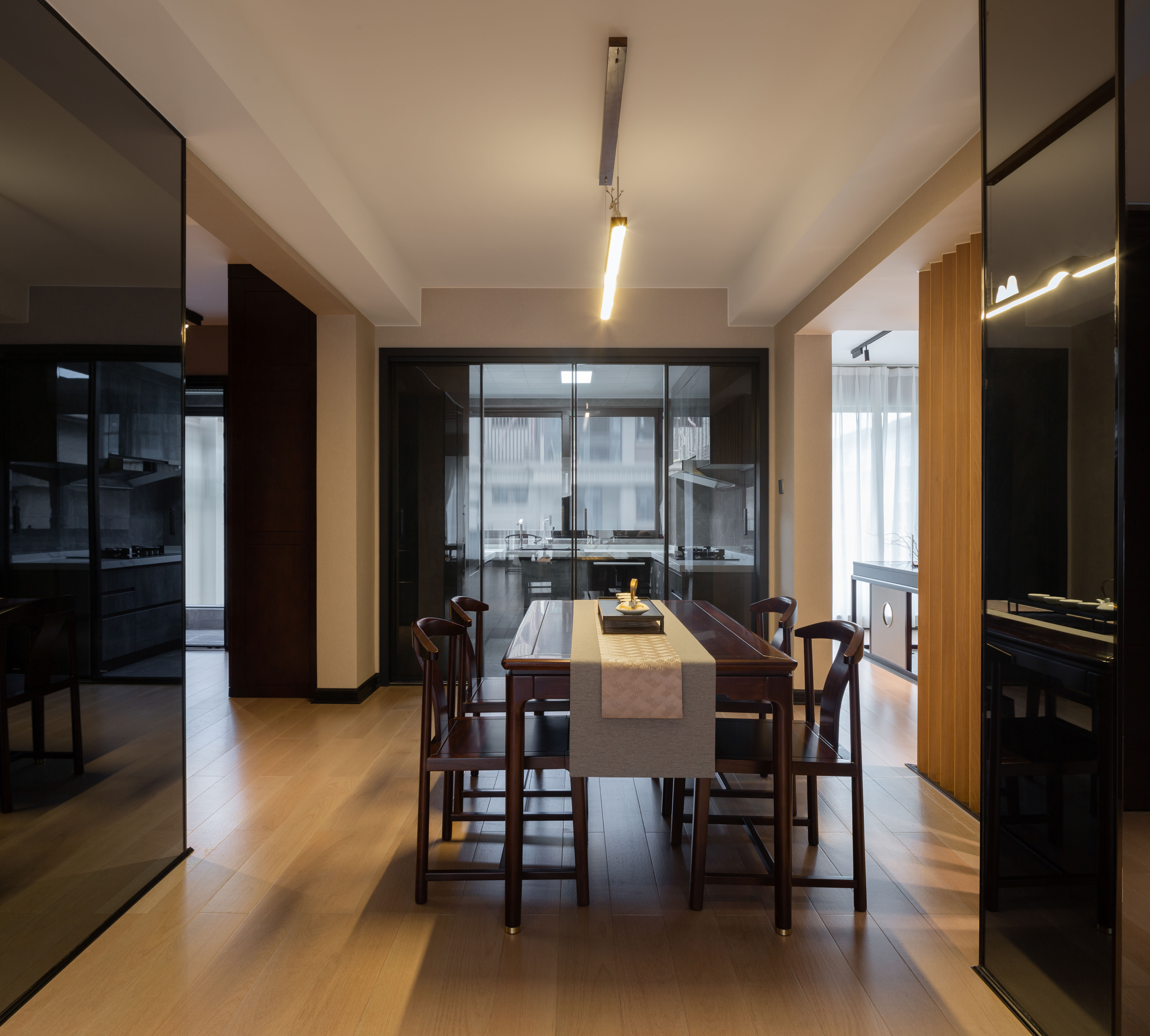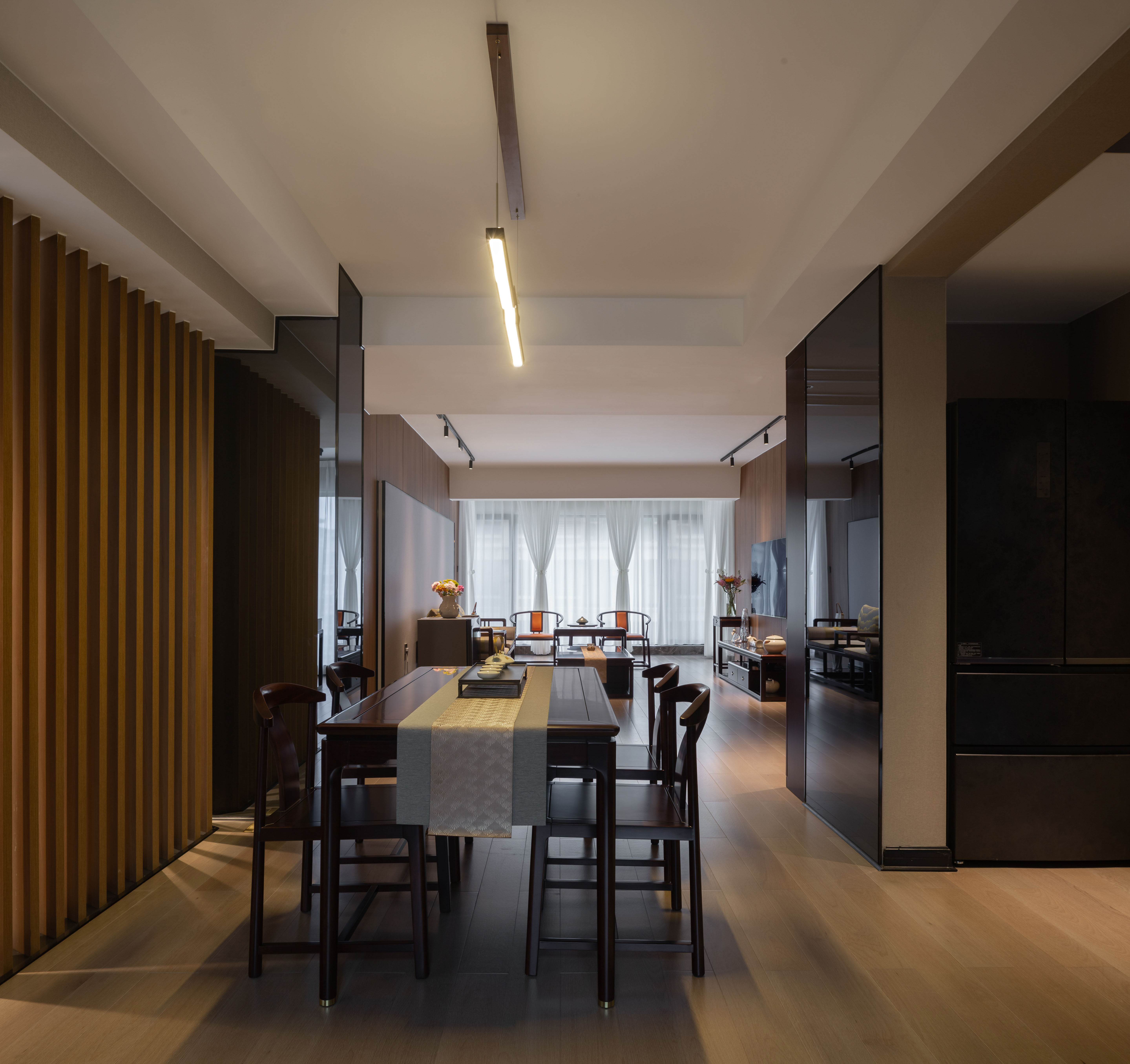 客餐厅极具中式韵调,色彩稳重富有文化气度。