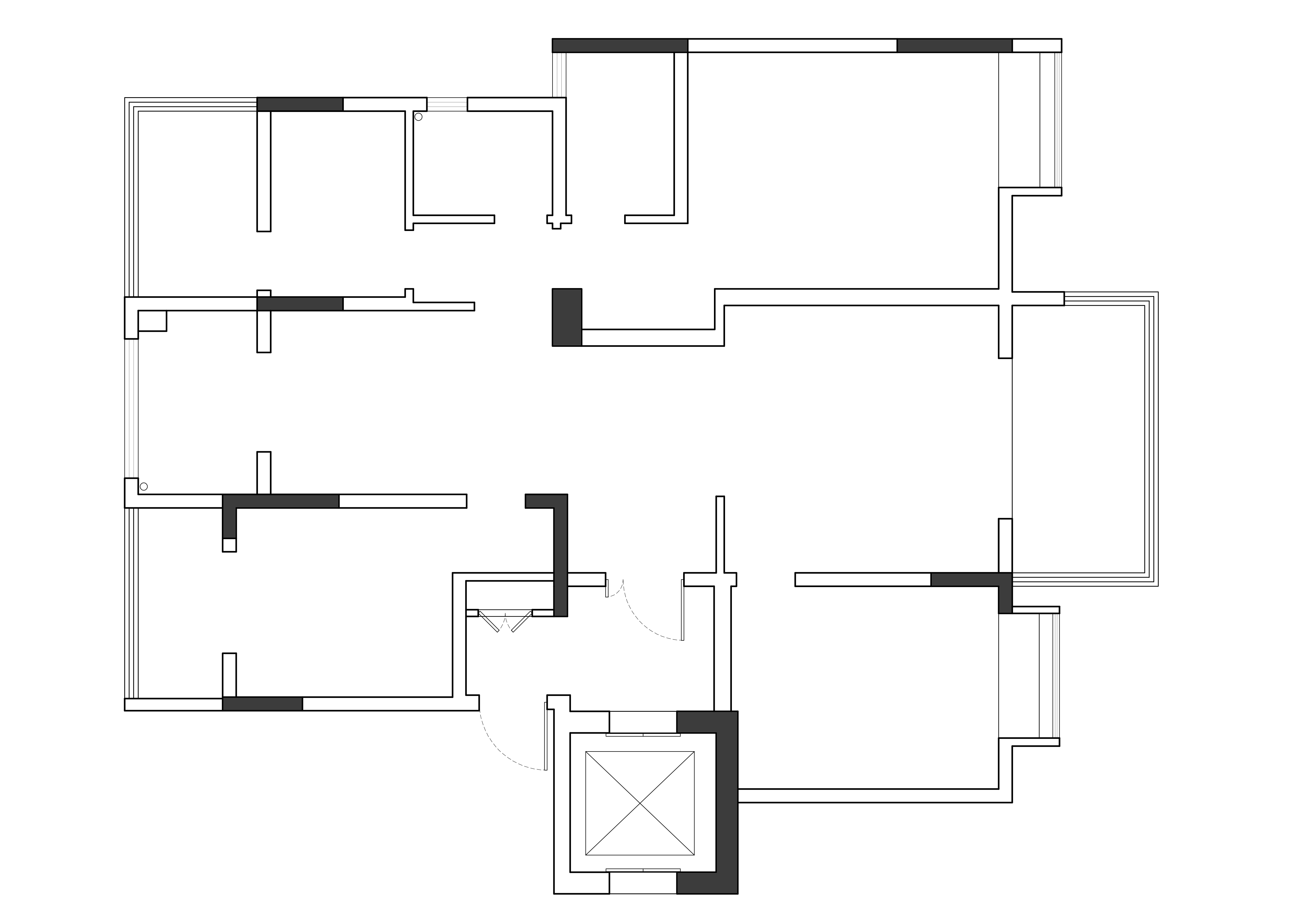 繁复的原始局部墙体,影响空间功能流线,阻碍空间实际体验感;公共区域与私密区域界限模糊,与实际需求不符。