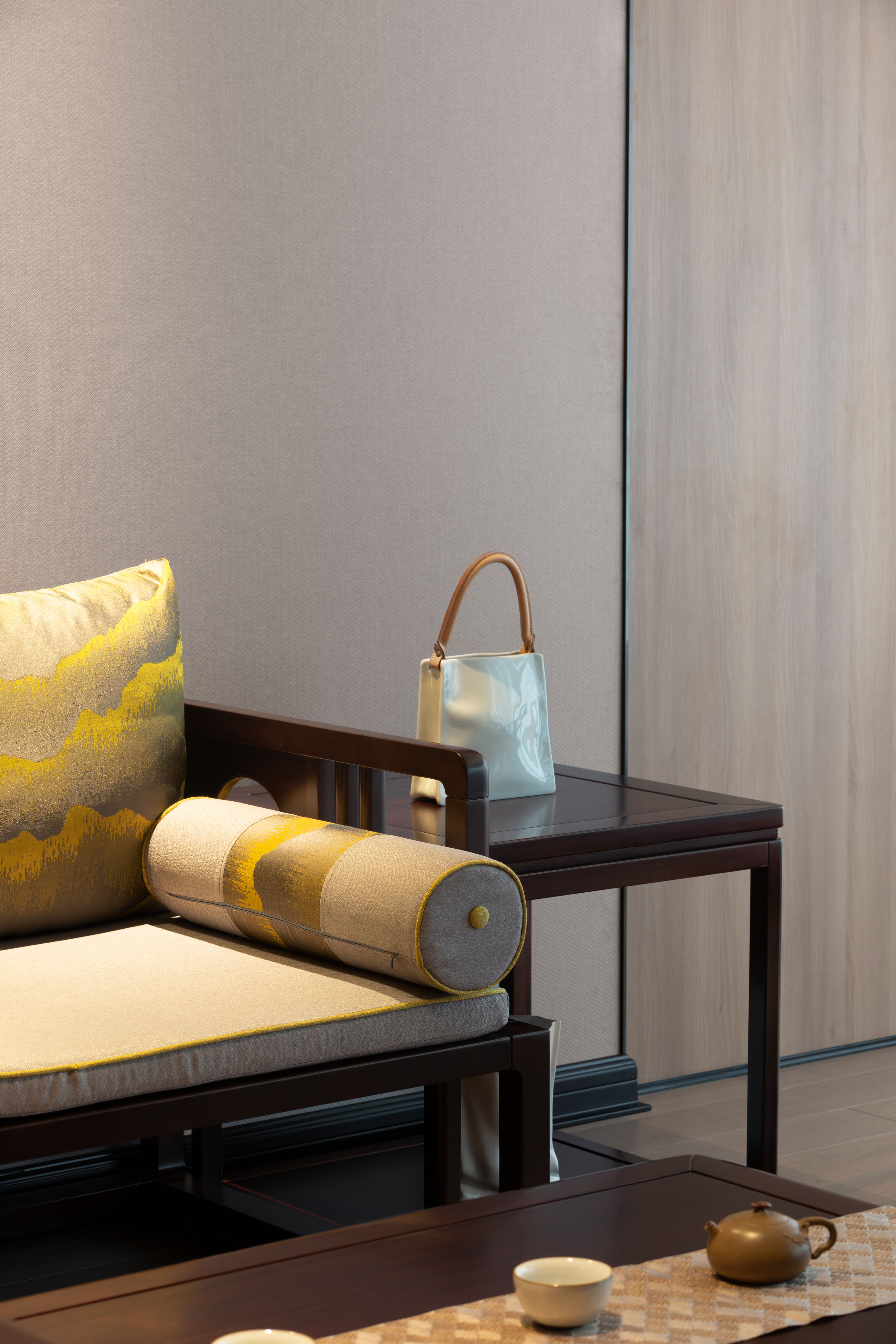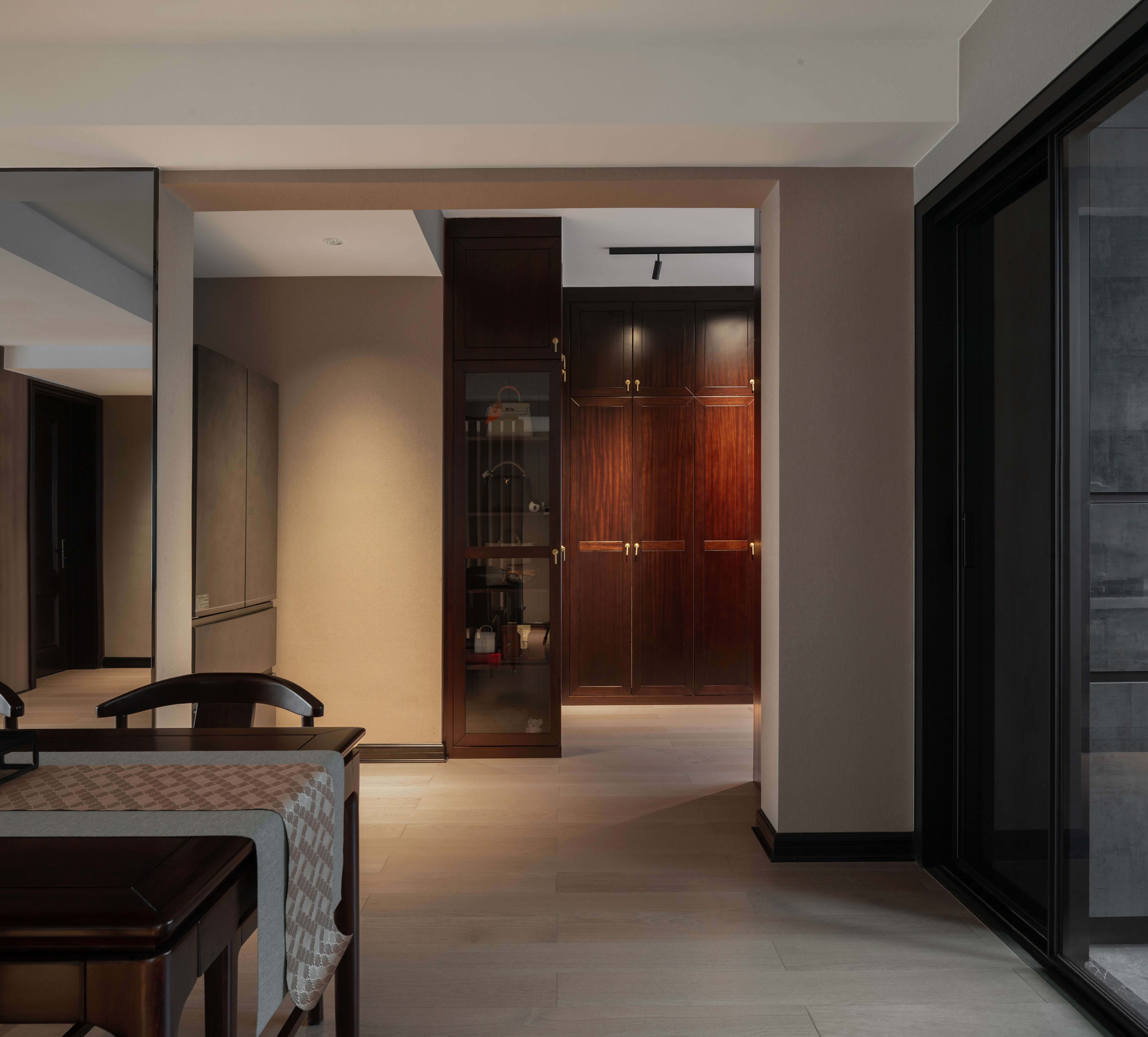 东方之美与设计的碰撞释放出经典古味。温润的木色气息尽兴的穿梭于空间内,在珍珠灰的背景下,显得更为内敛雅气。