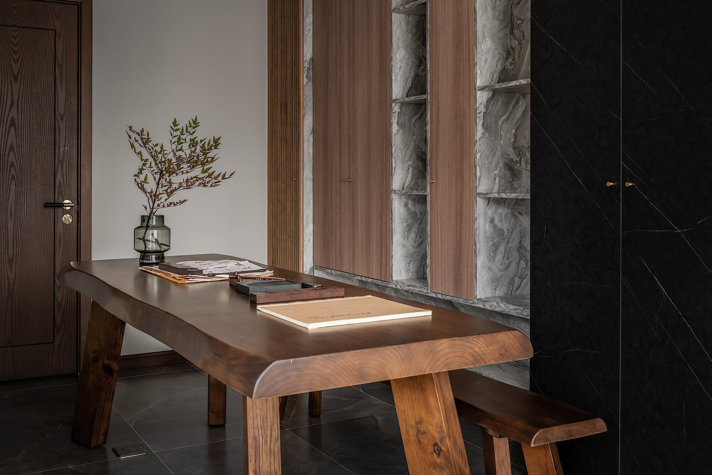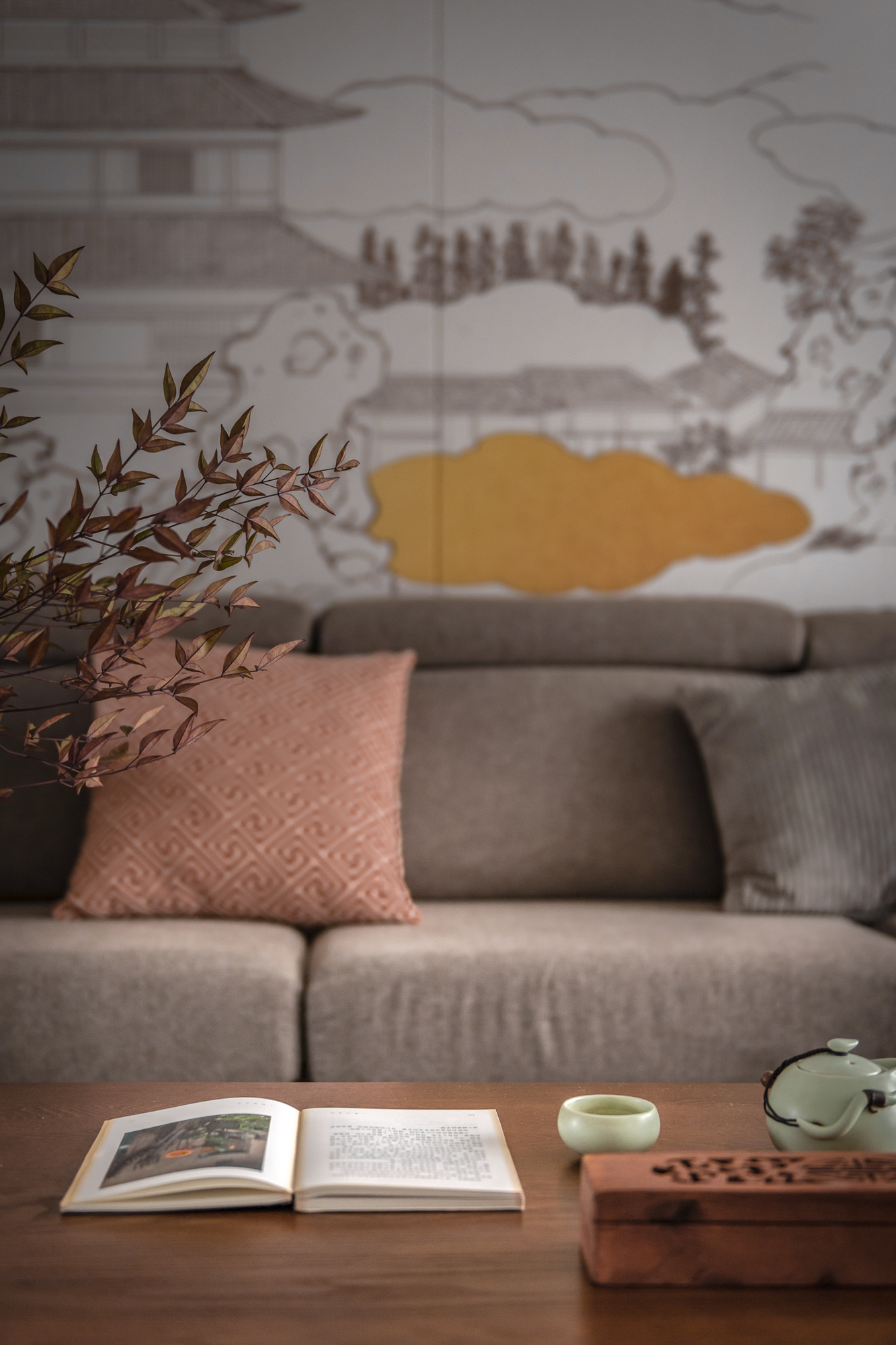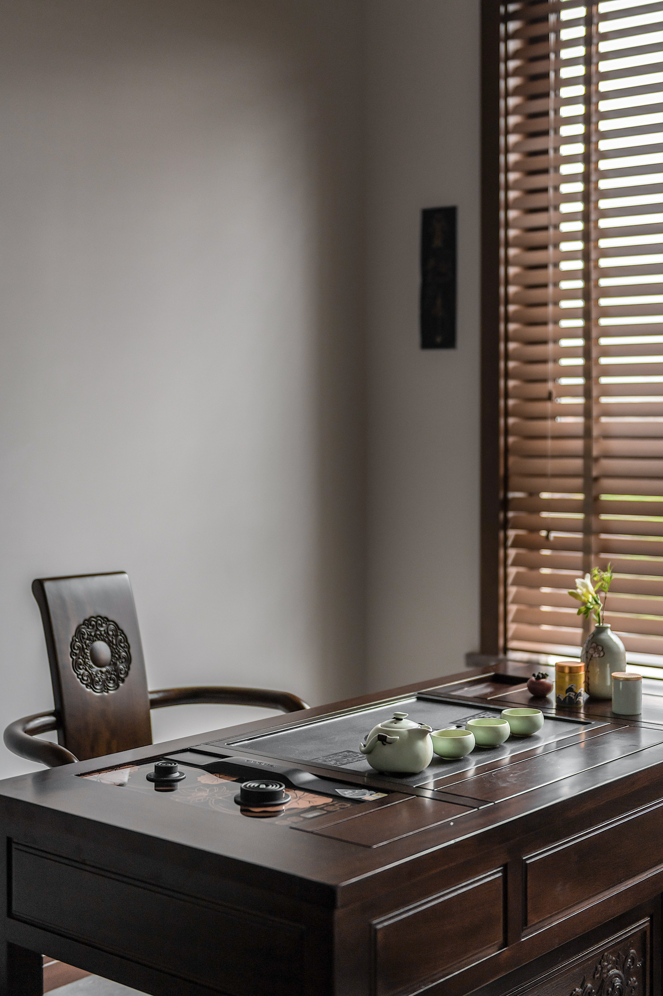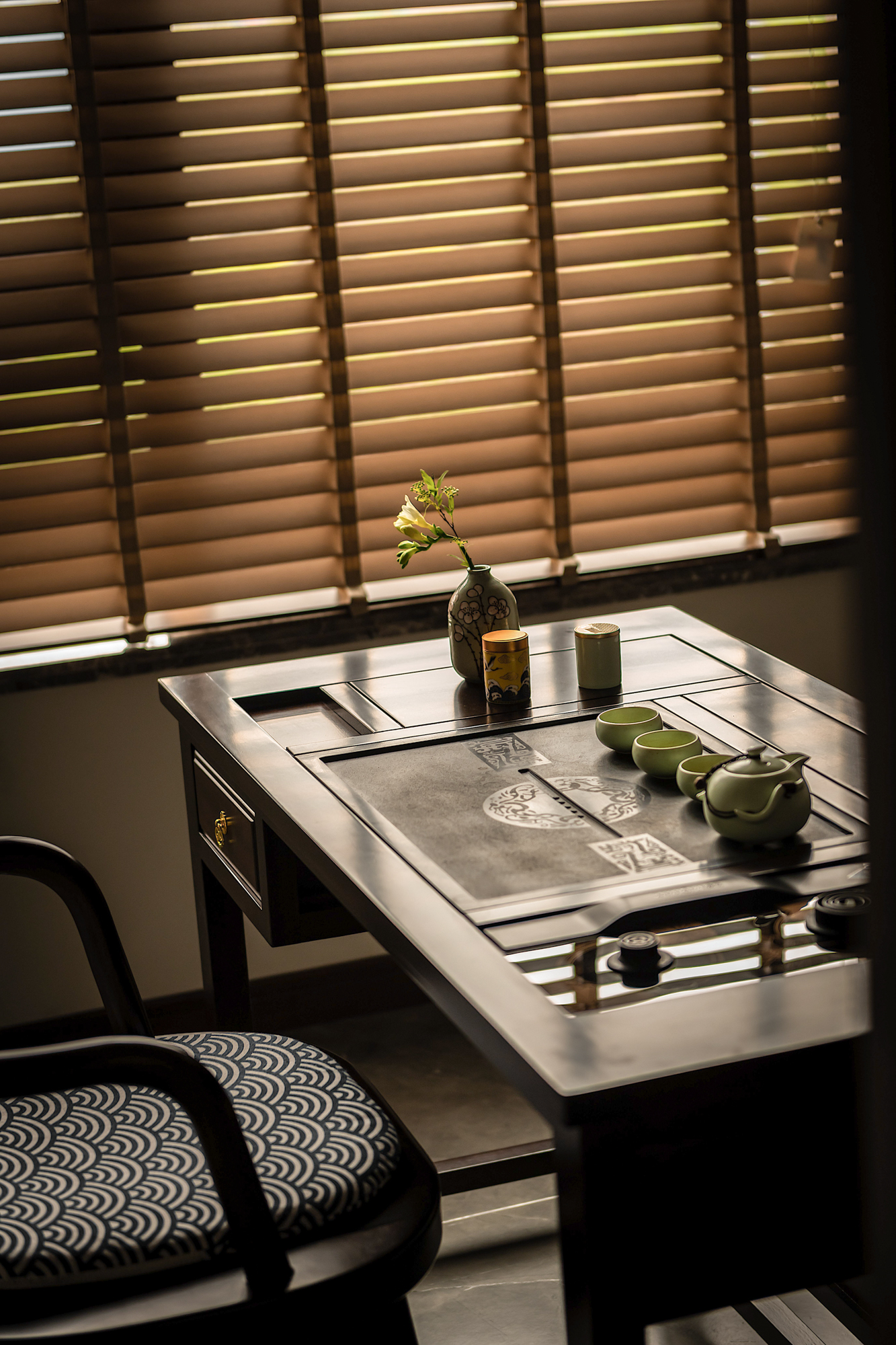 项目定位:本案主要的居住人为一家三口,整体设计风格主要是对于中式美学的呈现,屋主有喝茶的习惯,因此在打造茶室上,也别具一格。