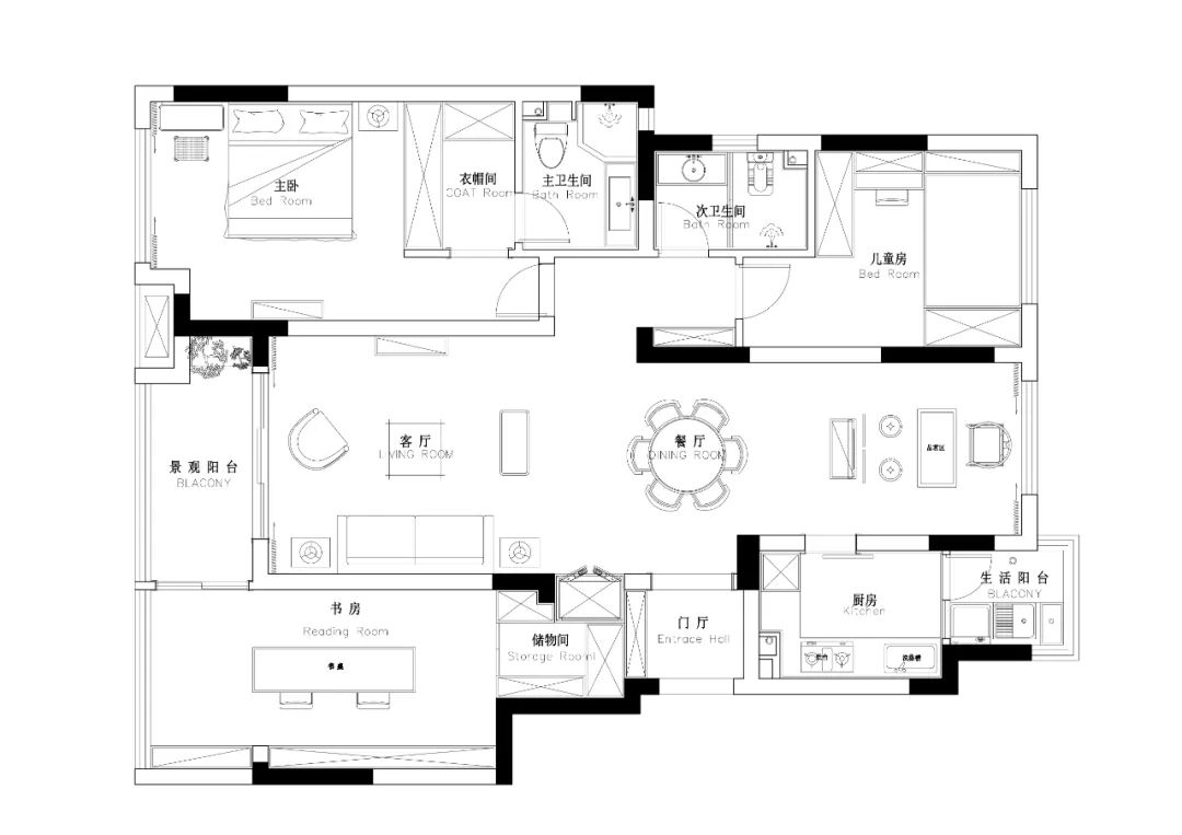 空间布局:户型的布局上,将公区之间连通,使整个空间更开阔大气,利用原始的餐厅阳台区改造开放式的茶室空间,拆除多余的非承重结构,来扩大收纳区,增加储物空间,提高整屋舒适度。