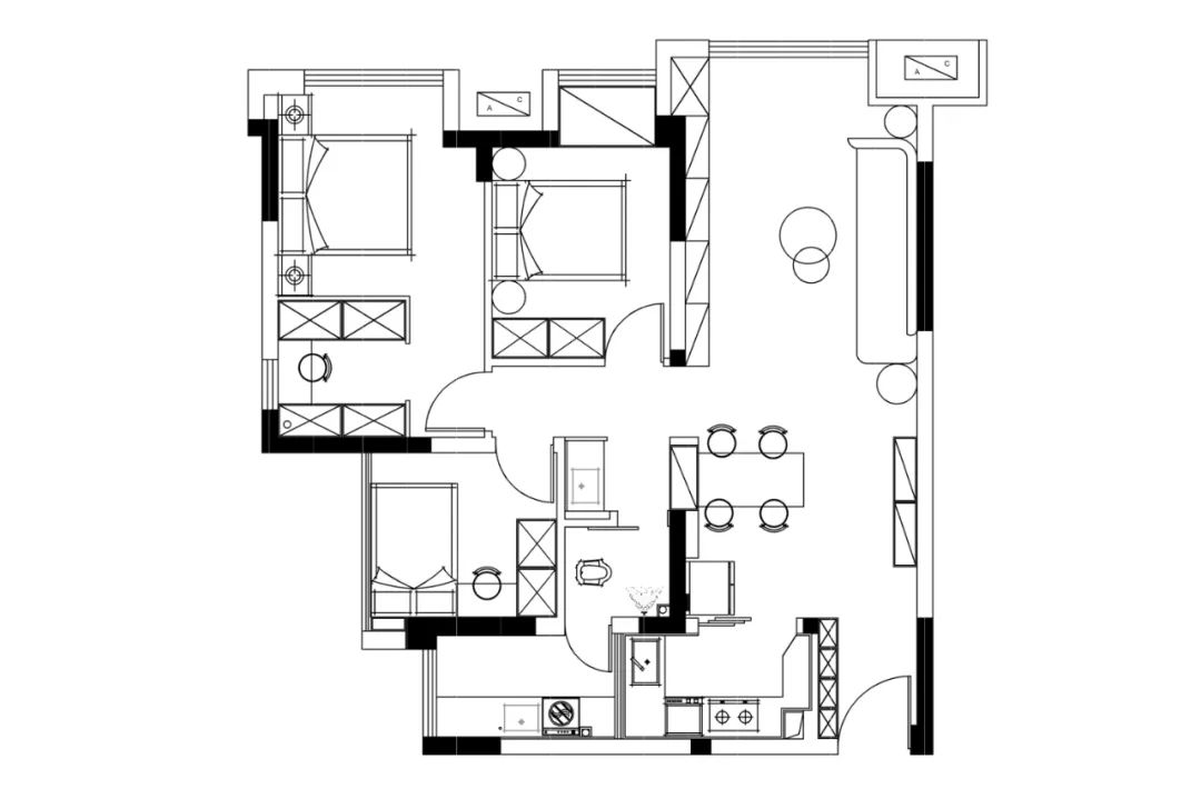 空间布局:户型的改造上,主要是优化了厨房以及生活阳台的布局,增加了厨房以及生活阳台的操作空间,且主卧在原有的基础上,增加了衣帽间。