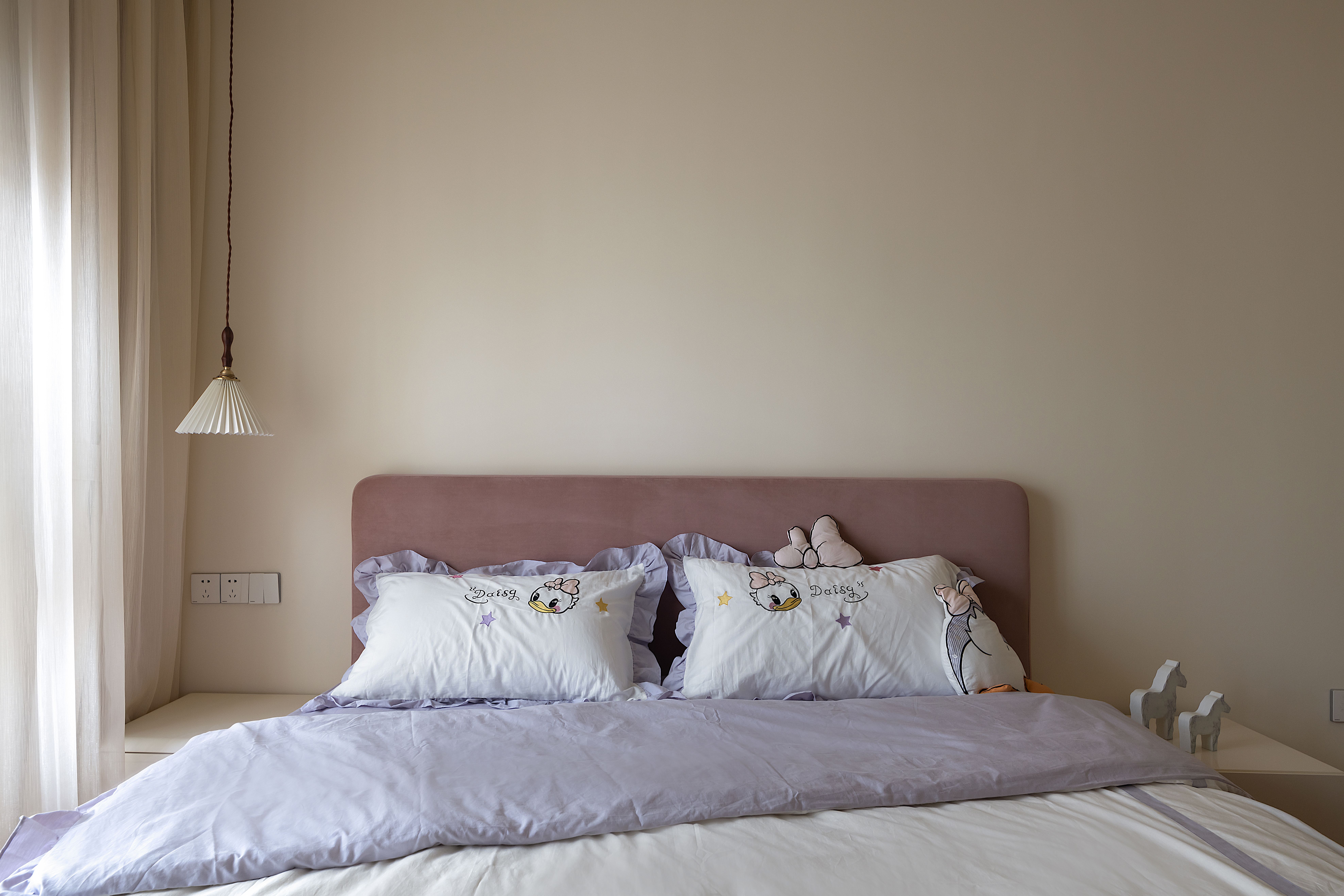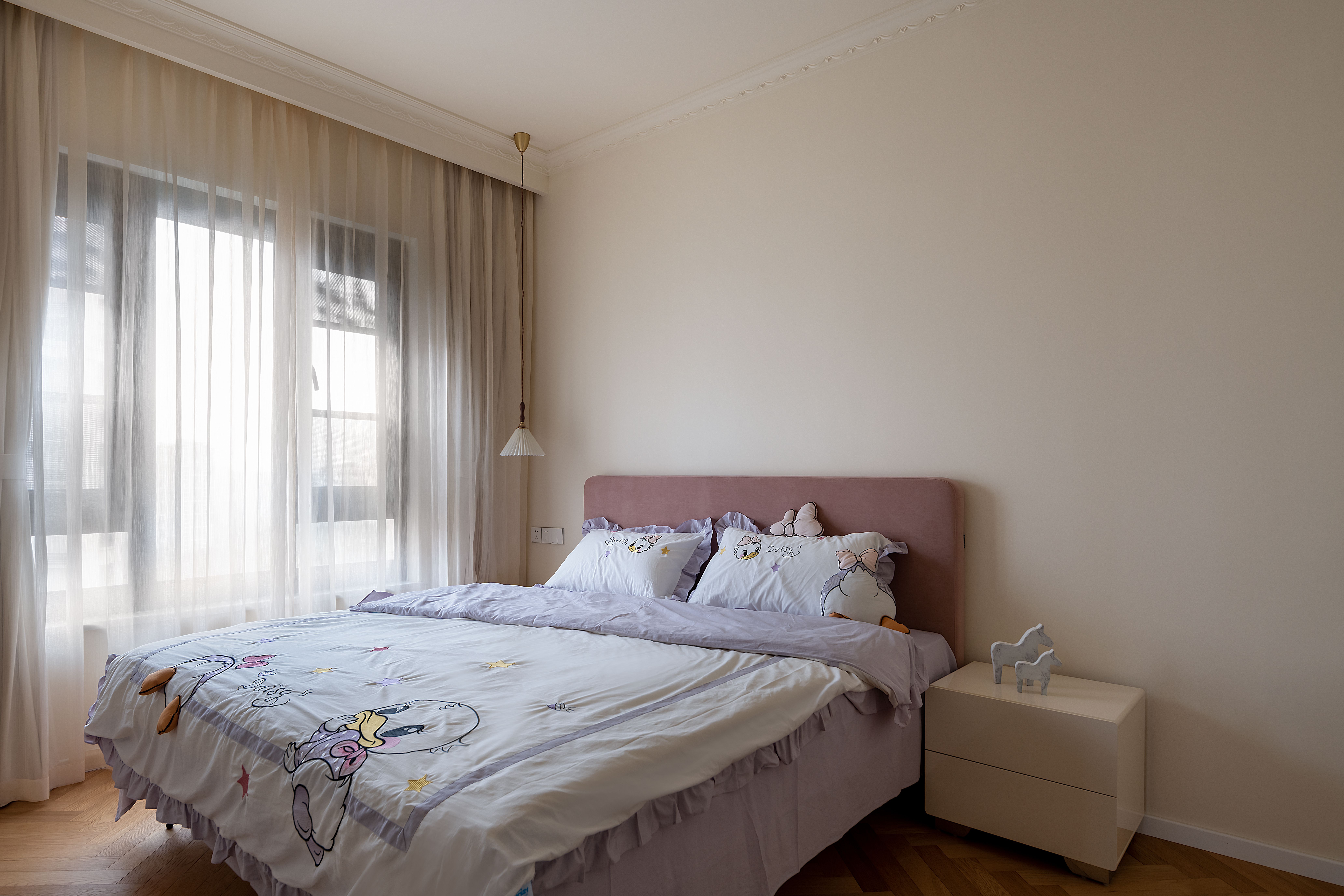 空间意境:本案的风格是韩式奶油风,整体拥有了奶油风的温馨治愈,又结合了韩式风的干净简约,以及用色的简单统一,让整个空间都显得明亮而通透。