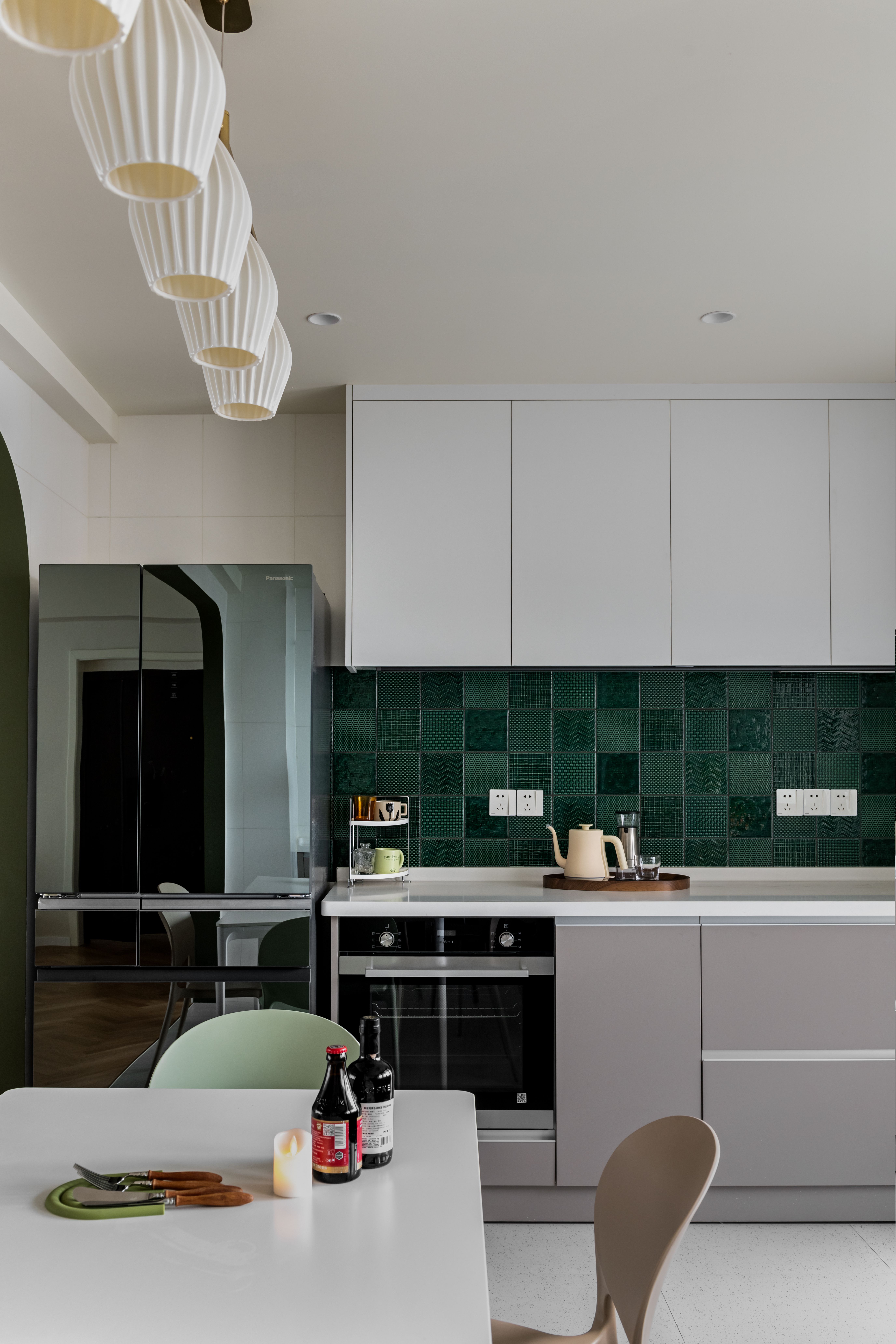 空间布局:户型的改造上,让原本就十分宽敞的客厅,更显流畅通透,开放式的厨房设计,更舒适宽敞,整体的储物空间也有大大的提升。