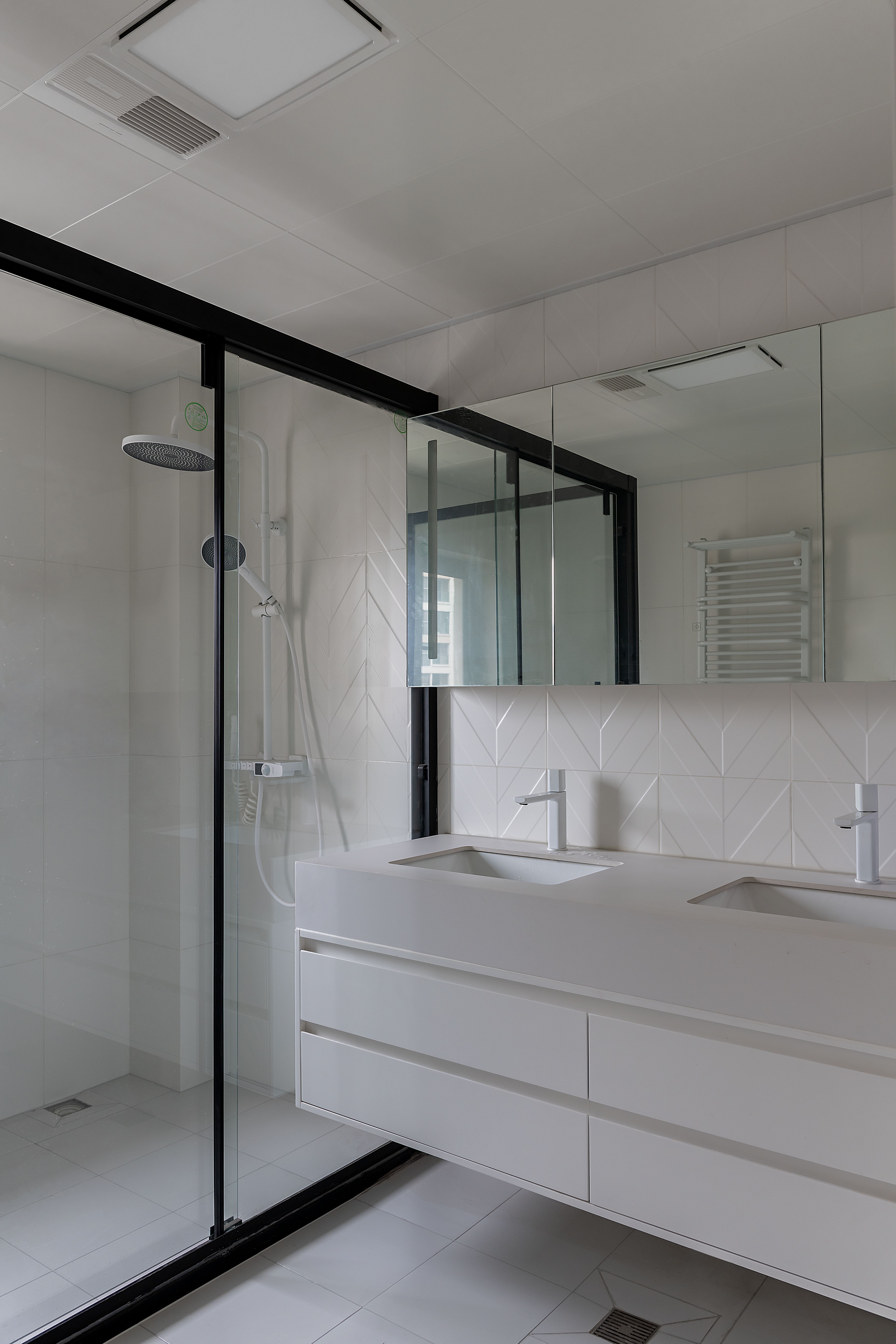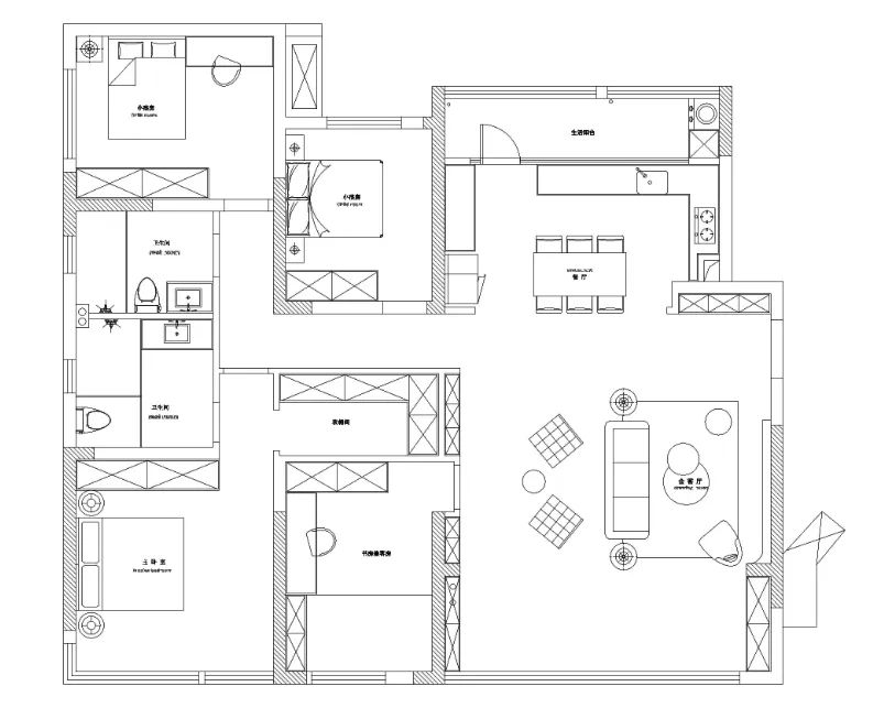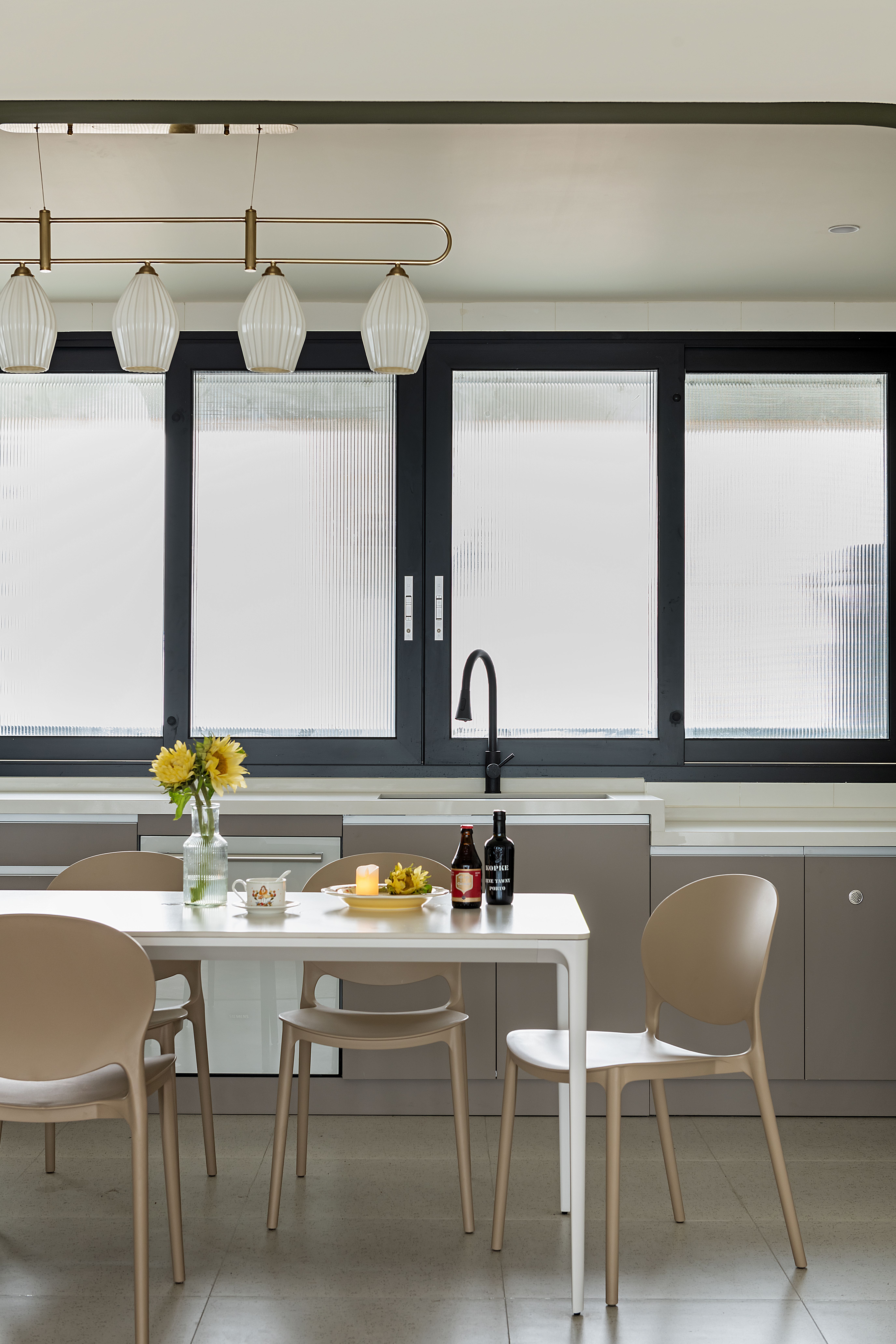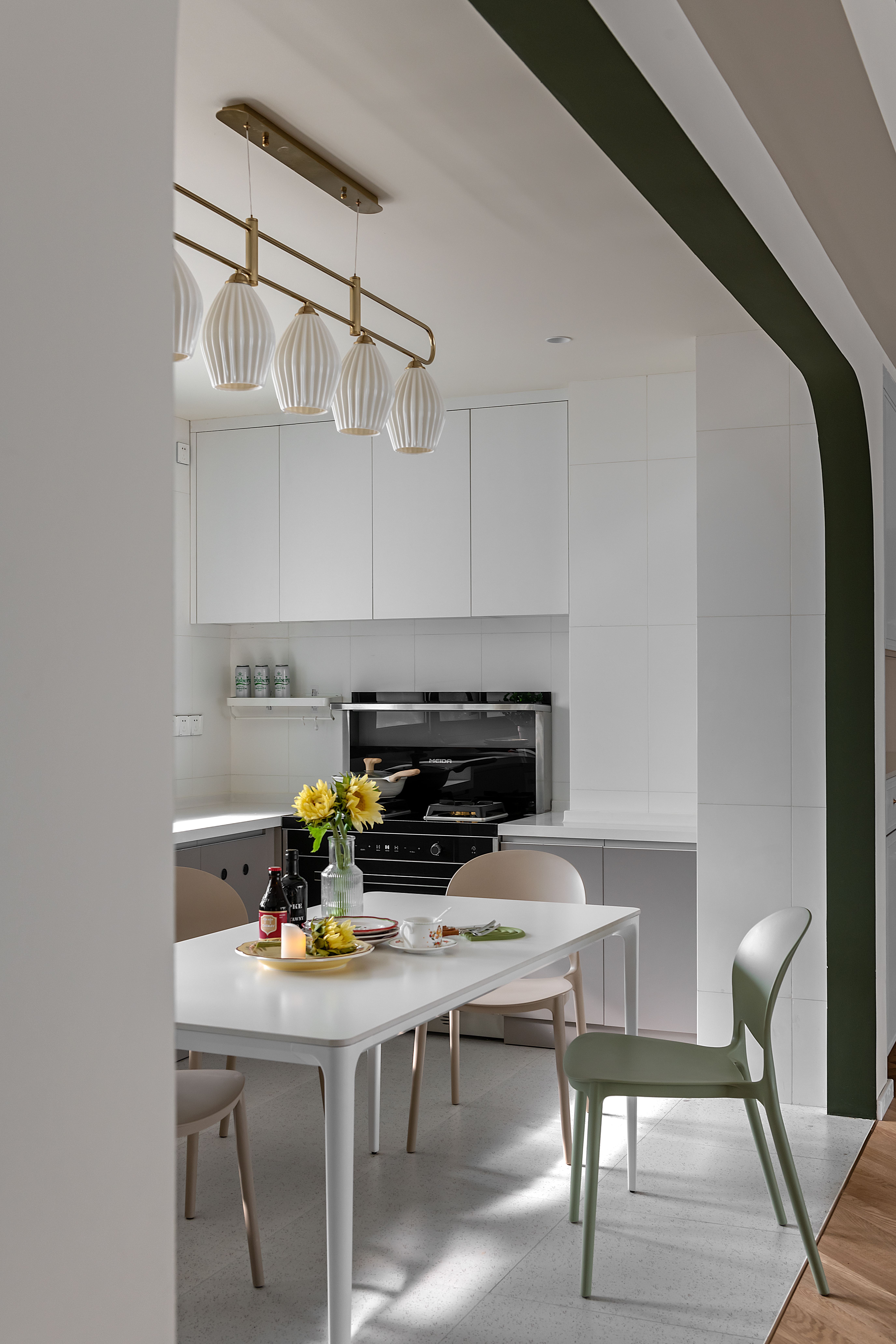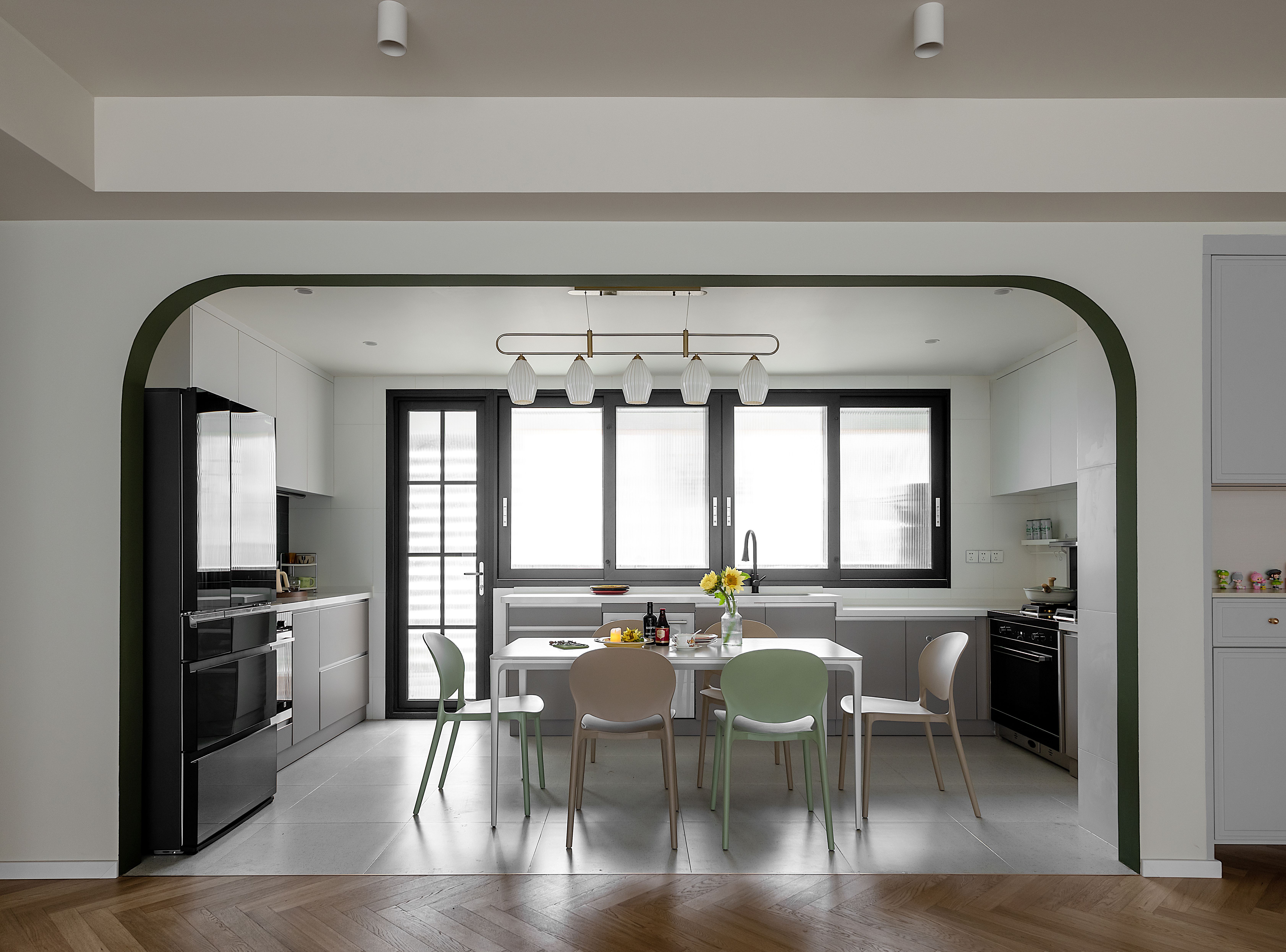 用户体验:本案客餐厨一体化的设计是十分舒适的,整体改造后,这个区域就有八十平,留给一家人互动的空间十分充足,以及书房双人的设计,方便两个小孩同时学习。