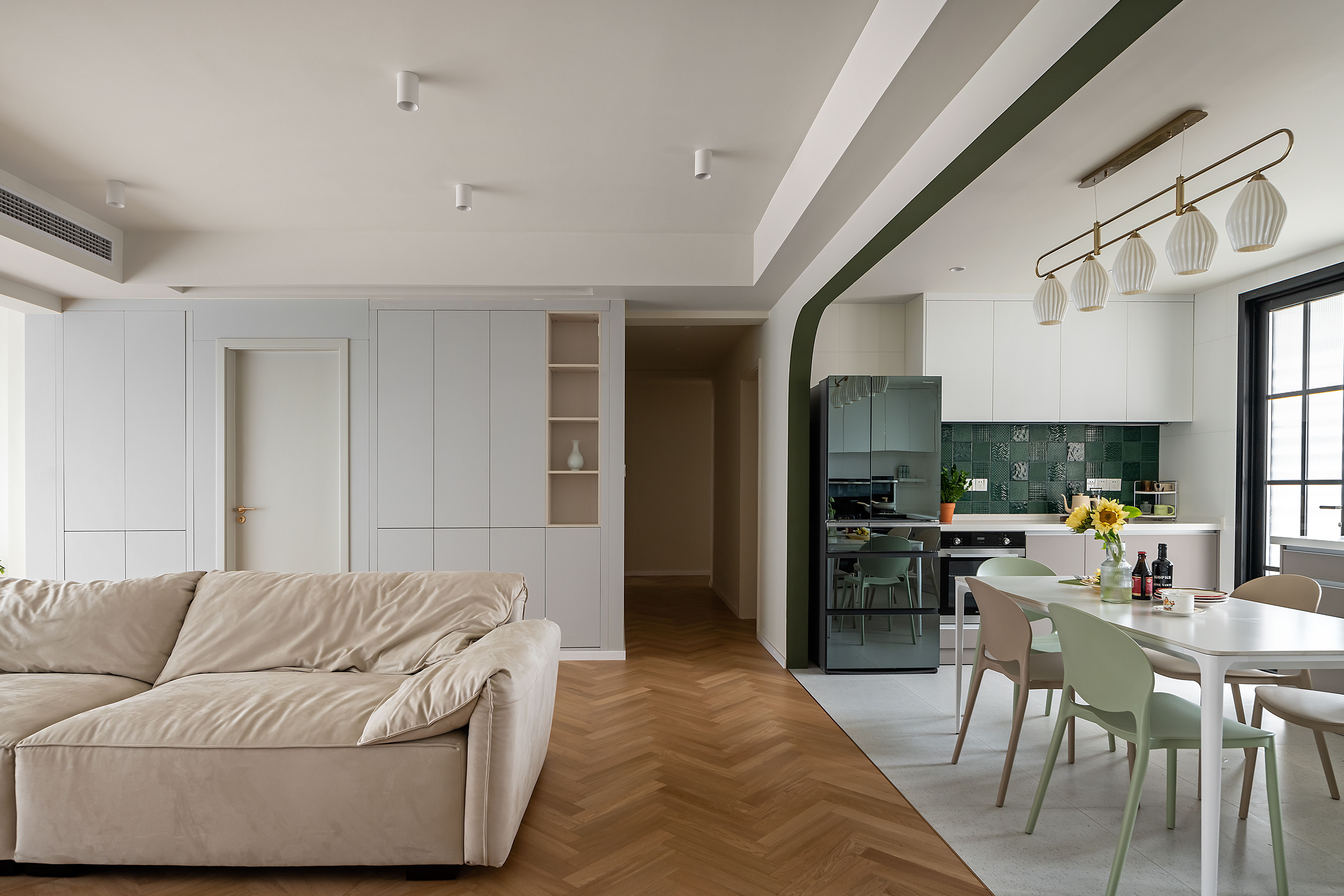 项目定位:本案主要为一家四口打造的温柔而治愈的居所,能包容一切的温暖的港湾,主要展现出空间的平静而温和,能包容抚平忙碌的疲惫。