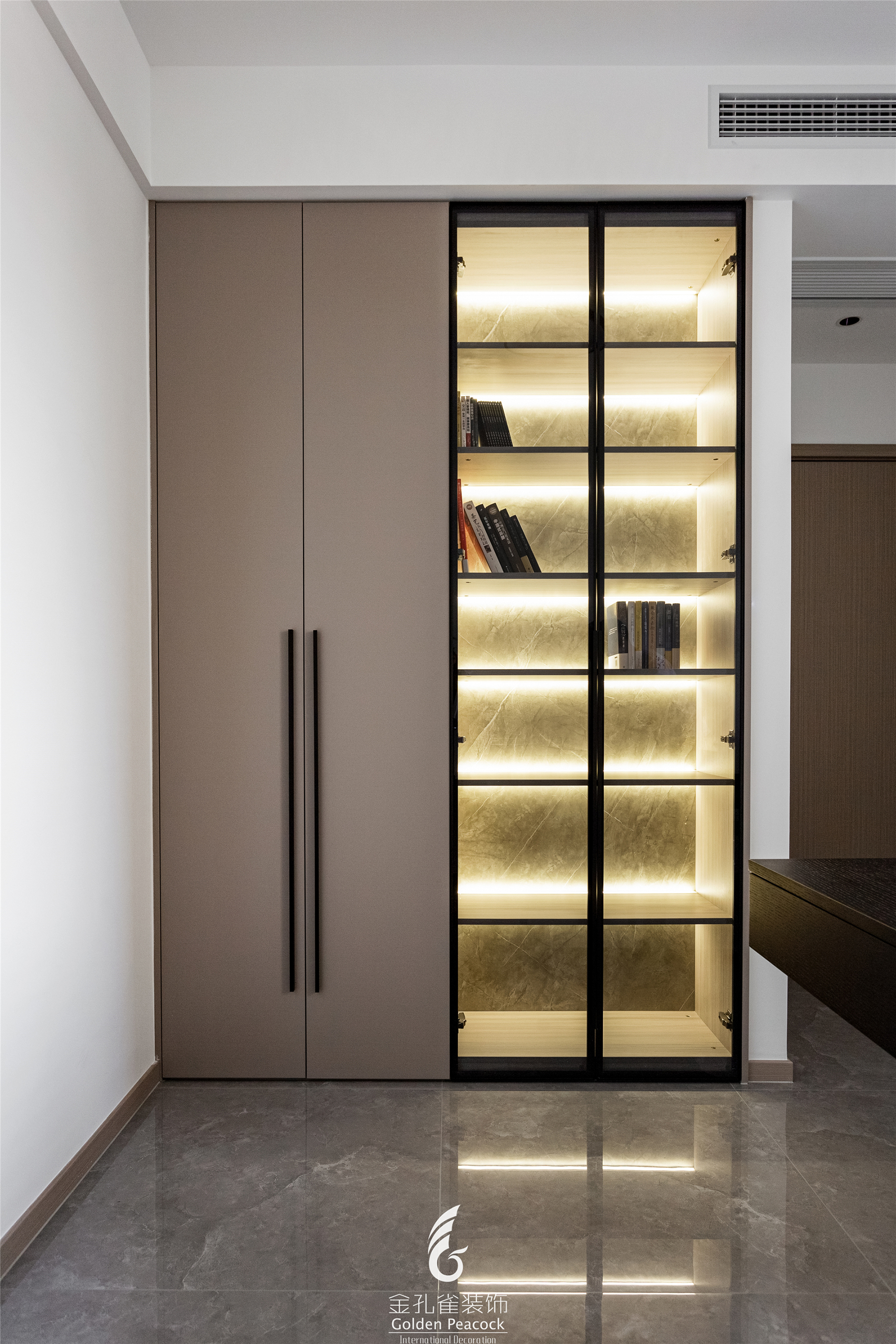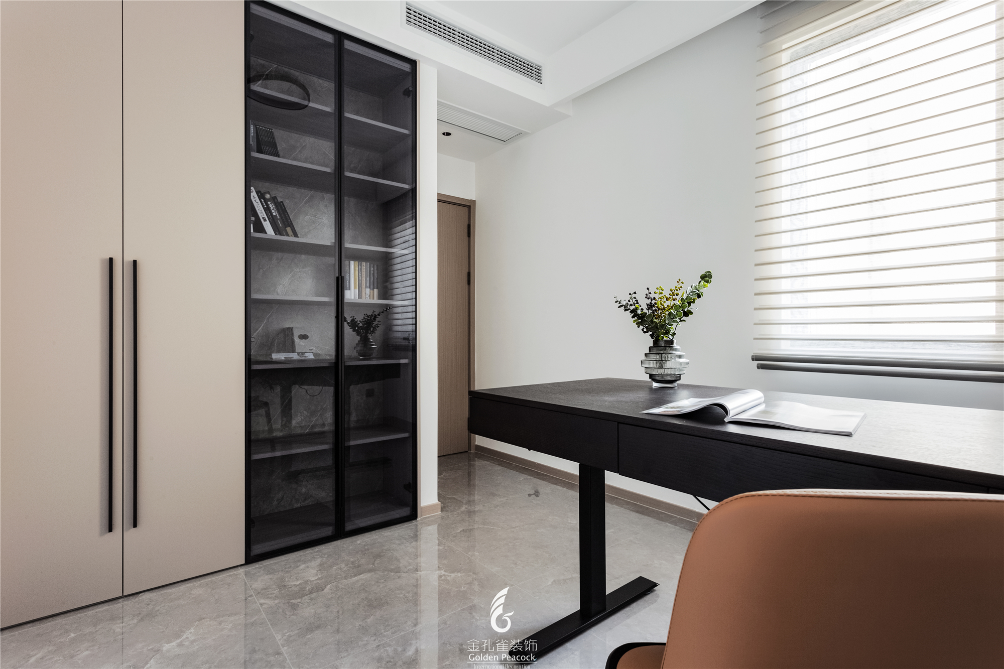 空间意境:浅灰色大理石大面积通铺整个地面,简约细腻的外表让空间看起来干净透亮,隐约透露出优雅的气息。