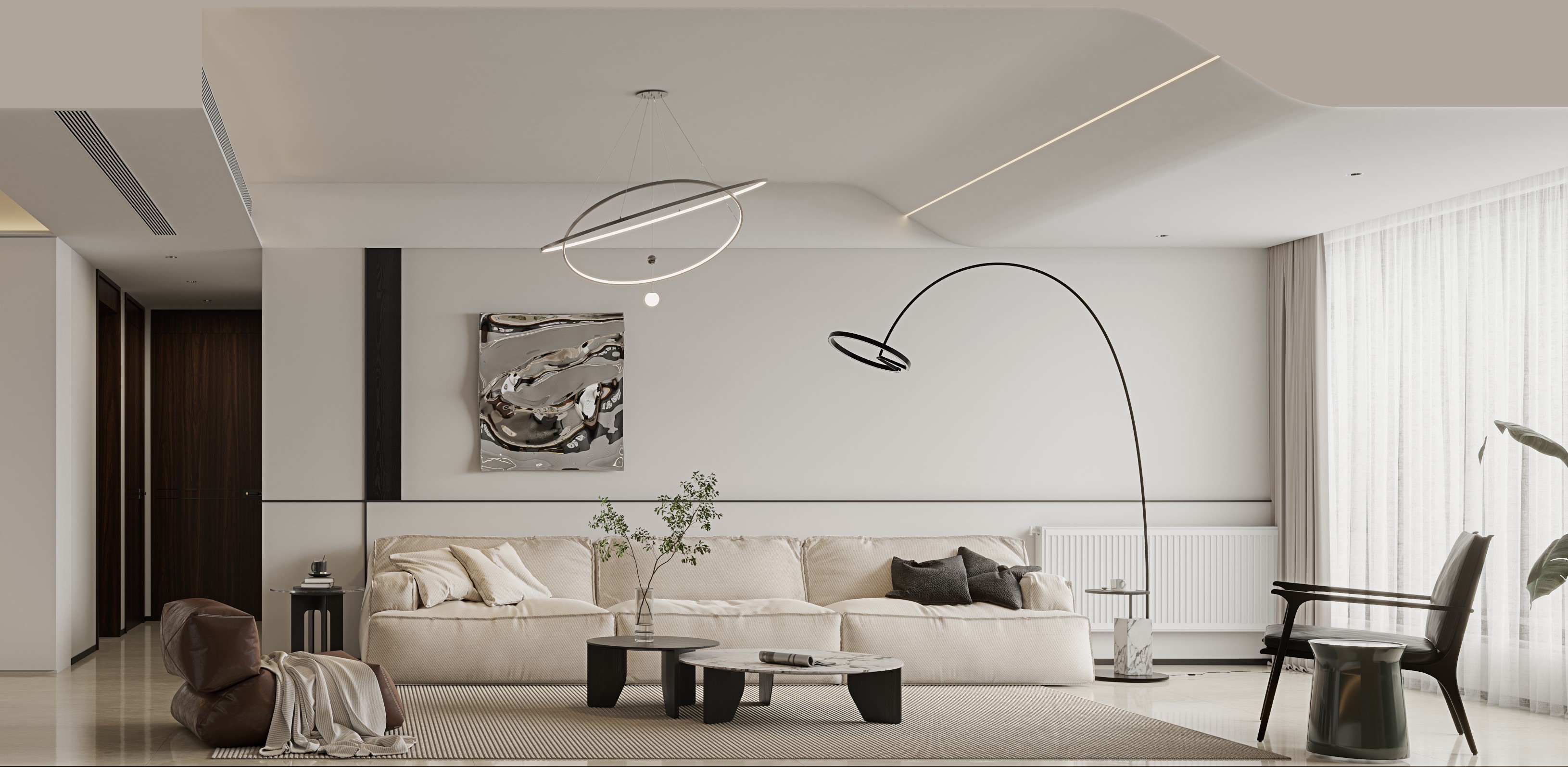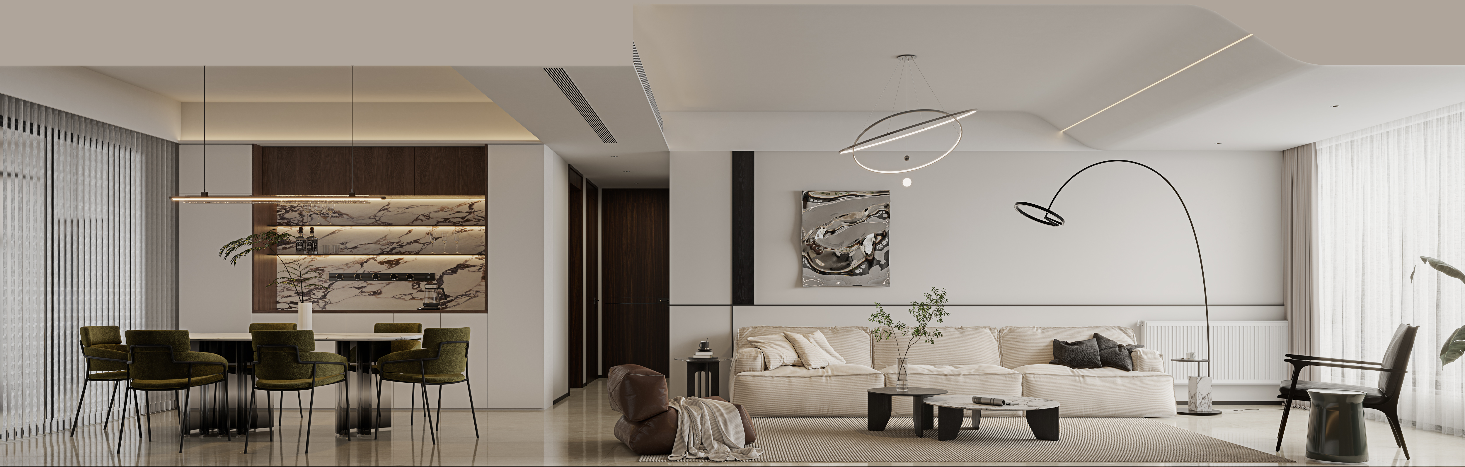 关注空间的灵活性和延伸感,客餐厅一体化的设计,赋予空间自由呼吸。金属元素的植入和灯光表现使得整体空间摈弃一切严肃。由黑到白,由静到动,层次分明,软装精心搭配,营造出独有格调和品质情怀。