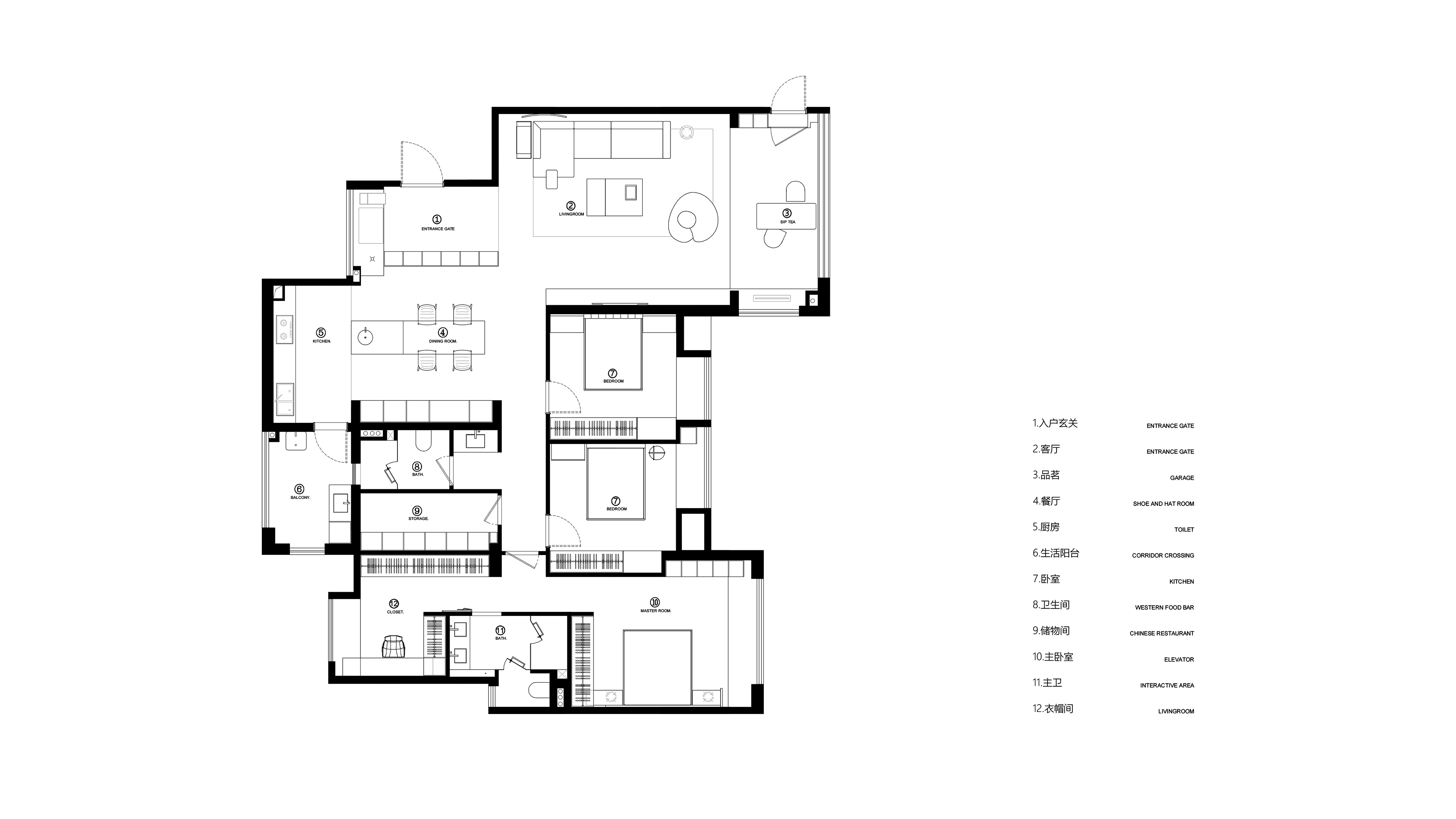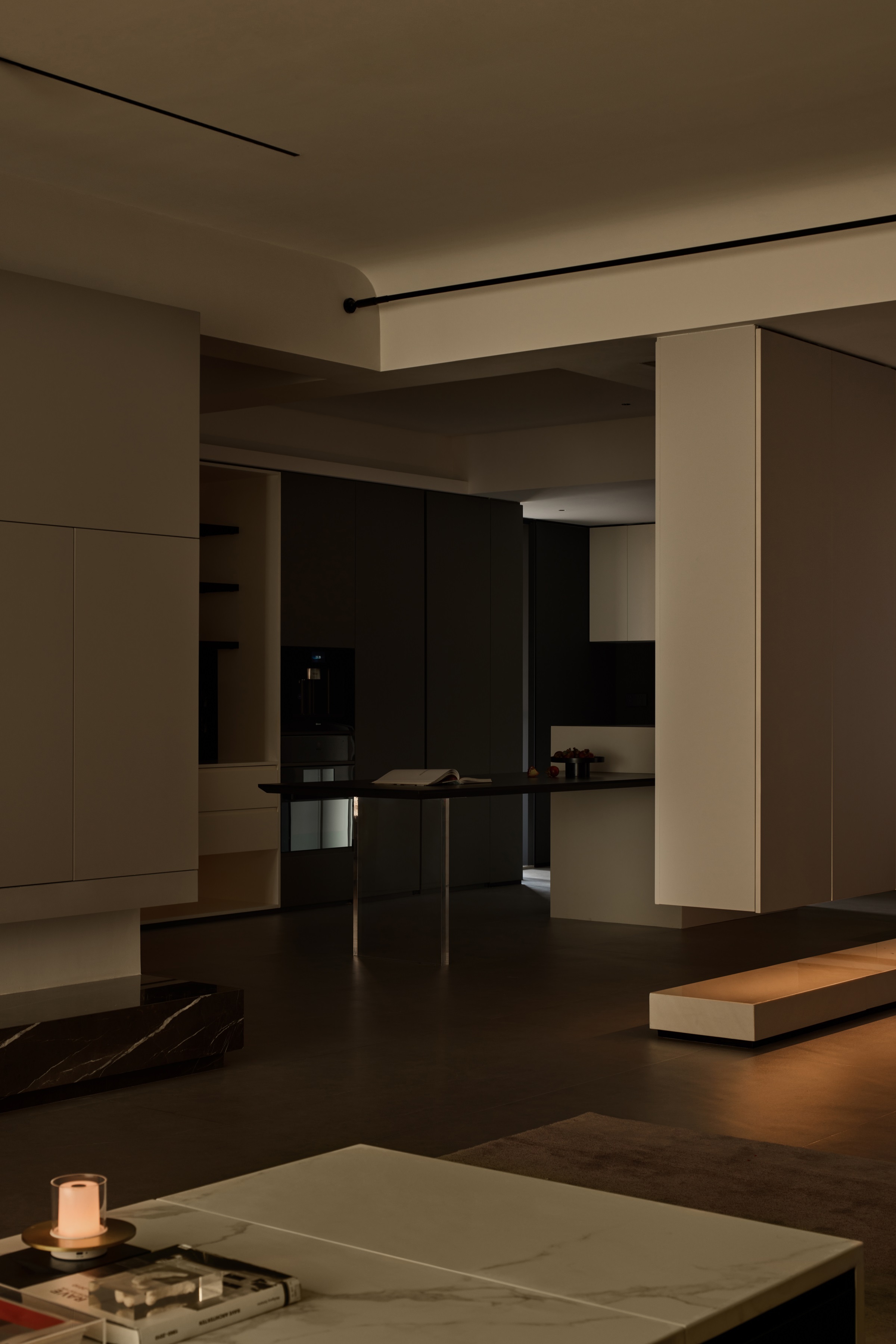 在现代社会快节奏生活下,很多时候我们并无法放慢步调来细细梳理生活的本意,自然松弛的生活已成为很多人向往的生活方式之一。本项目是一套高层小区的175㎡住宅,位于12楼,是三室两厅两卫一厨的空间。我们希望给居住者营造一个以轻松而惬意、简洁而纯净的氛围,创造一个舒适而能多储物的生活空间。基于此,将设计立于栖居本质,从场景塑造到细节推敲,主张视觉的极致简洁化、功能的极致高阶化,格局上布疏而有致,「 造景」而成诗的同时始终贯穿于空间的细枝末叶,让家回归生活的真实与鲜活,让居者可感受高阶审美里的自由与从容。