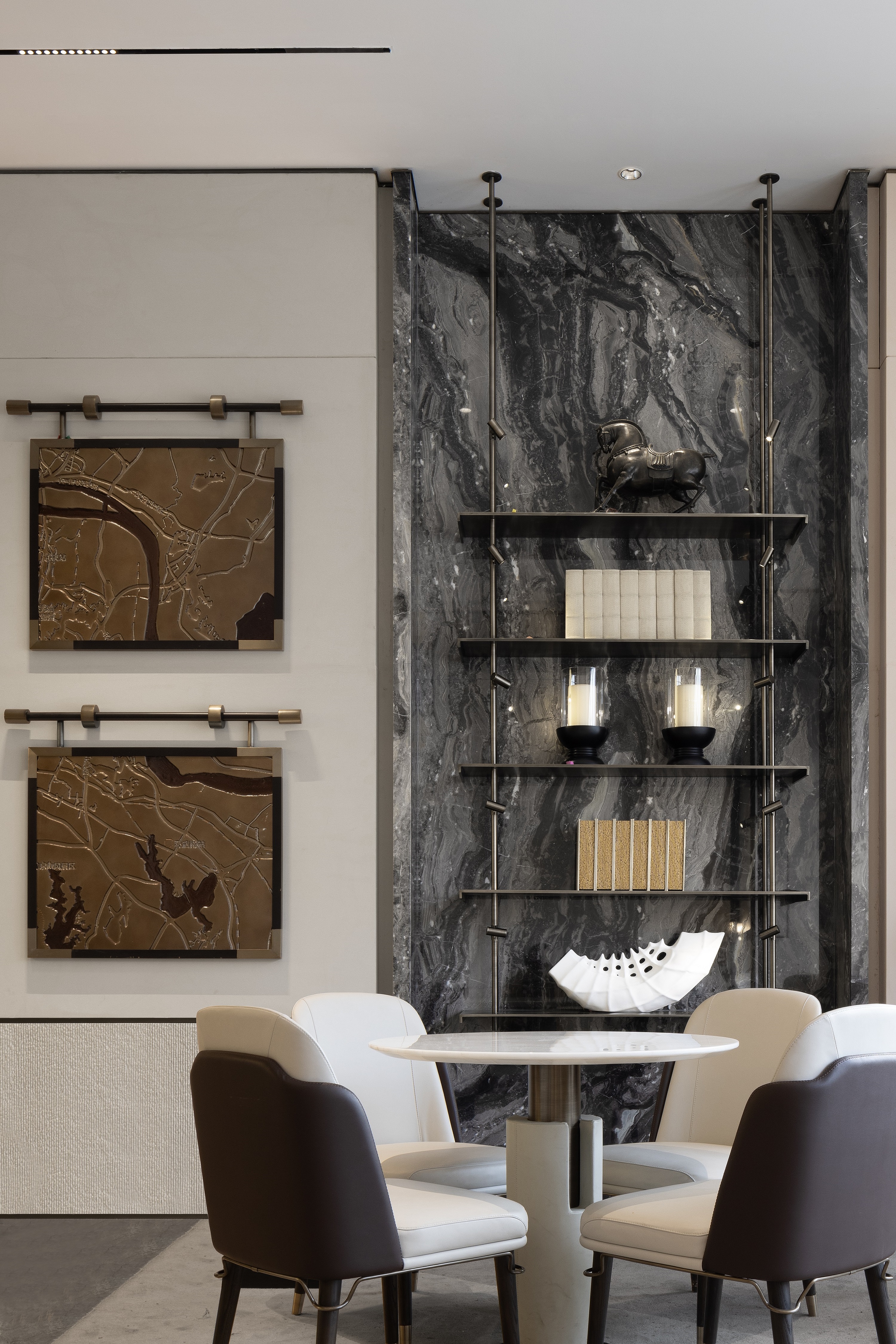 作为龙湖天字系产品的龙湖·天璞项目,落地白沙洲宜居核芯板块,凭借地理优越性,集一城精粹,尽享城市发展红利。在浓厚的人文氛围和自然景观下,锐度设计通过空间虚与透、材质肌理对比、光与影的变化,将生活温度与未来畅想糅合进设计美学之中,既保证前期销售使用的展示效果,又兼顾后期长期保留使用的功能性与可实施性,在当下日新月异的城市进程中,构筑出让人体验愉悦的都市空间。