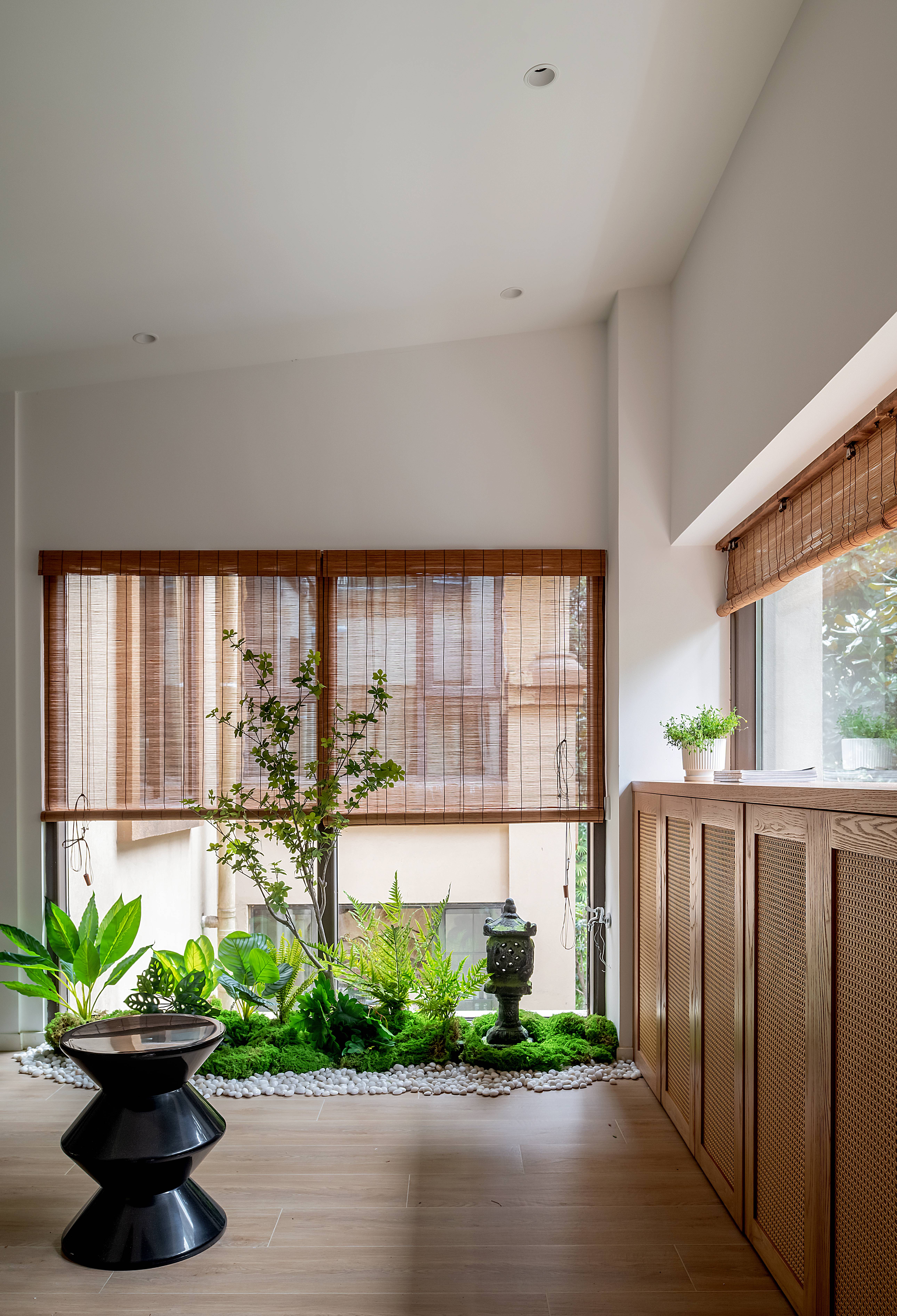 空间意境:本案的风格为自然原木,利用房屋四周环境的安静与自然,将自然之景引入室内,让整个空间与自然共生,治愈而温馨。
