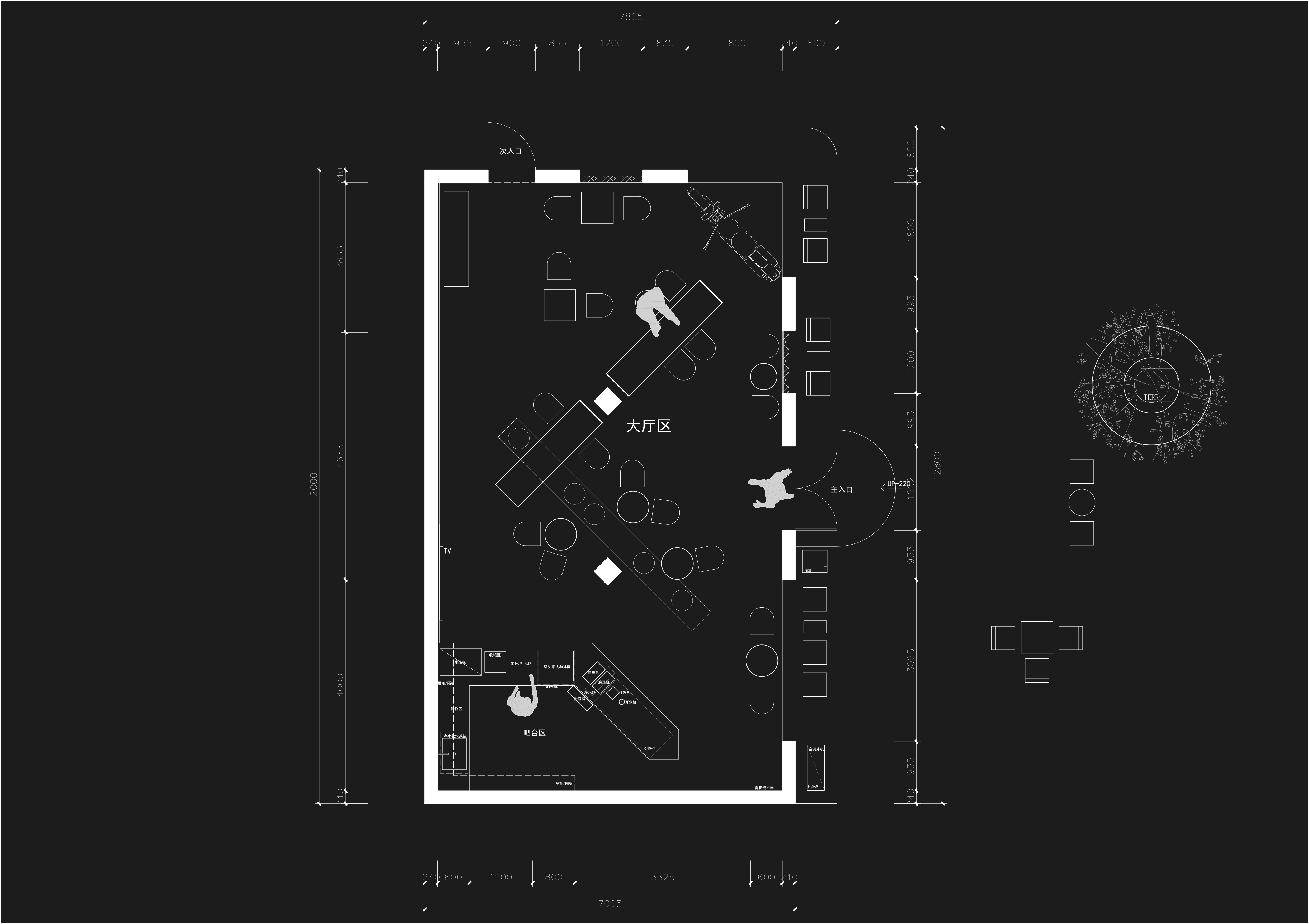 空间布局:彻底的留白空间,不做任何形式的分割,环绕式的落座形式带来更为自由的表达。
