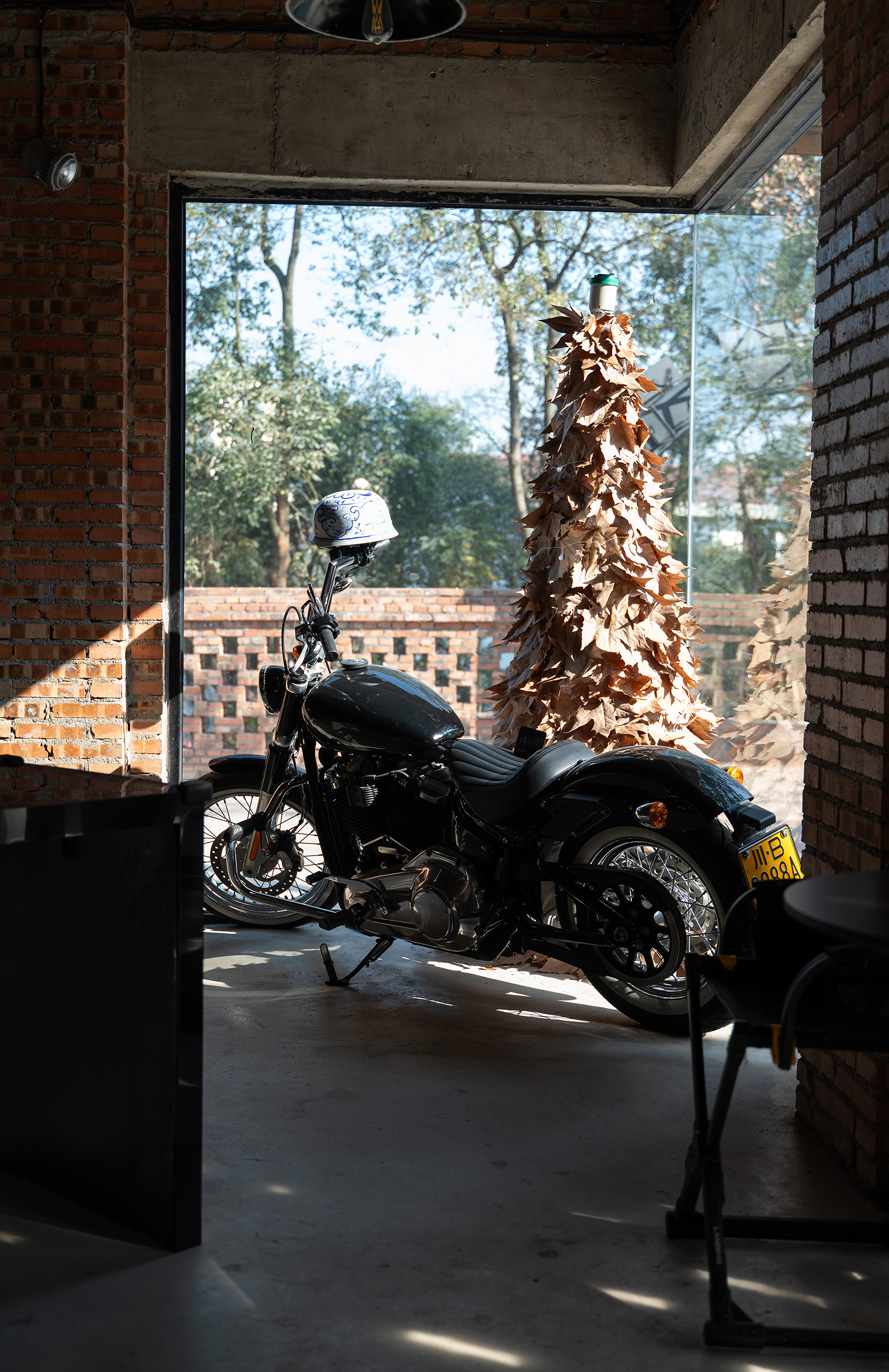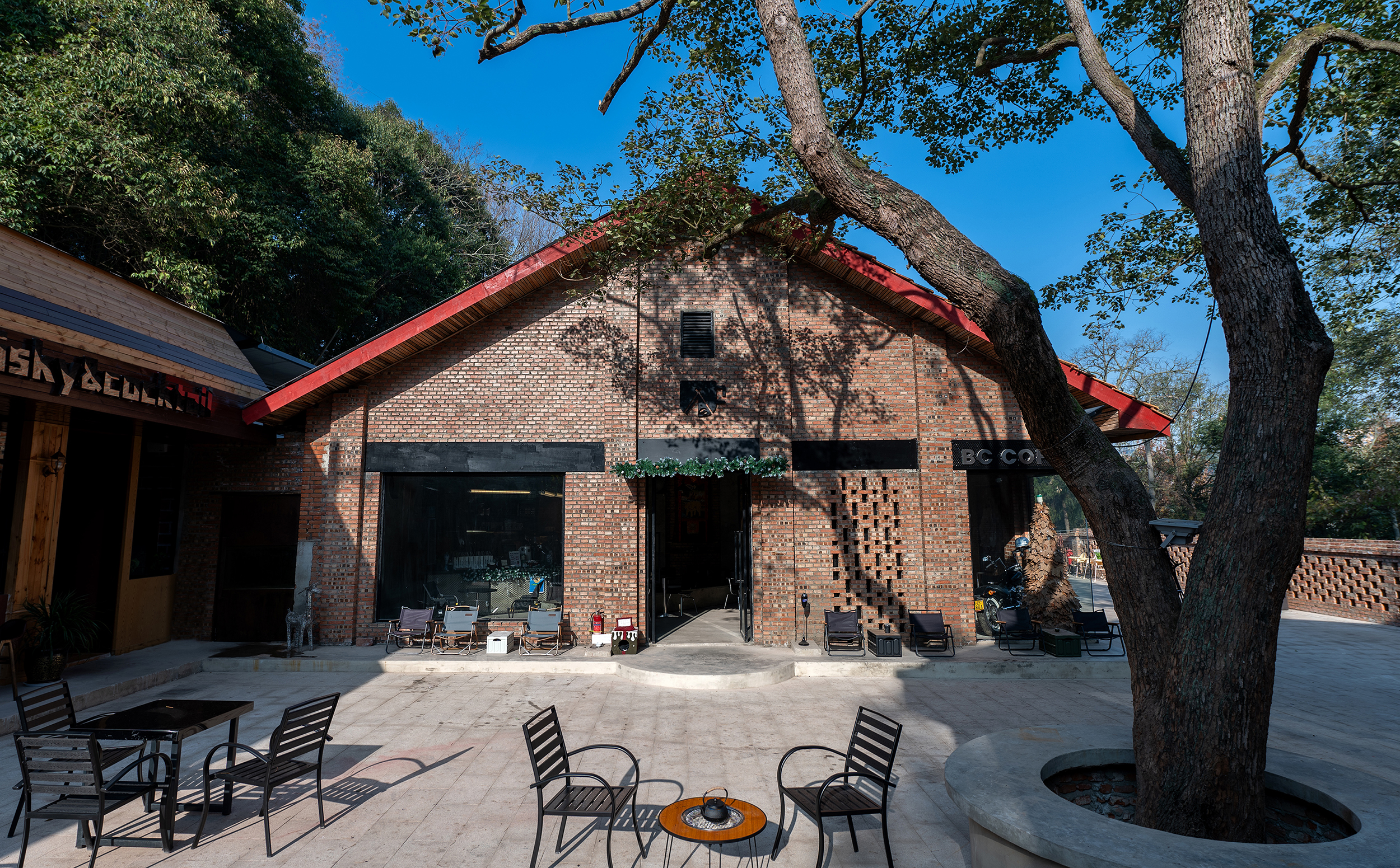 阳光洒满的岁月里,刻意砌筑的镂空砖墙,门前的老树,用光影链接着室内外的光阴。