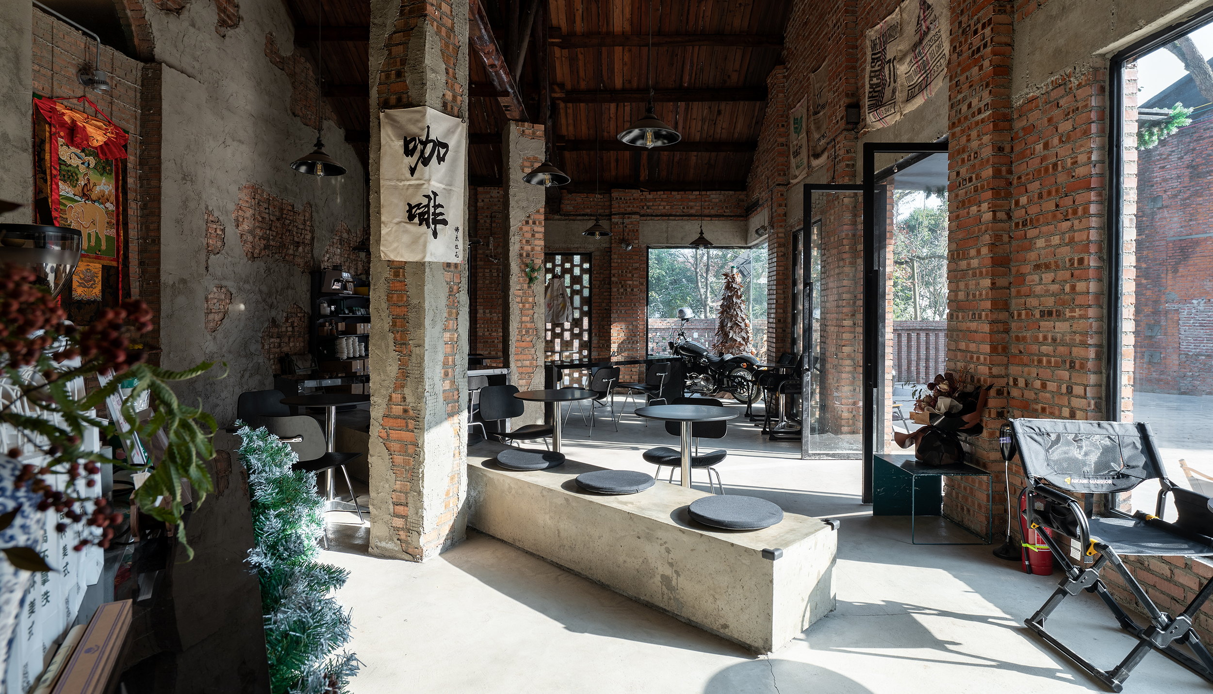 用红砖、木、泥、石,去还原曾经的质感,不是新生,只是旧枝上重新开出的花。