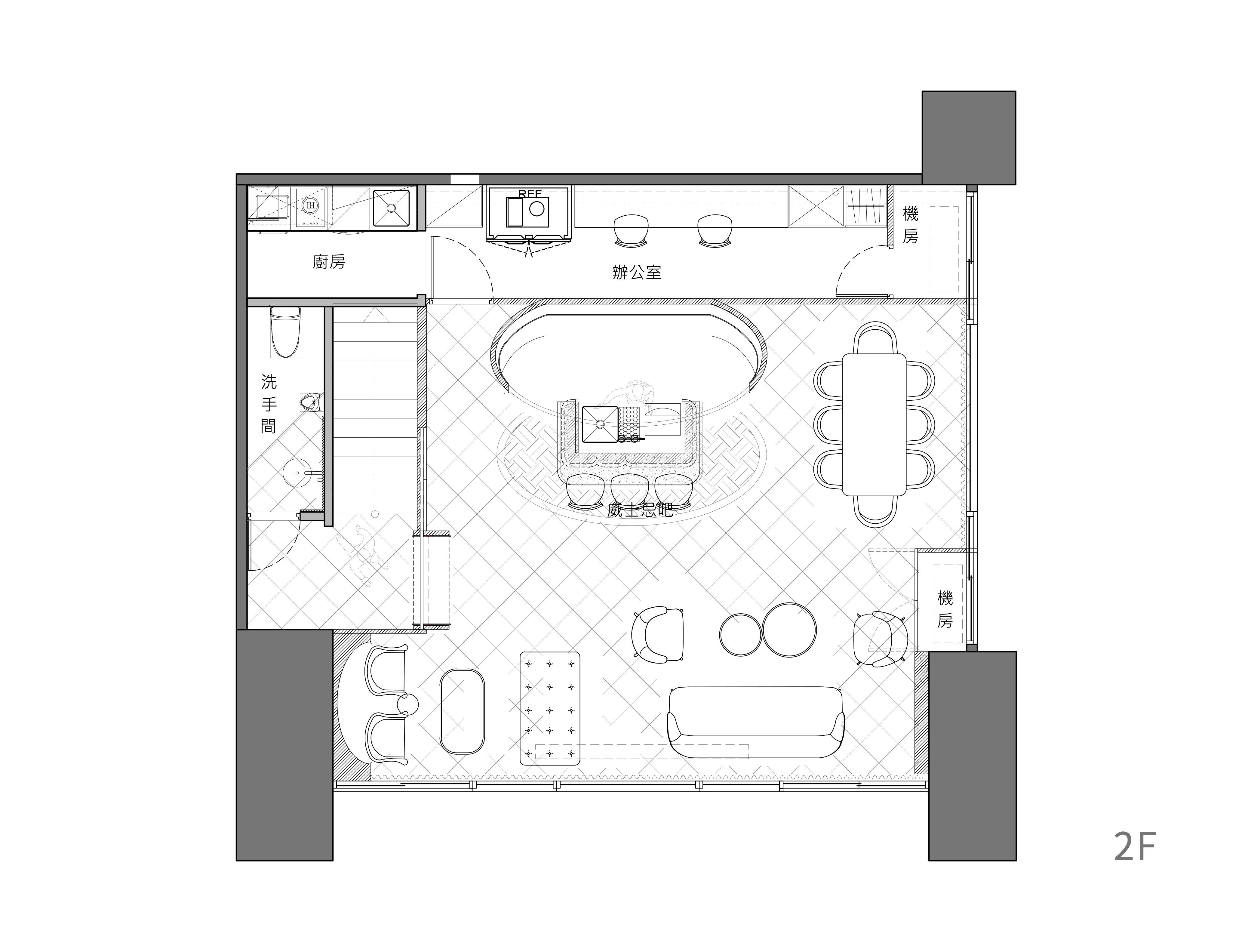 项目定位:空间如酒,从第一道制程开始,每一环节皆会影响最终的风味。此案为一贩售红酒及威士忌的商业空间,业主的经营定位为「酒窖」非为酒吧,因像以如古老酒窖一般,使用当地传统建材为空间的主要素材。