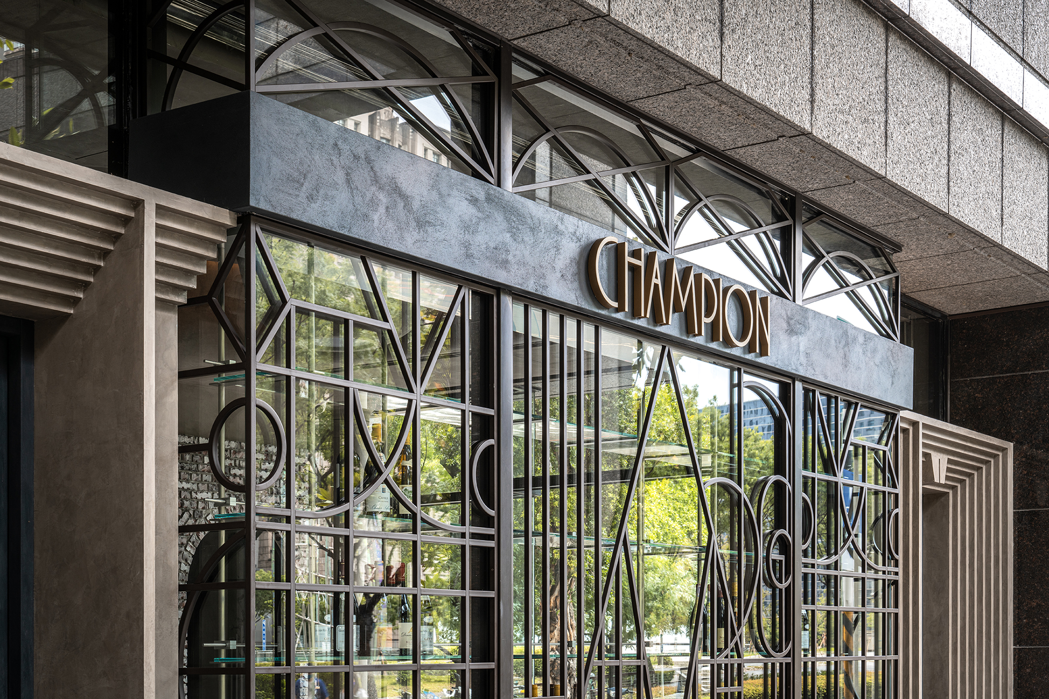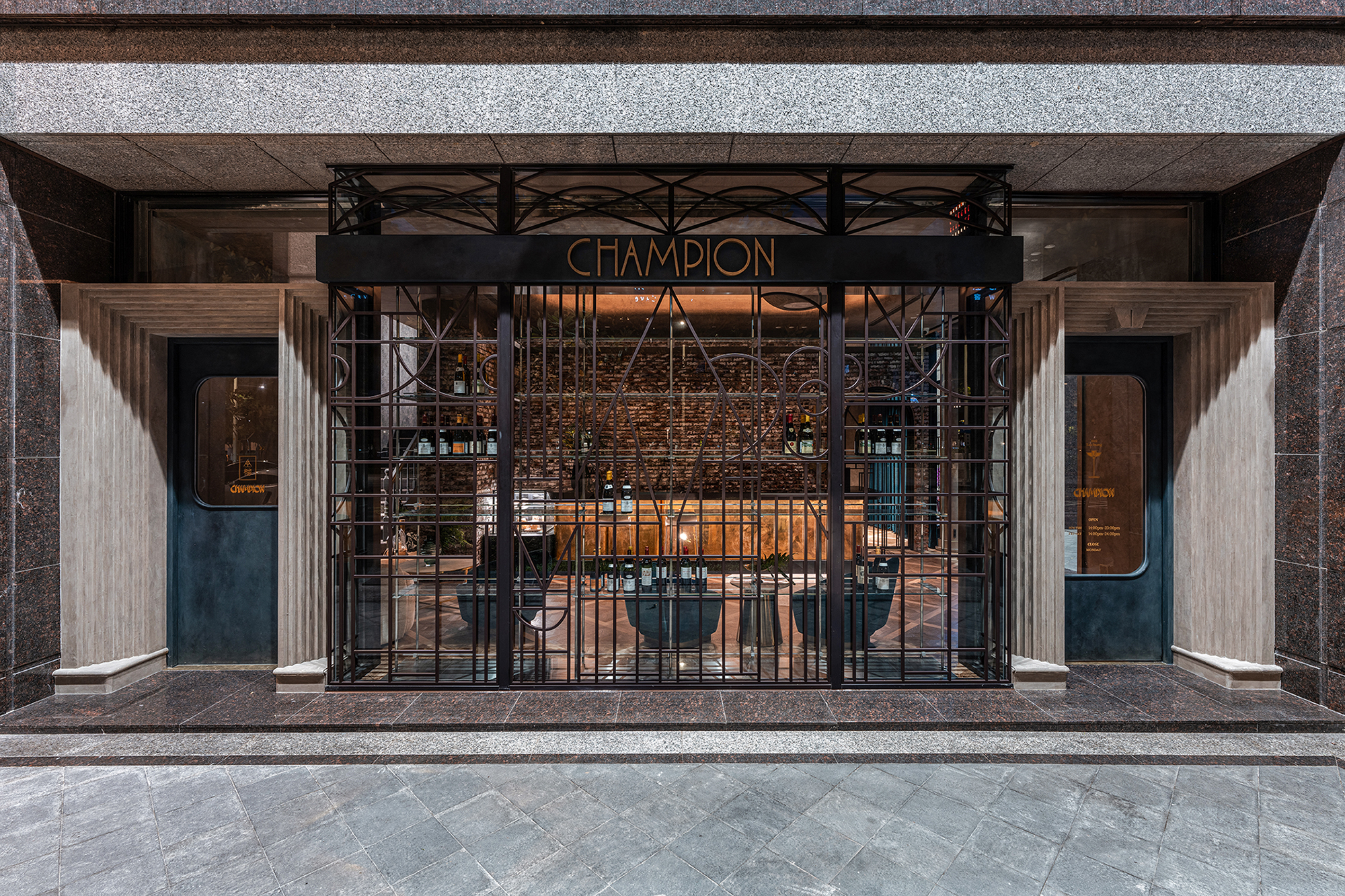 设计选材:恒温恒湿的藏酒设备以台湾火头砖做为保温材最外层的披覆,在叠砌中加入店名元素排列变化,金属店招特地做同红砖大小再置入现代语汇。以特殊纹路涂料处理好似附着在空间中可见的湿度,天花巨型球体仿若摇晃酒杯时滴落的酒液。地板延续传统元素仿制拼花木纹,顺应异材质崁入金属图像细部衔接。厕所壁面采以同红砖大小的丁挂砖,表现出型式上接近但材料本质上完全的对比。