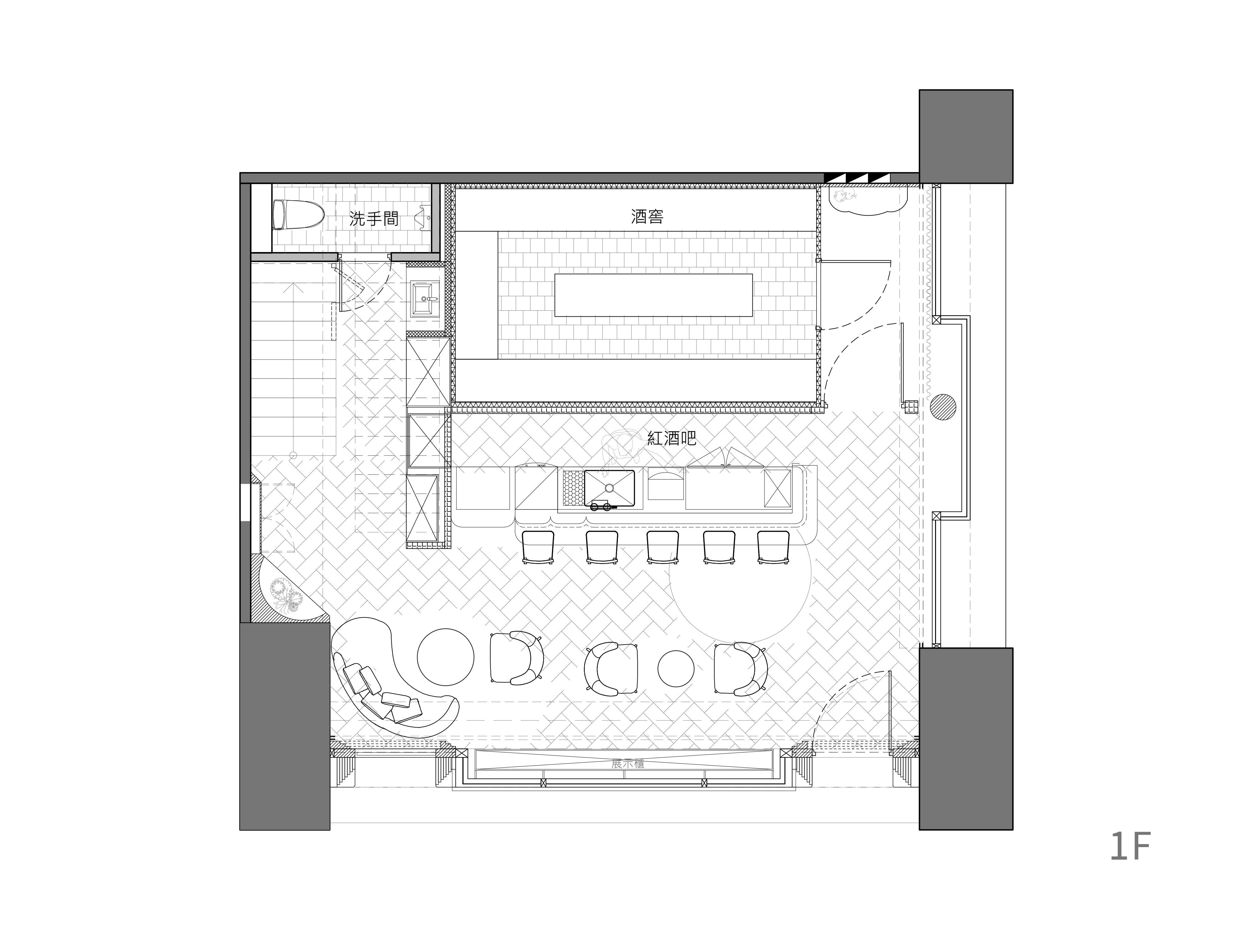 此案为一贩售红酒及威士忌的商业空间,业主的经营定位为「酒窖」非为酒吧,因像以如古老酒窖一般,使用当地传统建材为空间的主要素材。