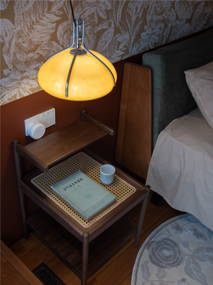 9.生活的浪漫,在细节里潜藏,从家具到小物的颜色,质感和线条,总是要与父母的气质相符,是沉稳的,是文艺的,是在手心触摸质地时候有共鸣,设计师将父母的喜好都通过小细节展现,也营造引导他们时常使用的欣喜,对于“适老化的关爱”,是即使儿女不在身旁,通过这些小情调,小情绪,可以感受来自儿女的关爱和依赖。 -