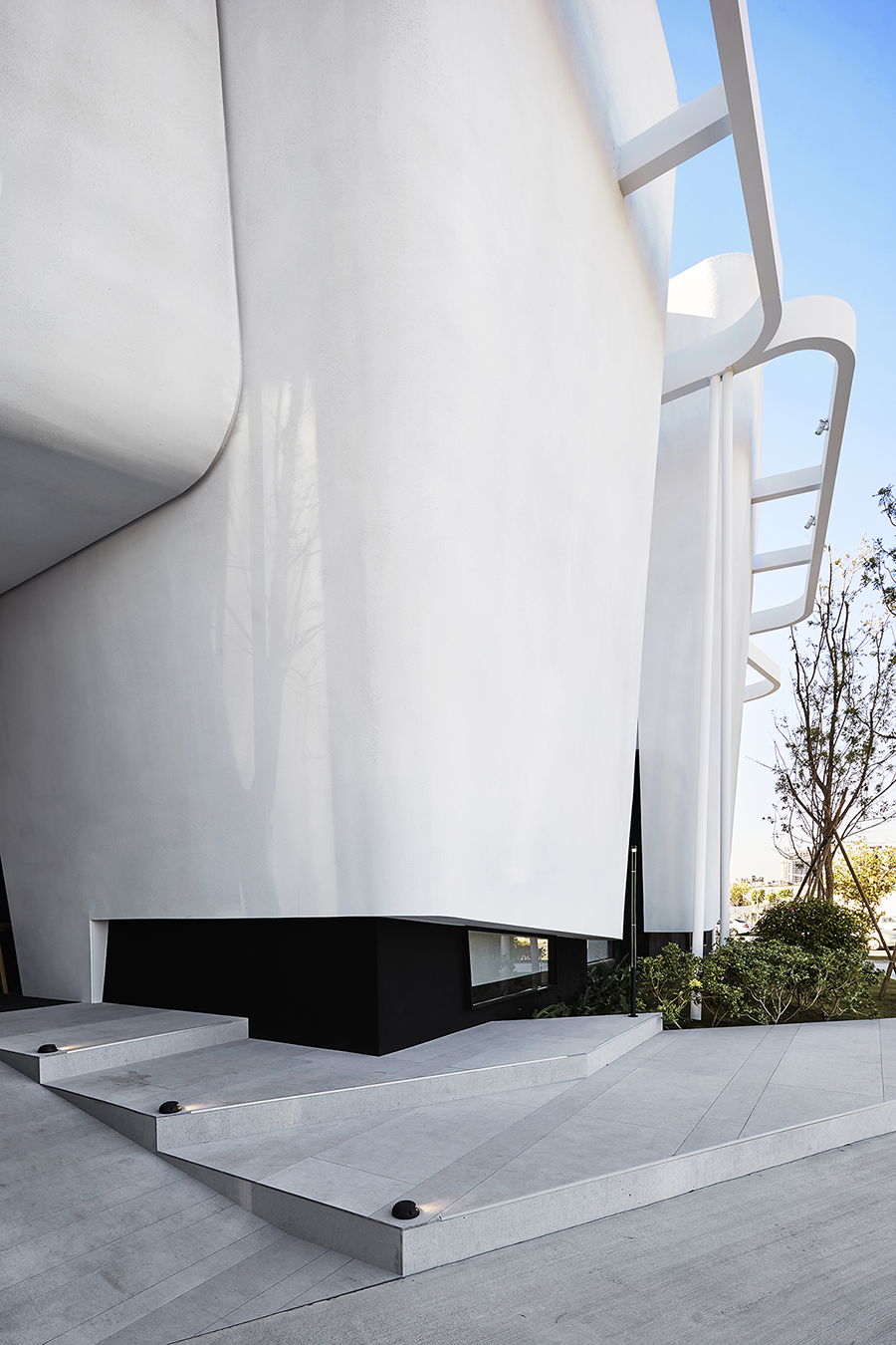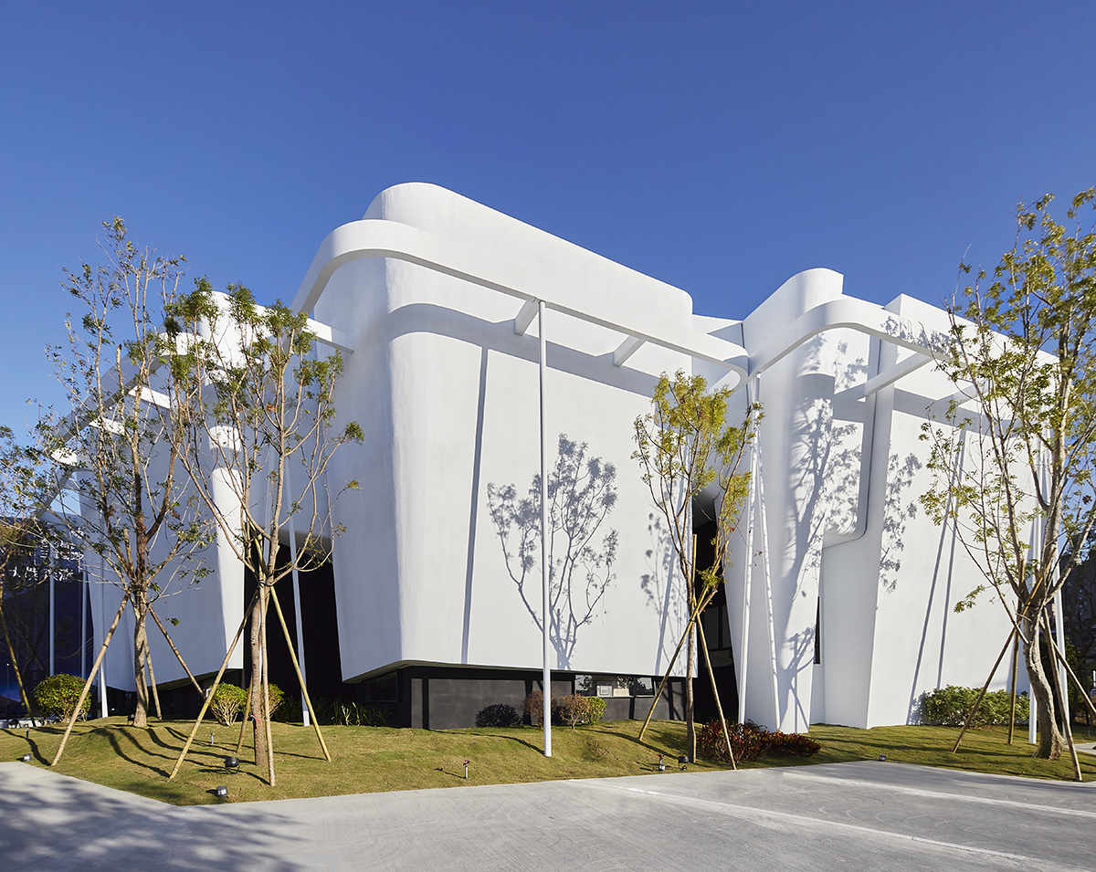 空间意境:建築外觀以多個潔白、不規則的量體組構而成,內部空間也延續不規則的設計手法規劃格局,以此創造獨樹一格的空間型態。汲取「當今多元文化之群體共組聚落仍可和諧共存」的概念帶入空間設計,以非傳統的切割手法劃分格局,並將大小各異的機能場域進行串接,創造空間聚合。