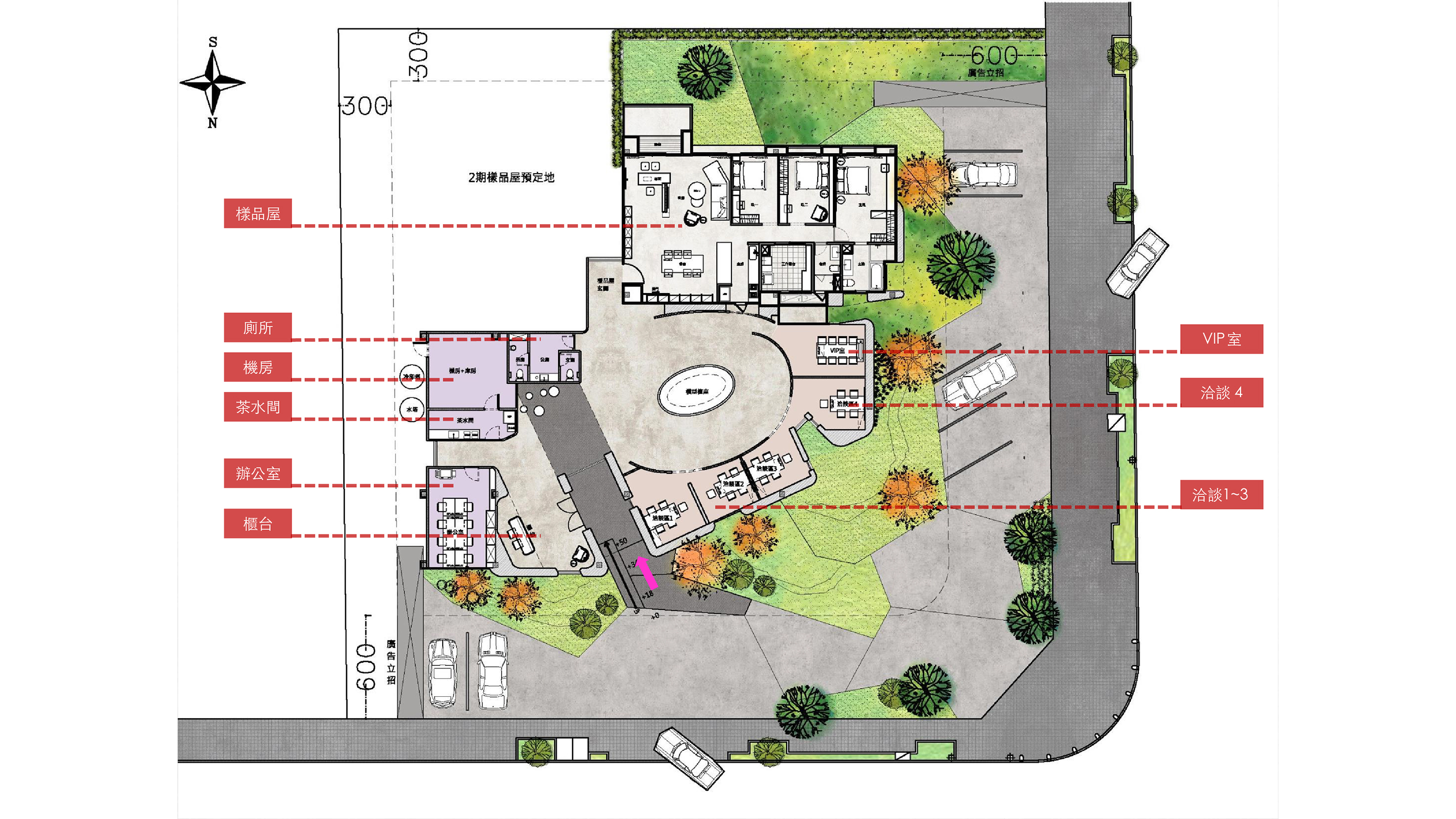 项目定位:近年來,隨著環保意識抬頭,綠色設計日益成為建築、空間設計的指標。本案以「回歸自然」作為設計主軸,致力創造一個能與自然連結的空間,「城市綠洲」的設計也因此孕育而生。該案空間有提供休憩、洽談、會議、聚會等使用機能。風格是以現代主義進行擘劃,再搭配低建蔽率和高密度綠化的設計,讓現代都市人擁有簡單、自然的休憩場域,同時也為社區提供友善的活動場所。