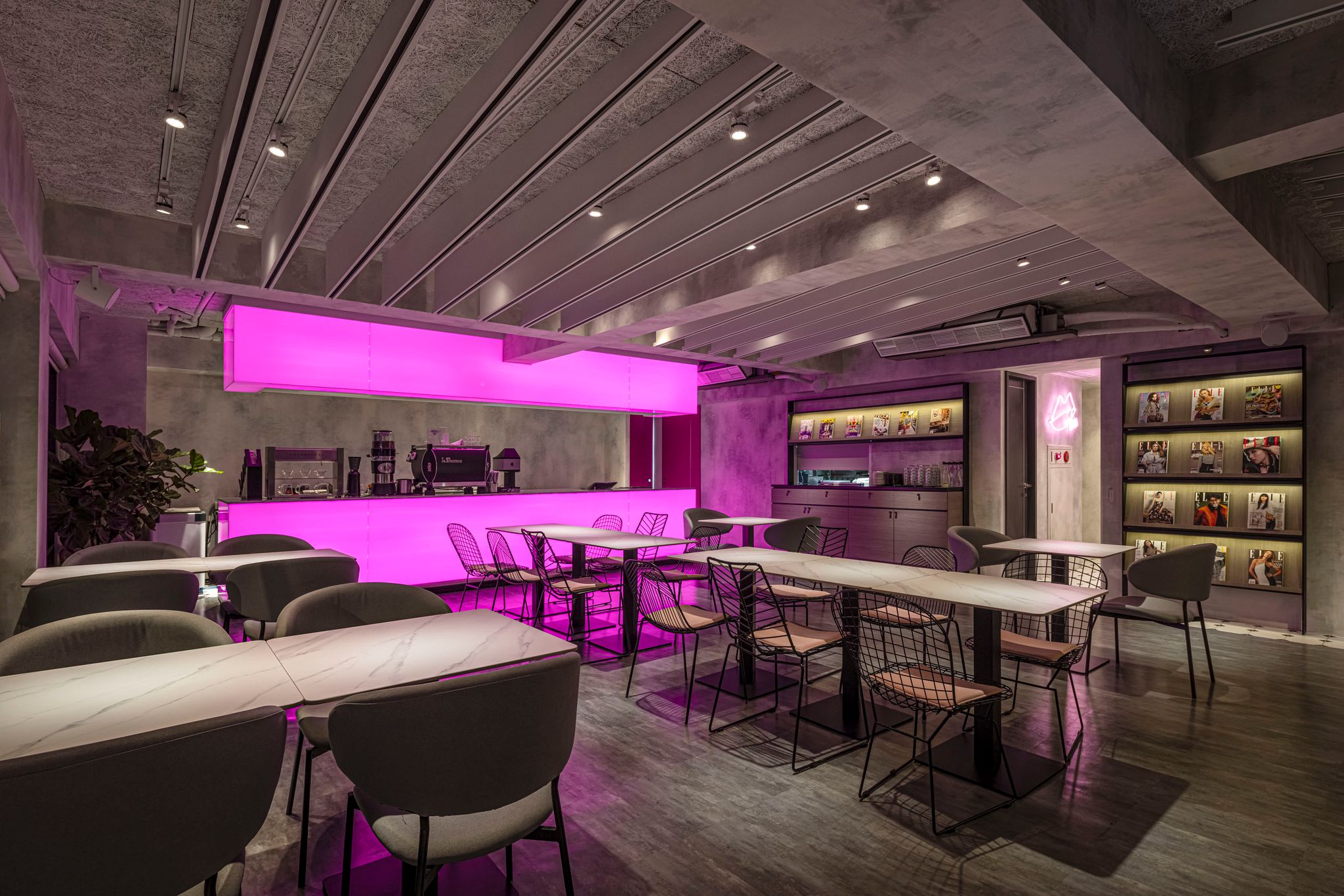 用户体验:吧台设计的概念来自于白天与夜晚自然变换而产生的不同面貌,想要形容当代女性的反差面。吧台体块的白天是个极度干净与素雅的方块体,到了晚上摇身一变成了充满活力与能量的粉紫色空间,在音乐的烘托下,夜晚的吧台呈现更自由与奔放的状态来致敬巴黎夜晚。吸引着年轻人的关注。