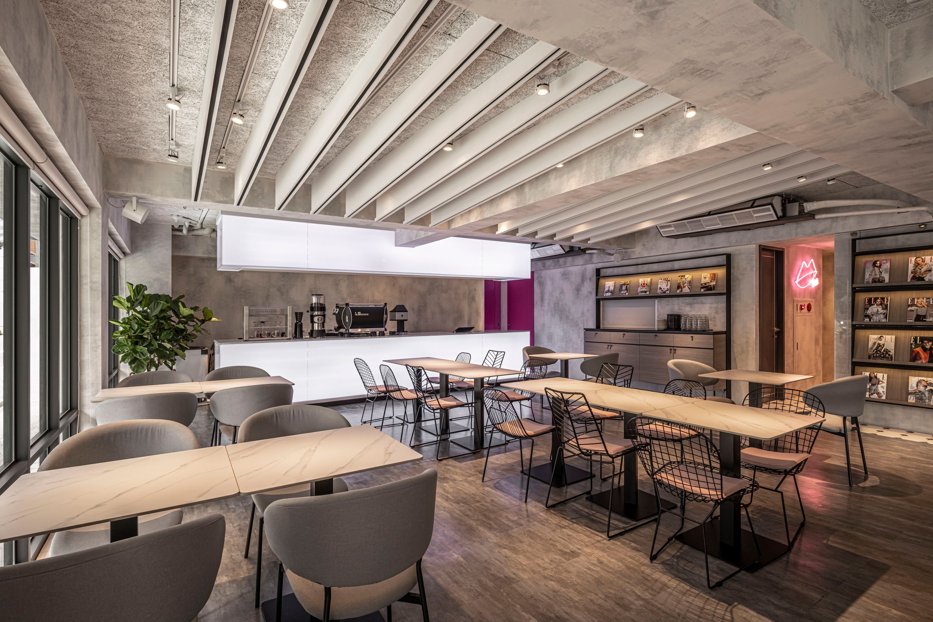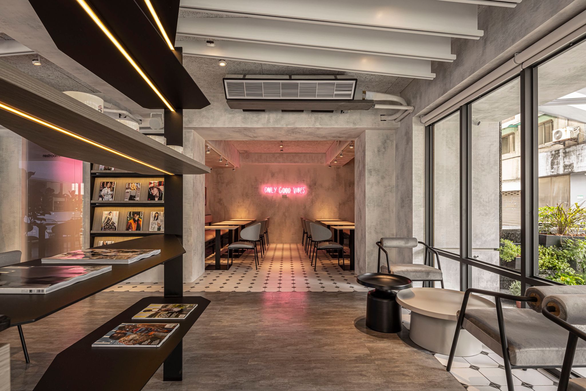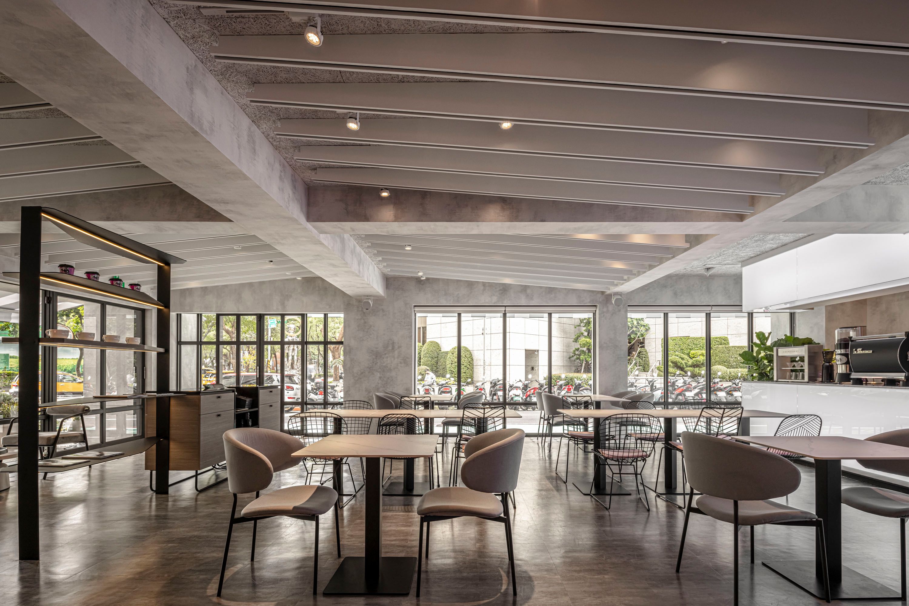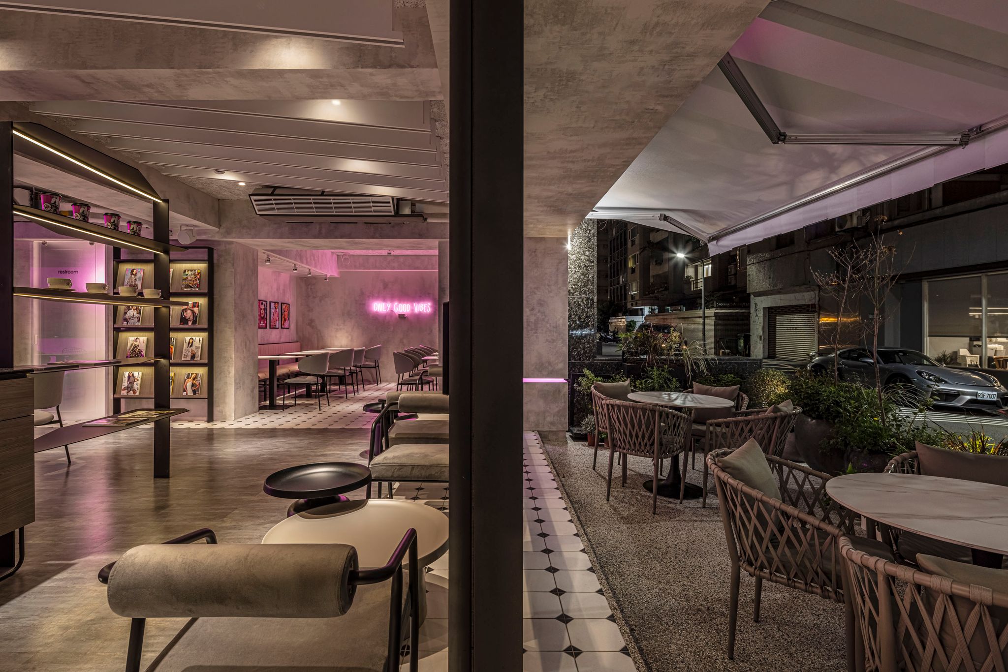空间意境:建筑主体运用经典印象中的黑白条纹雨棚,运用周边环境及自然光影的结合,回应了街边慵懒休闲,人与环境共存的概念。 在台北街头重现了一种自然流露的法式风格与魅力。