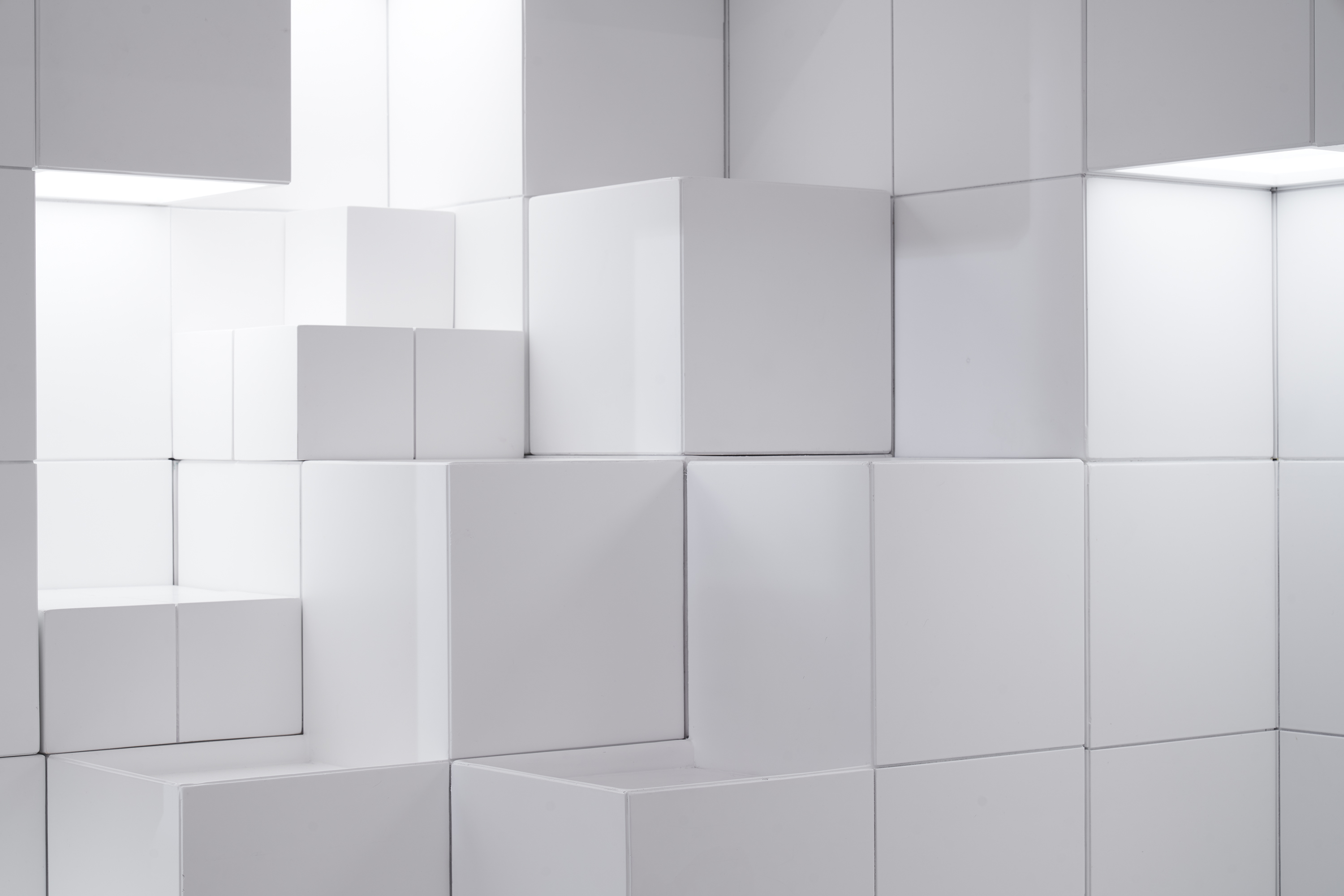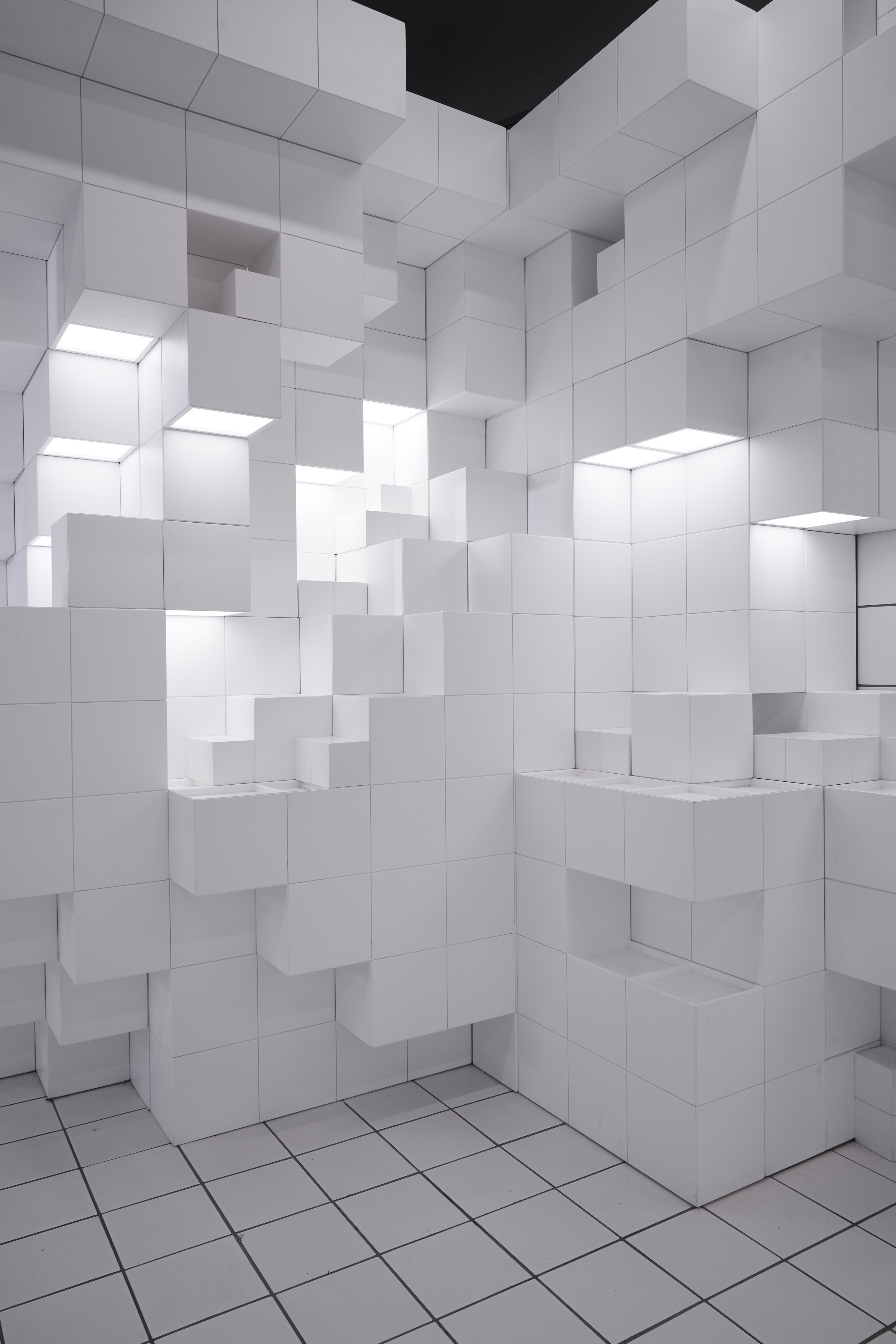 空间布局:方块逻辑设计与应用是我们的认为最核心的要点。不同矩阵模式中组合、堆栈或是错落,都可以产生不同效果的陈列模式。