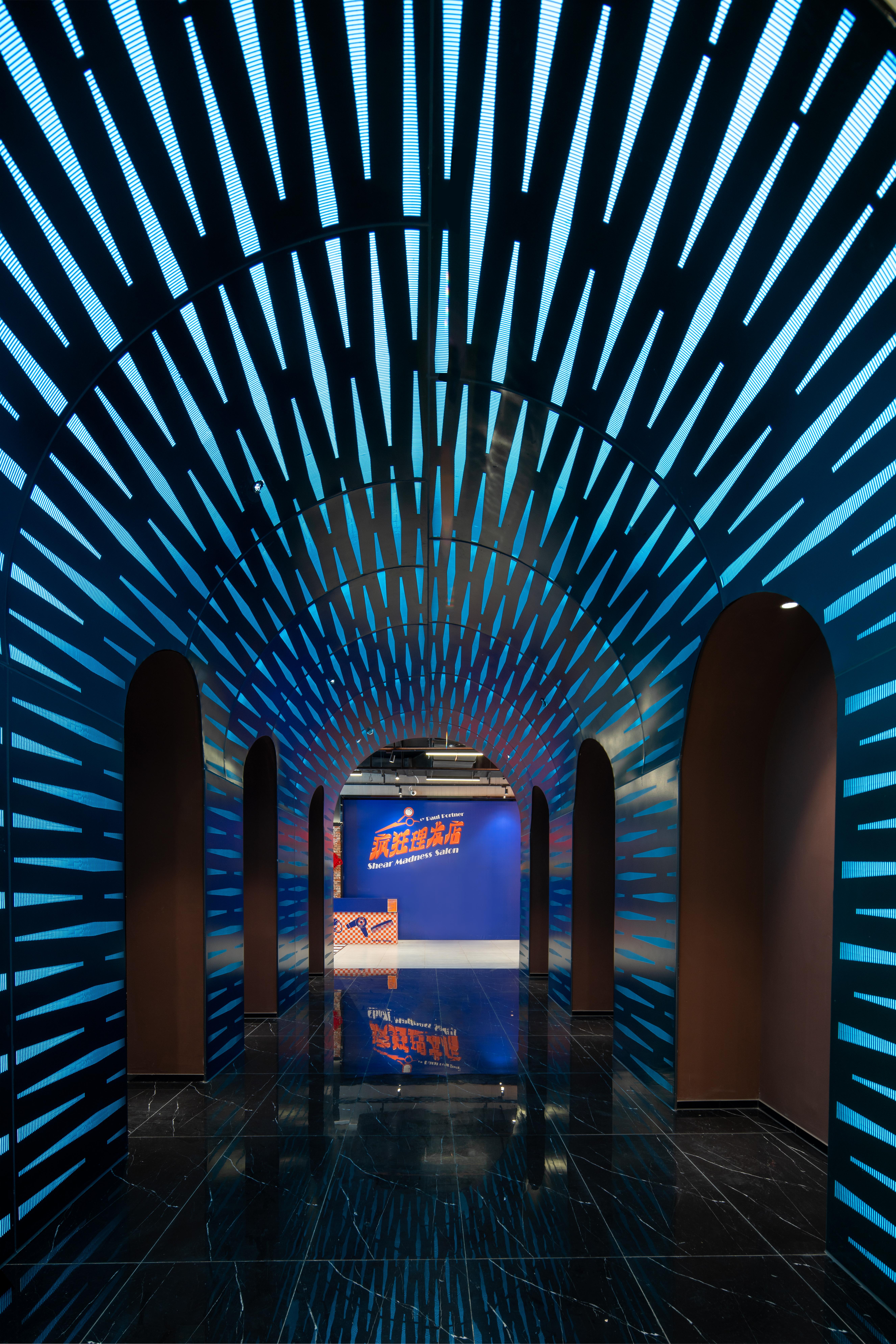 项目定位:本案为开心麻花在成都打造舞台剧目《疯狂理发店》的沉浸式剧场,《疯狂理发店》是开心麻花推出的沉浸式戏剧作品,该剧是美国经典剧目《疯狂理发店》的中国版。因此,本案设计在确保充分理解本剧剧本演出所需的各个功能设定、特定场景及装饰的前提现下,结合现场实际情况,合理打造出一个具有浓厚文化氛围的沉浸式演出剧场;