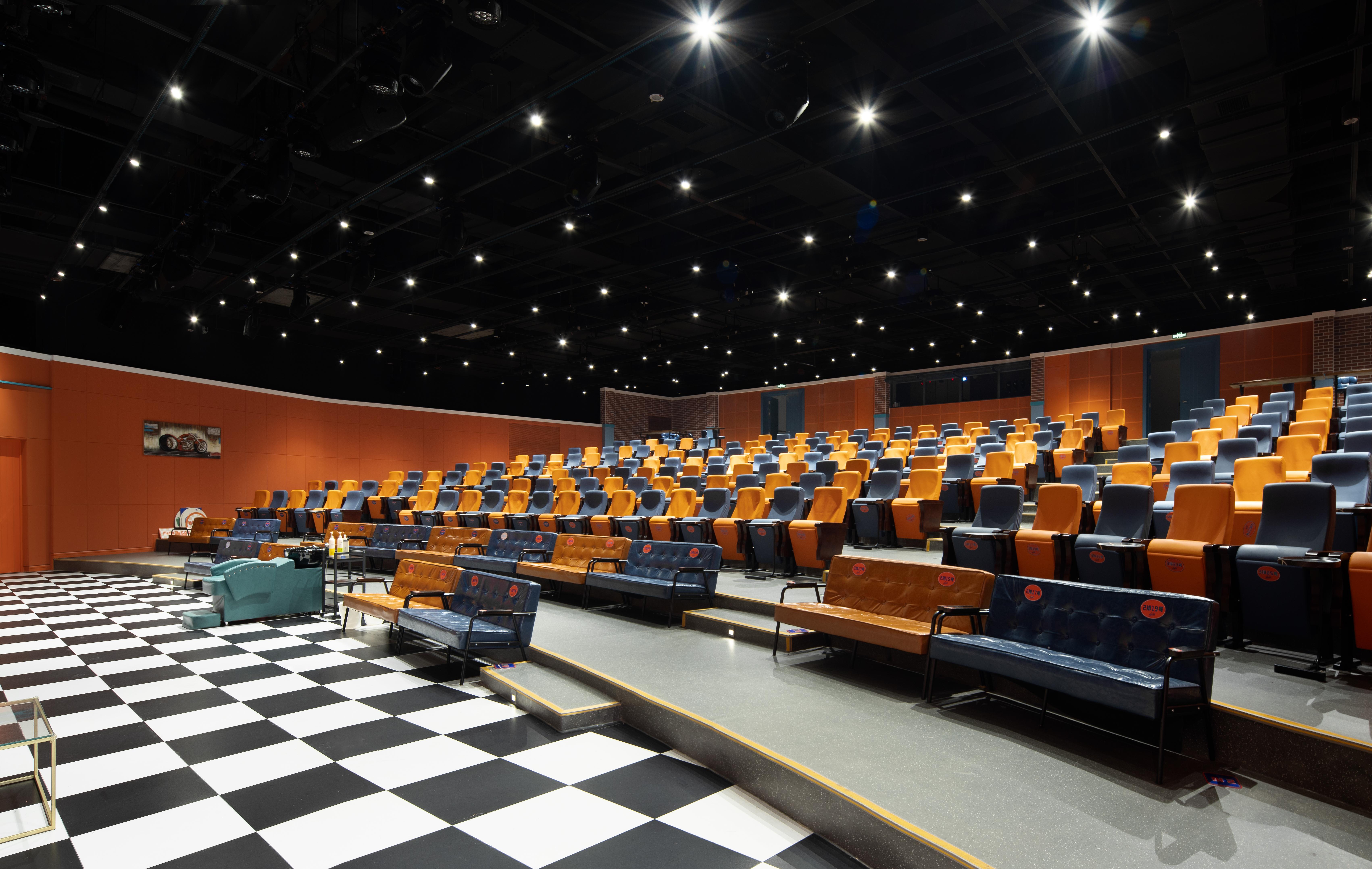 剧场内部为情景喜剧特定场景,配合特定的硬装及软装布置,整体灯光以专业舞台灯具为主,配合明装射灯为基础照明,满足演出及出入场两个不同功能时间段的使用需求;