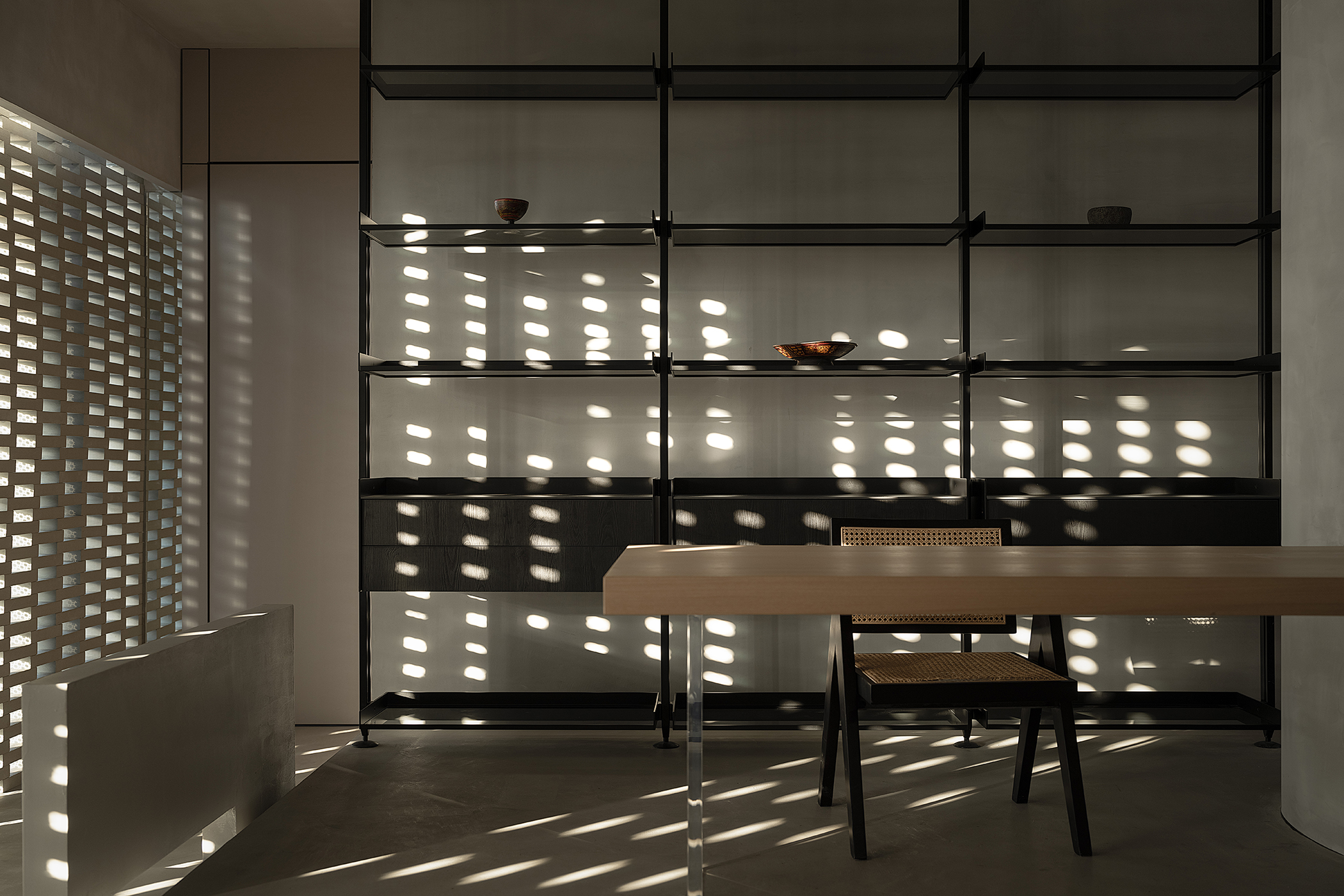 4.光:书房,仿古砖墙廊道,在使用中沉淀着时间的痕迹,逐渐演化出与建筑体共生的情感与记忆。客厅,引入大量自然光,光影随着时间而变化,与透光灯膜营造出一种太阳光自然照进空间的感觉,以自然的质感与光线给空间最真实的反馈,让人与自然、空间的关系更亲近,给人身临其境的感染力。 -