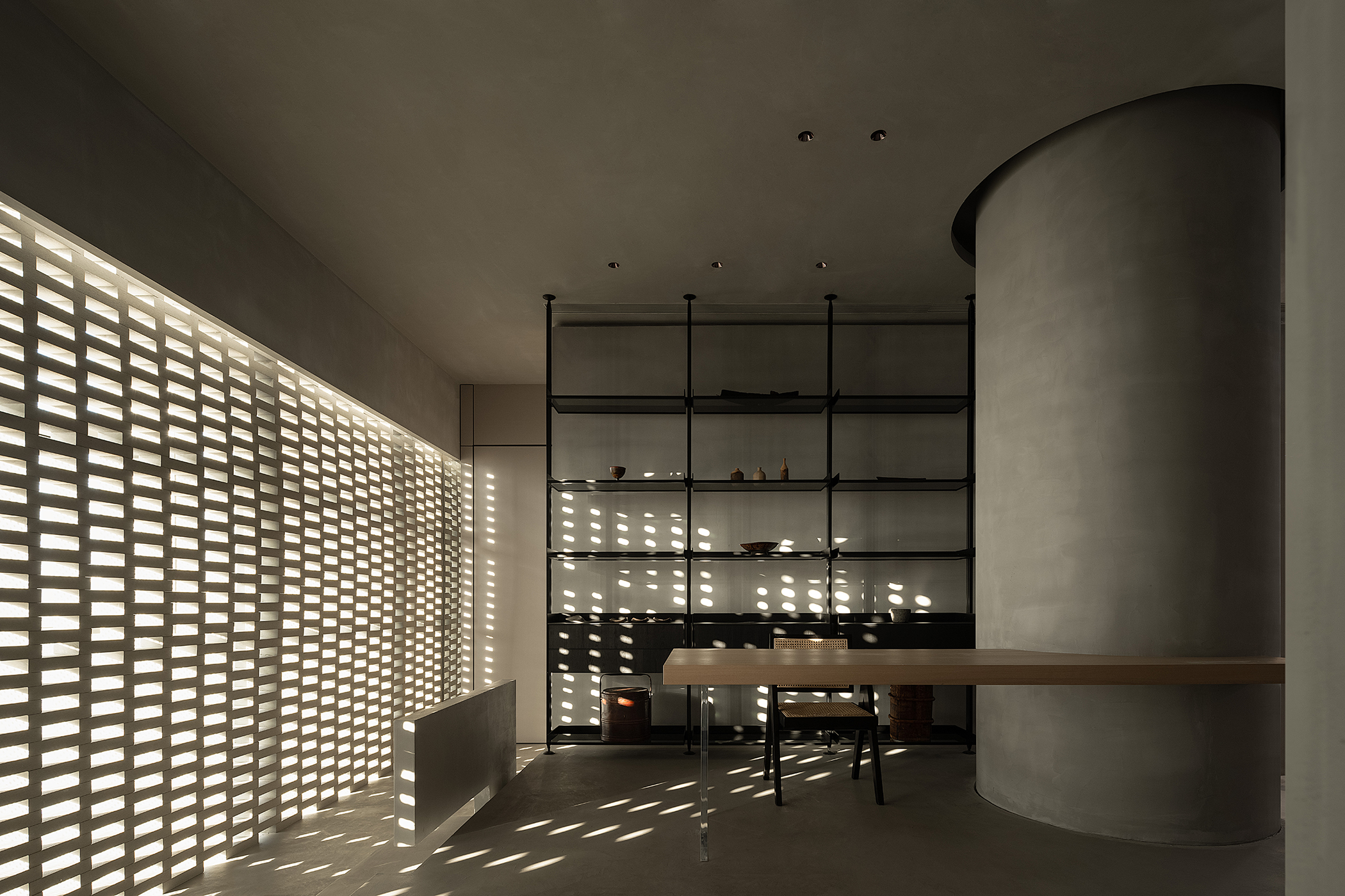 项目定位:该项目是一家独立全屋家居定制工作室,进驻到广州国际顶级家居卖场-罗浮宫艺术中心,与众多一线国际家居品牌同台竞争,如何展现品牌特性?如何让本土品牌,不淹没在国际品牌的展厅中呢?以追本溯源和建筑语言出发,通过对形体体量细化,多变的几何形体既作为空间分割又独立于空间中,借助建筑与自然特性打造「建筑客厅」——以光与结构的美,来传达品牌的个性,给常规刻板的商业陈设展厅带来新力量。