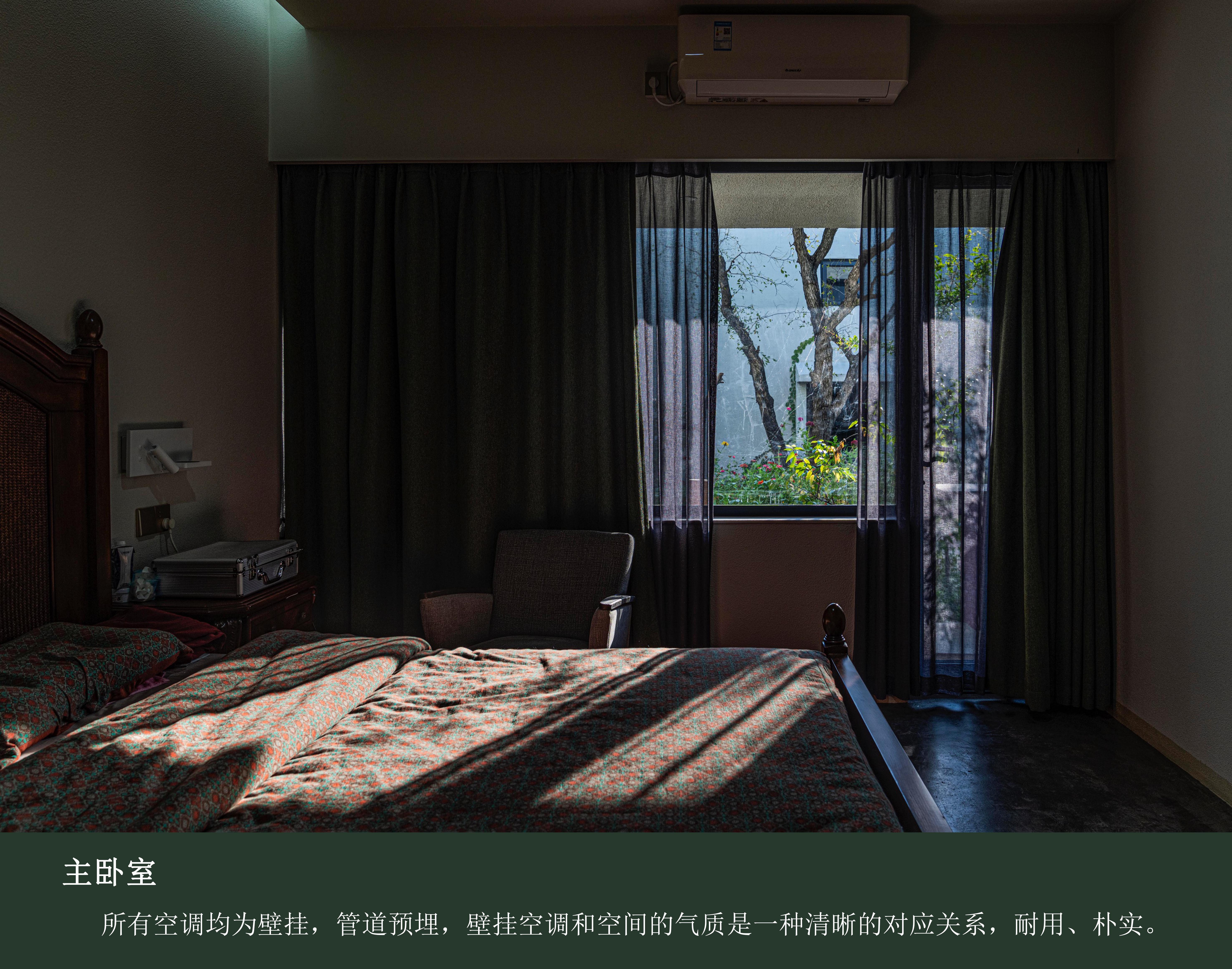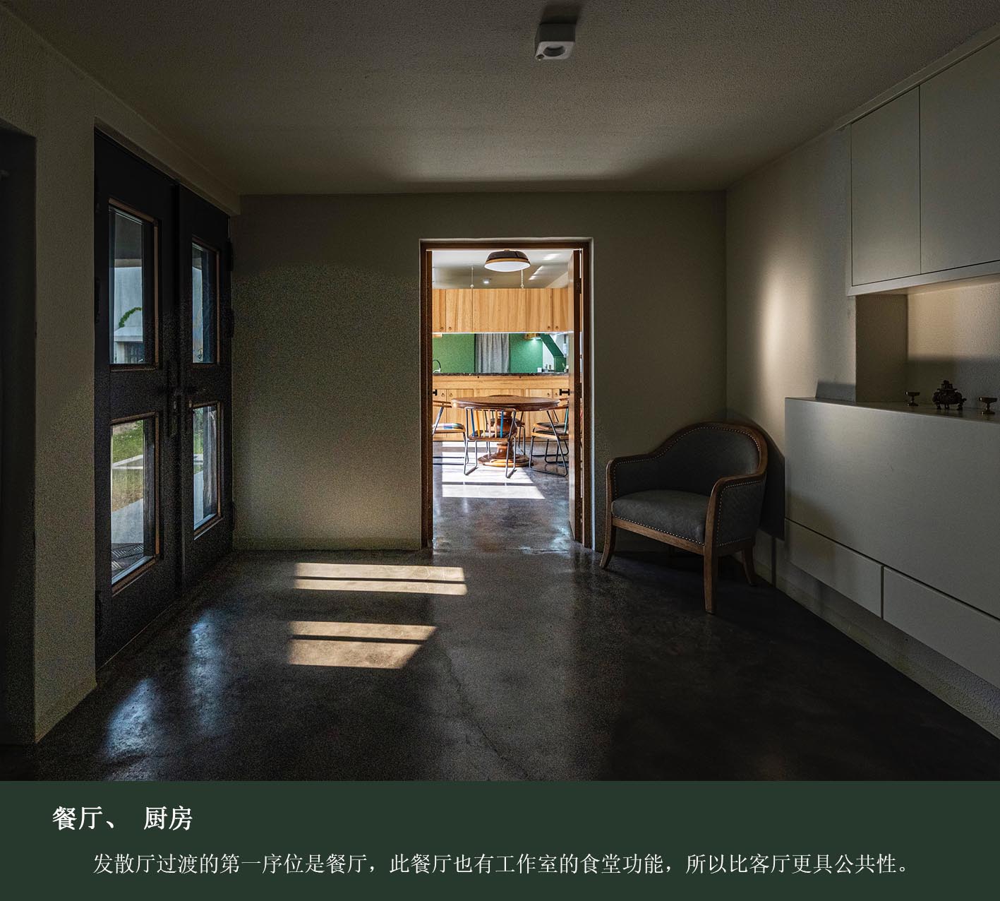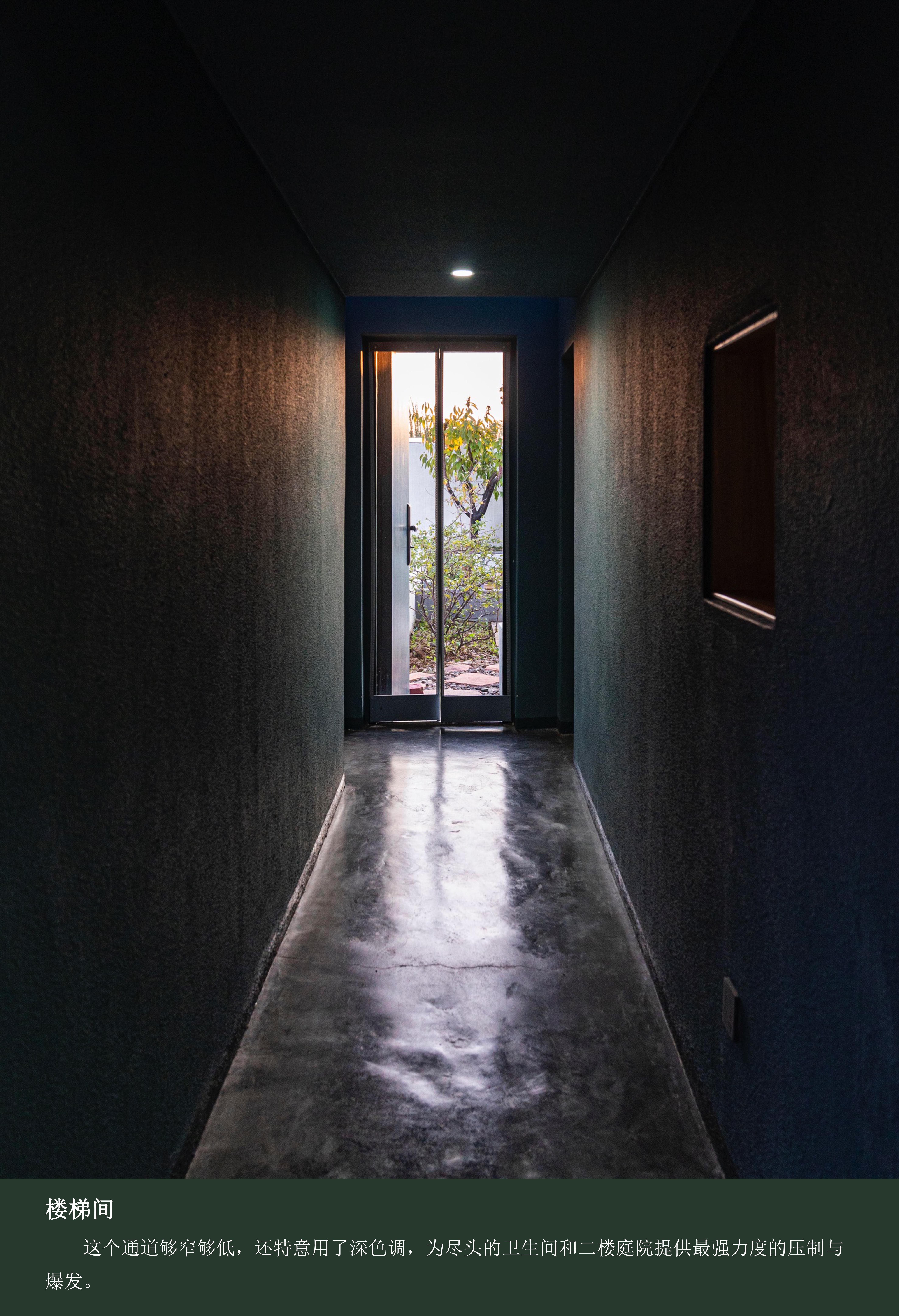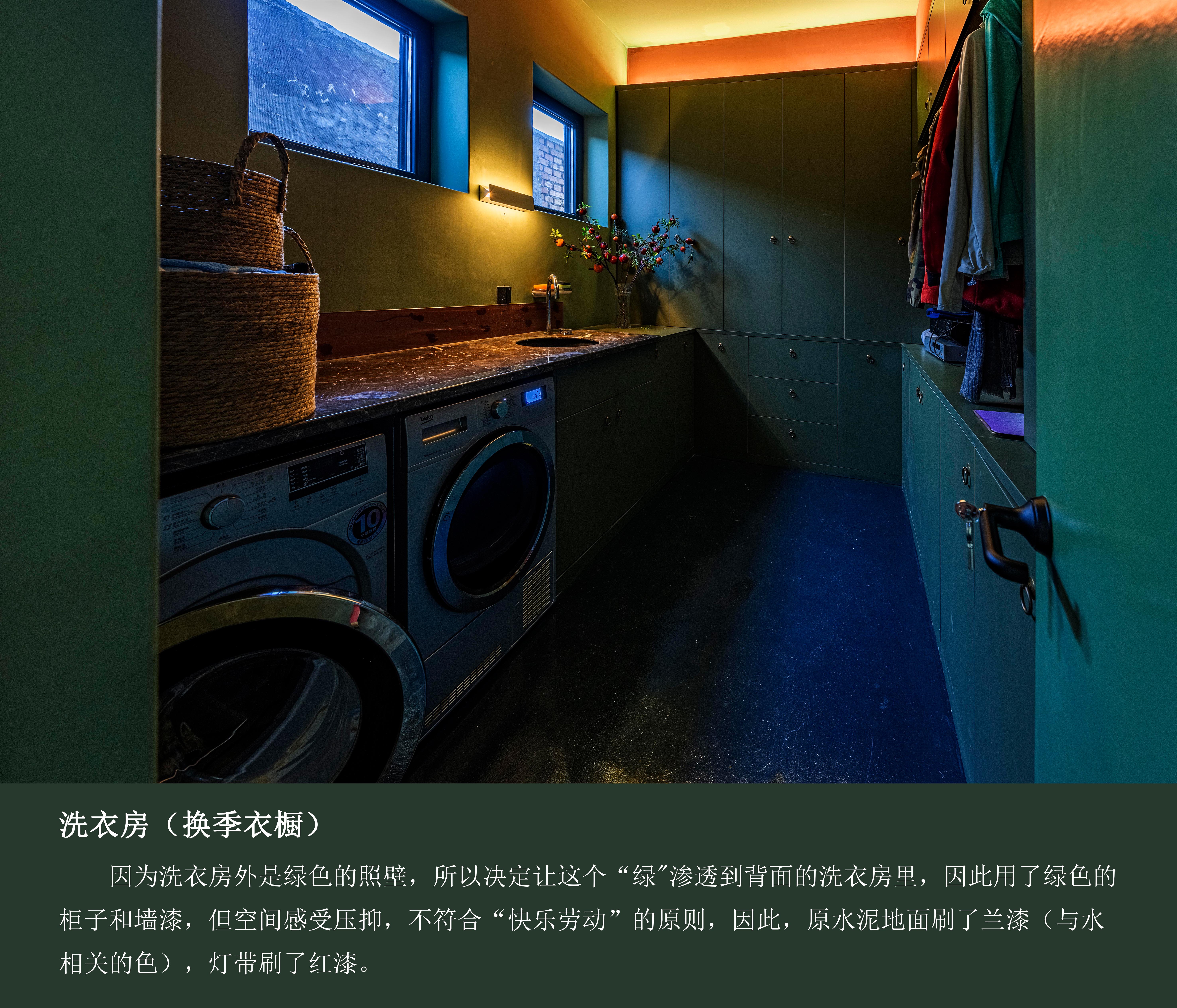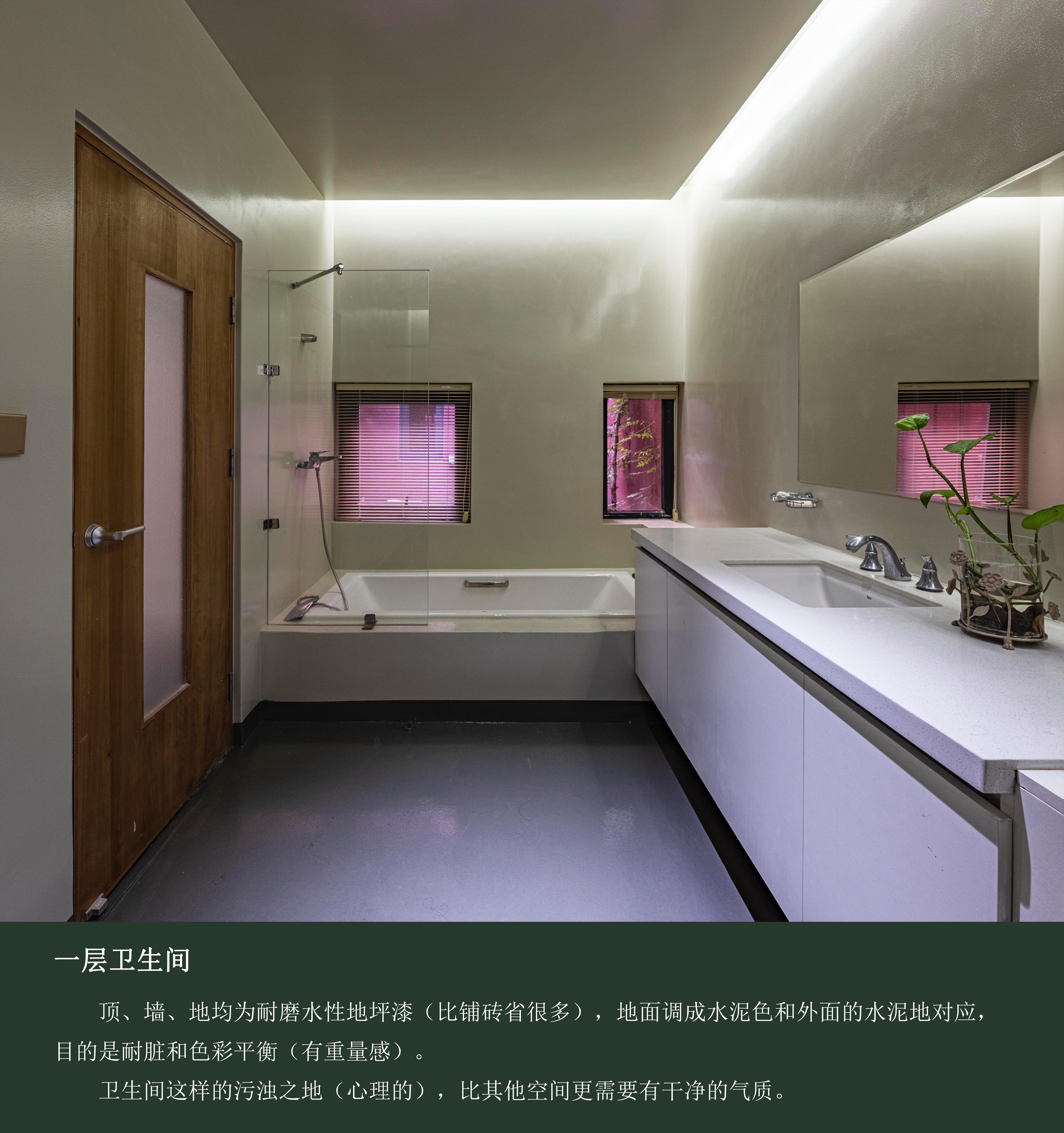4,关于色彩:有色涂料的运用,目的不是好看,意在功能性的空间界面划分,连同其他材料的色泽共同赋予空间色彩(非颜色属性)。也可以通过不同材质的颜色来定义等级秩序,比如木本色的门(门套)关联的是主空间,白色的门则是附属空间,肌理腻子没刷乳胶漆,原因是腻子有自然黄变的特质,这种自然的旧色是可贵的,他们和水泥以及木材的同步老化,是美妙的时间痕迹,这些都是有生命力的空间色彩。