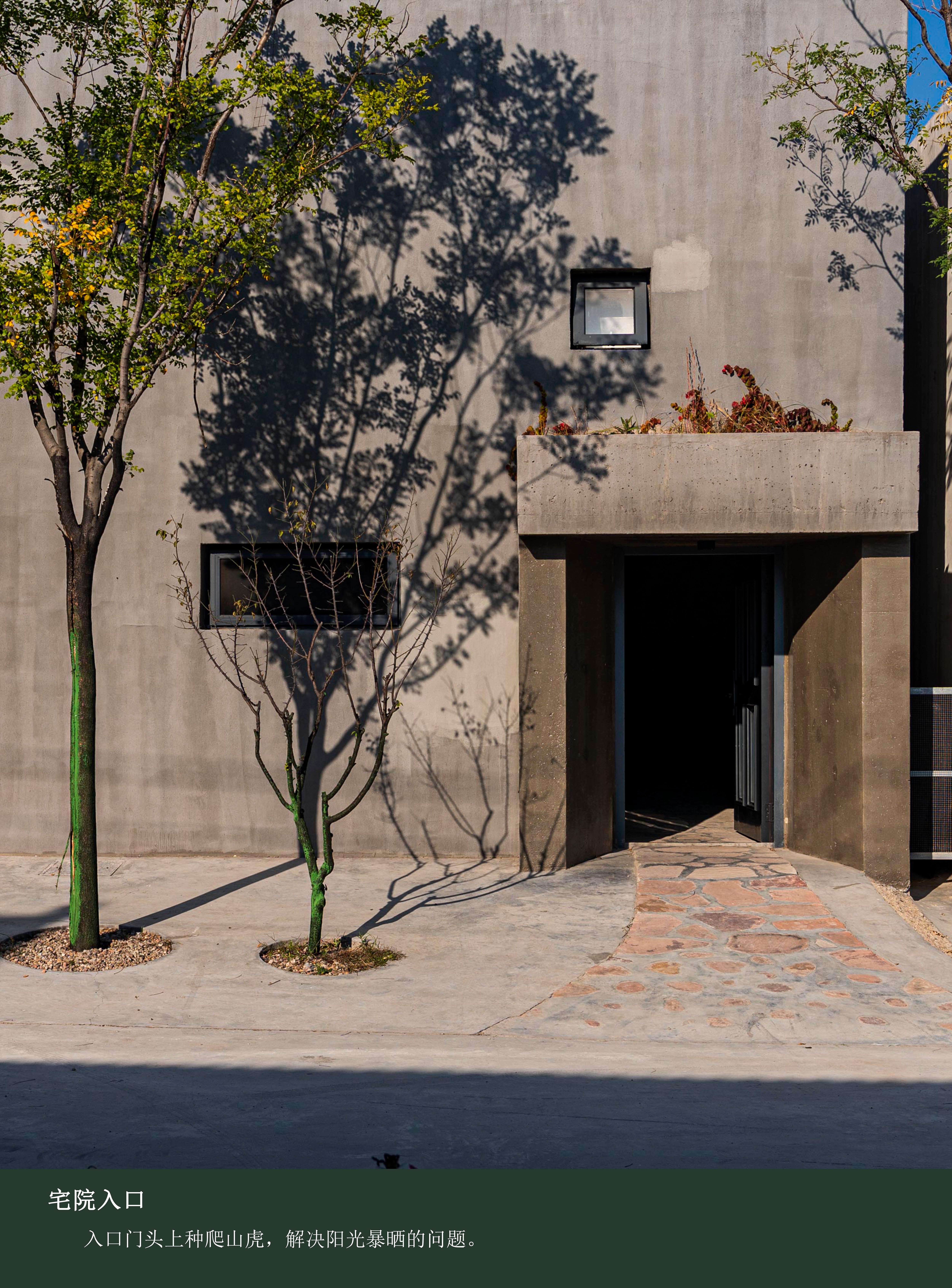 设计选材:1,在材料的使用中,尽可能用最为常见的“低档"材料去运作,比如:水泥地,粗加工的木材,拉毛滚筒滚涂腻子机理(面层不刷乳胶漆),用水性地坪漆替代瓷砖(全屋没用一片瓷砖),室内靠外的墙和顶做内保温,院落大面积留土不硬化等等。