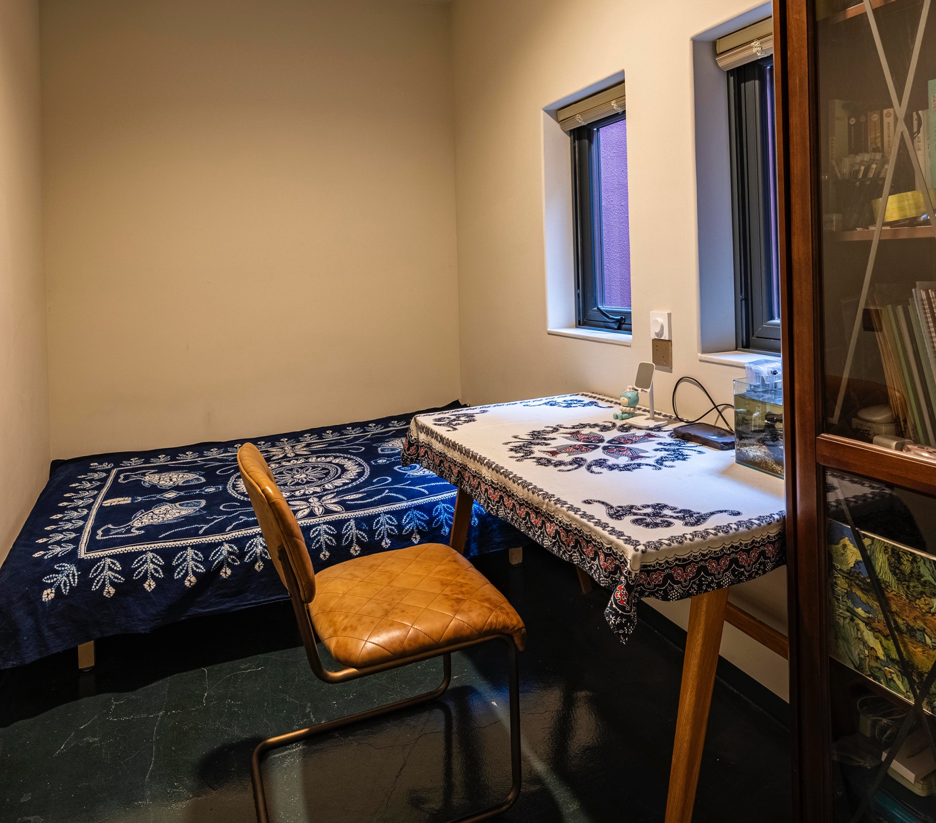 即,物与空间:不是人的欲望对象,不是装饰,不是风格,甚至不是审美。物,是沉默的物的语言,物和空间有着与人平等的合法性。但,又在审美之中,是物与空间,空间与人,在筑建中相互交织,相互平衡,共同互建的过程中生产出了的美。