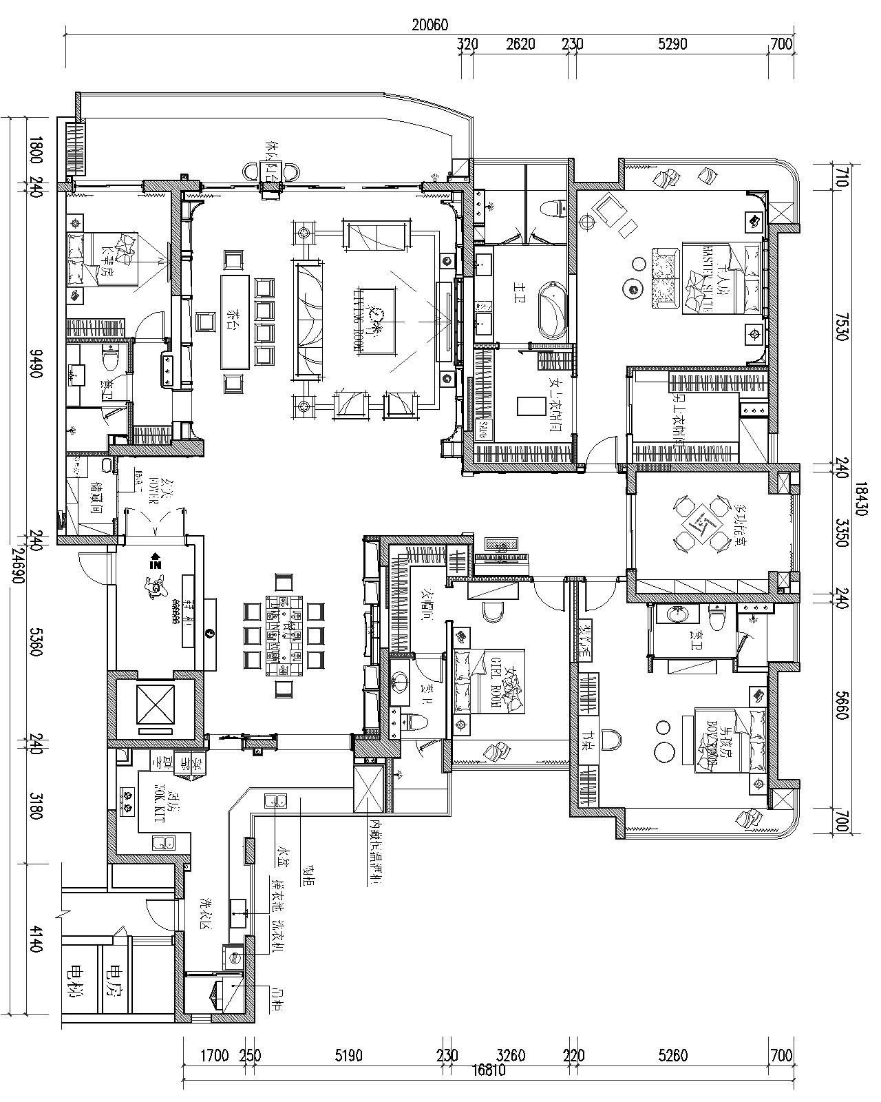 用户体验:每个空间都很有特点,很有细节,主卧室原本直角的墙角也塑成了弧形,如此一来,让睡眠也多了几分柔和、熨帖。老人房:那个朝南的阳光卧室,是老人房,方便老人有更多的活动空间,多晒太阳。柜子的设计细心地给老人留出了放东西的格子。