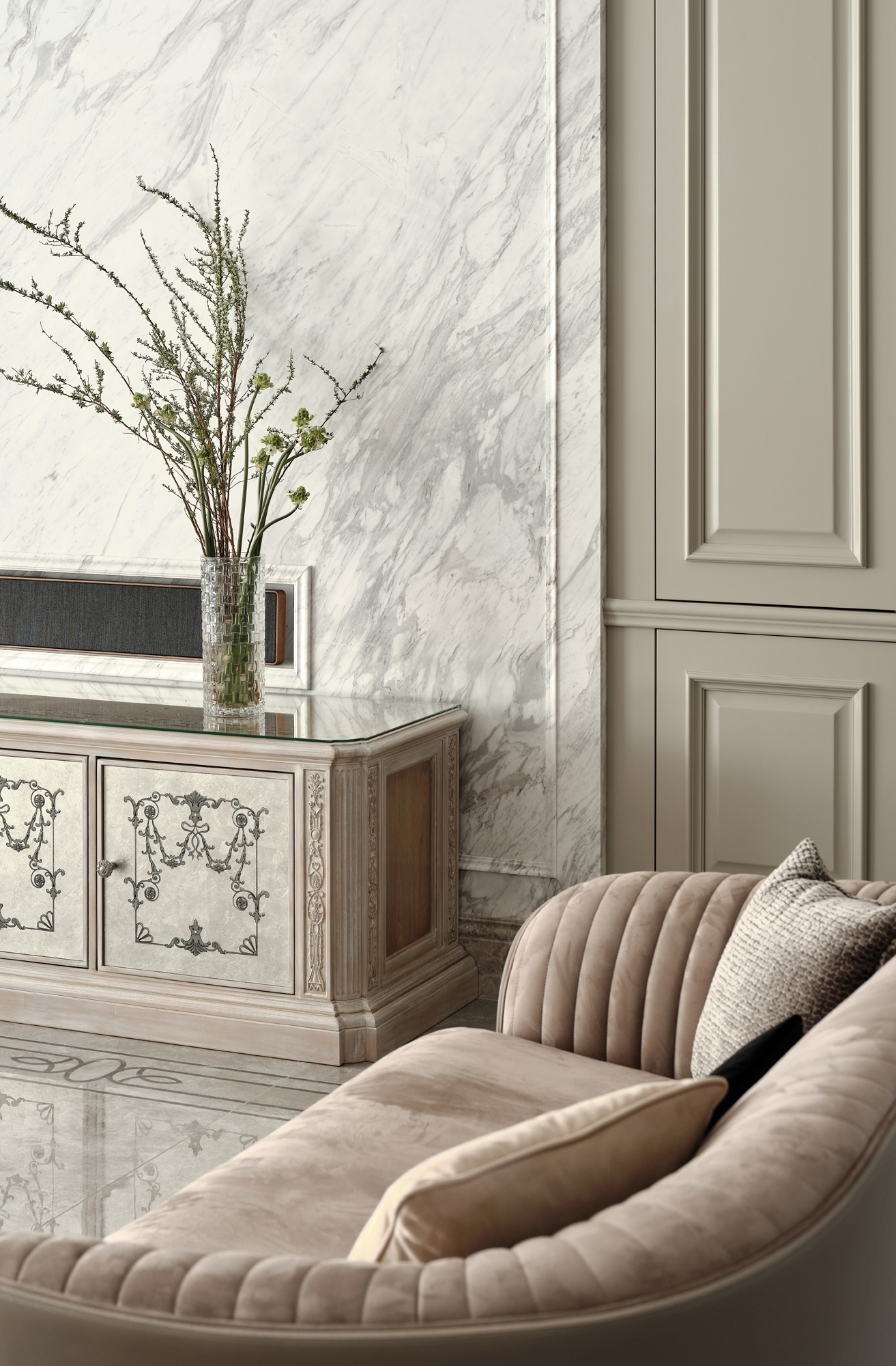 设计选材:应用颜色及艺术漆代替护墙板
