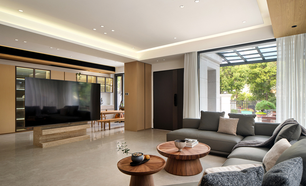 空间布局:“大院人家,马车停顿,主人归家,仆人已早早等候在门口迎接,走进大门,放慢脚步 带着经典和优雅的木质色调,感受惬意生活,满满的仪式感。”